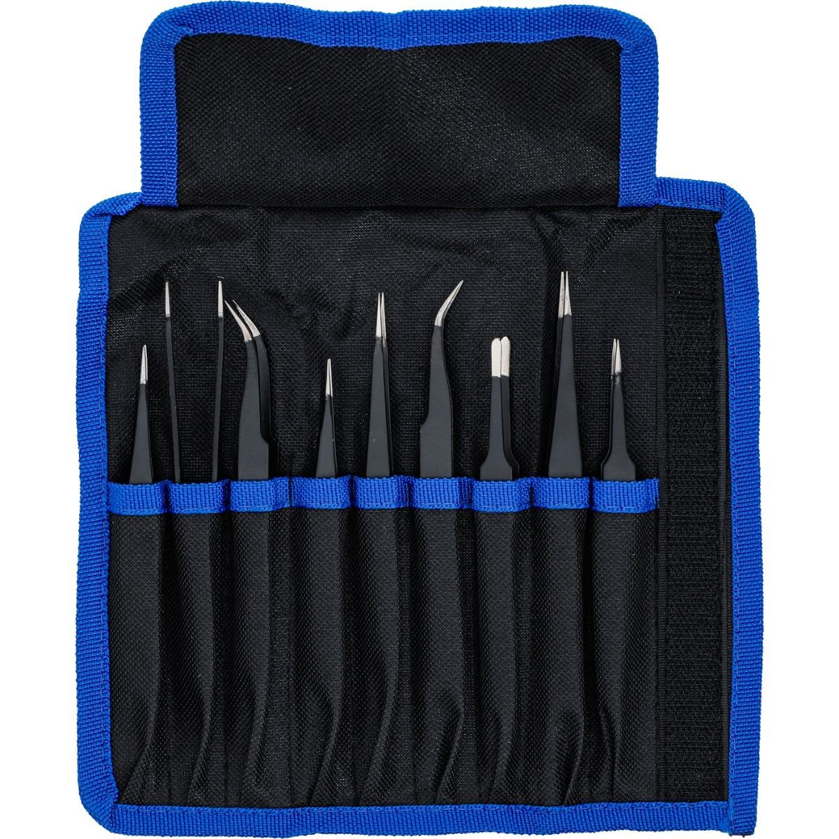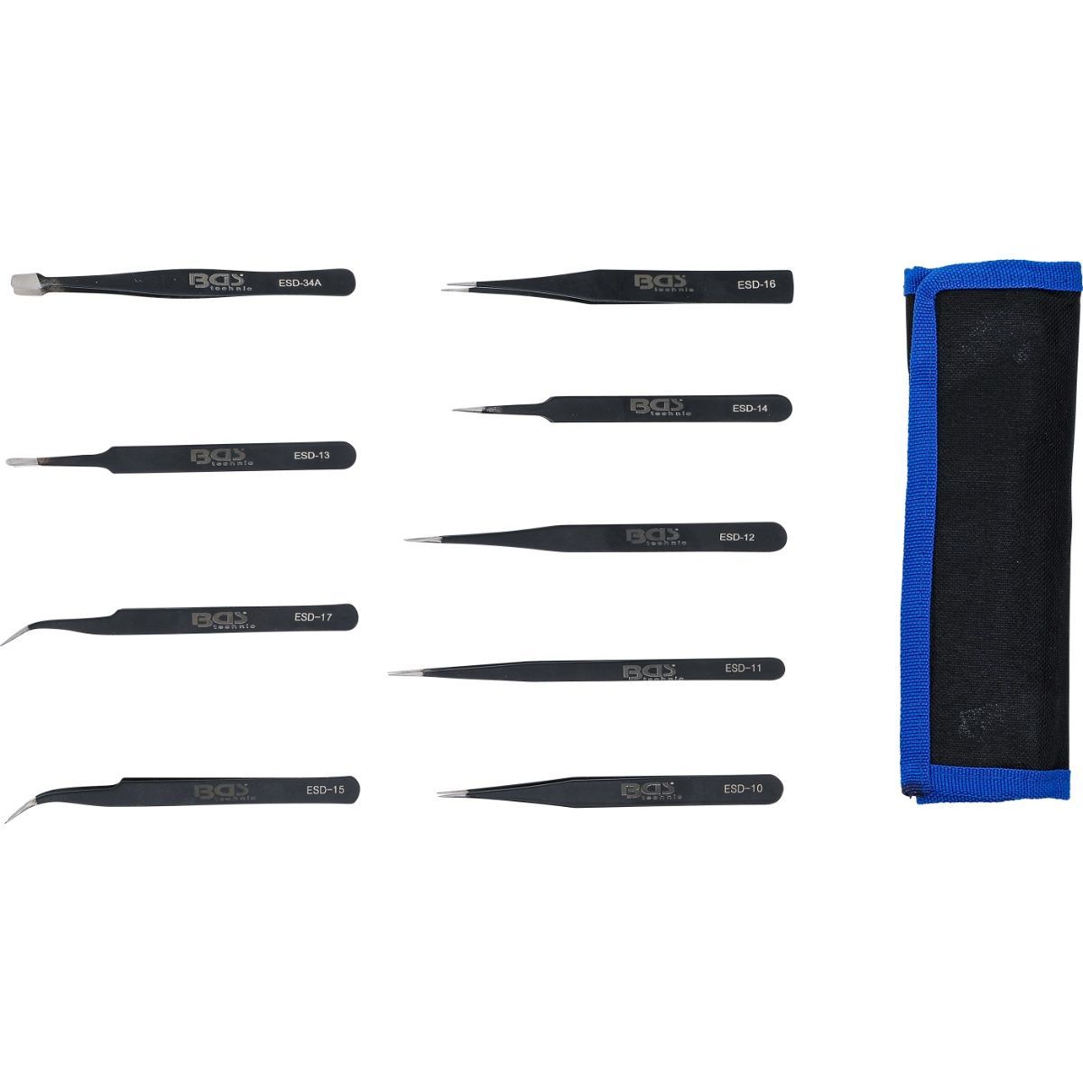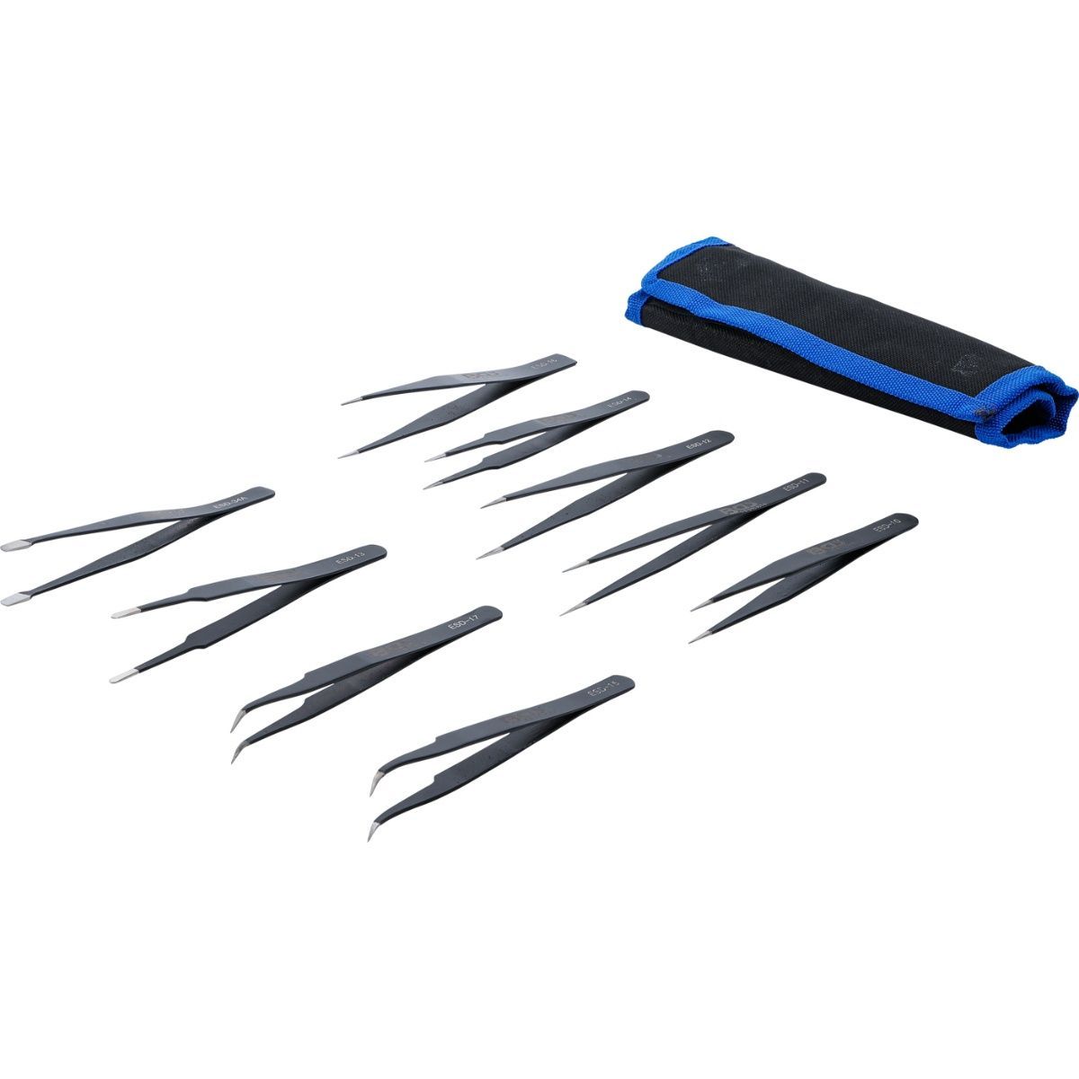 BGS BGS Edelstahl-Pinzetten-Satz mit verschiedenen Spitzen, ESD-Beschichtung, 9-tlg