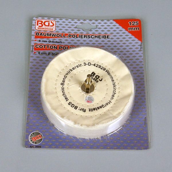 BGS BGS Polierscheibe mit Spanndorn 6 mm, Baumwolle Politur Aufsatz Ø 125x22 mm