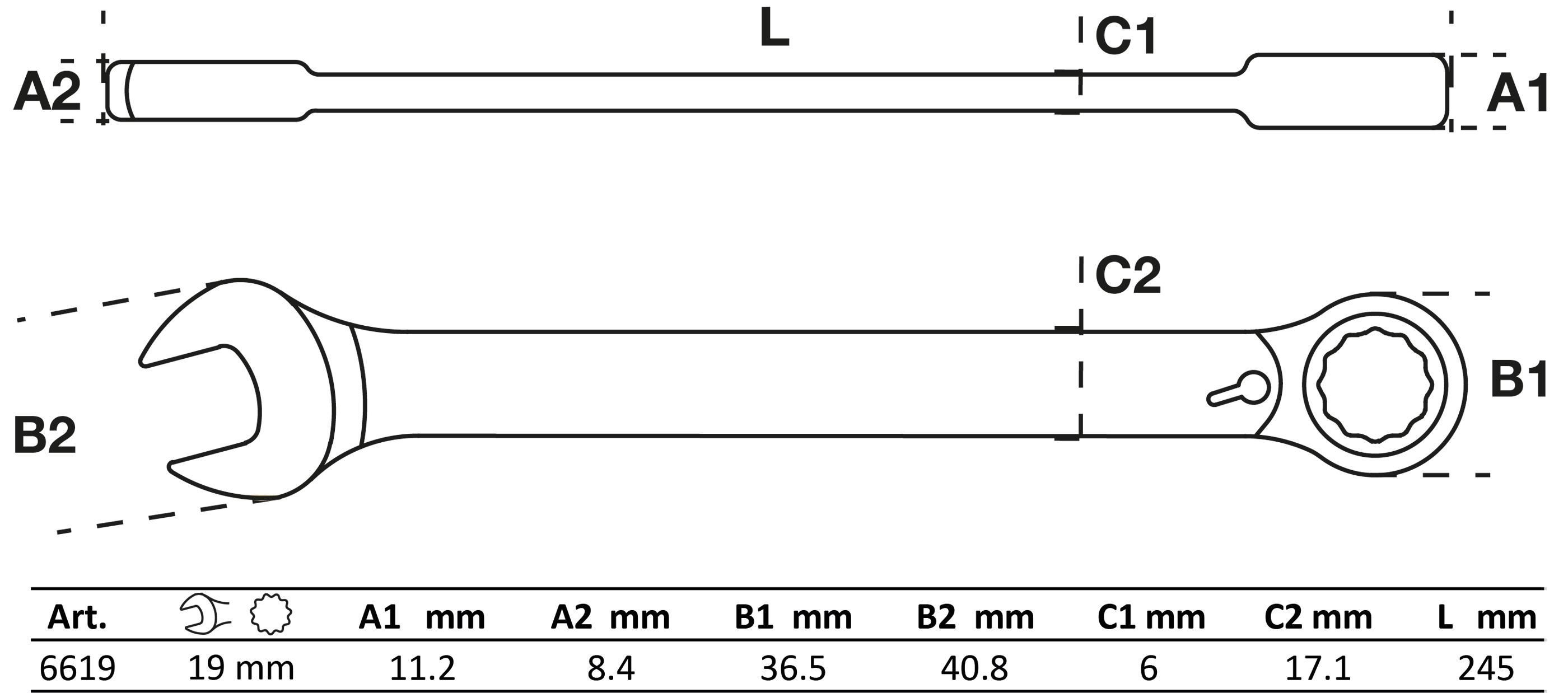 BGS BGS Ratschenring-Maulschlüssel | umschaltbar | SW 19 mm