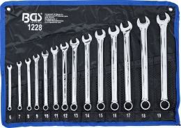 BGS technic - Maul-Ringschlüssel-Satz extra lang SW 6 - 19 mm 14-tlg. Hersteller: BGS TECHNIC - kalt geschmiedet - Ringende 15° abgewinkelt - Abtriebsprofil Ringseite: Zwölfkant - extra lang - in Tetron-Rolltasche Lieferumfang: - Maul-Ringschlüssel, Länge 125 mm, SW 6 mm - Maul-Ringschlüssel, Länge