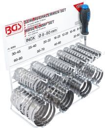 BGS technic - Schlauchklemmen-Sortiment | rostfrei | auf Tafel | 111-tlg