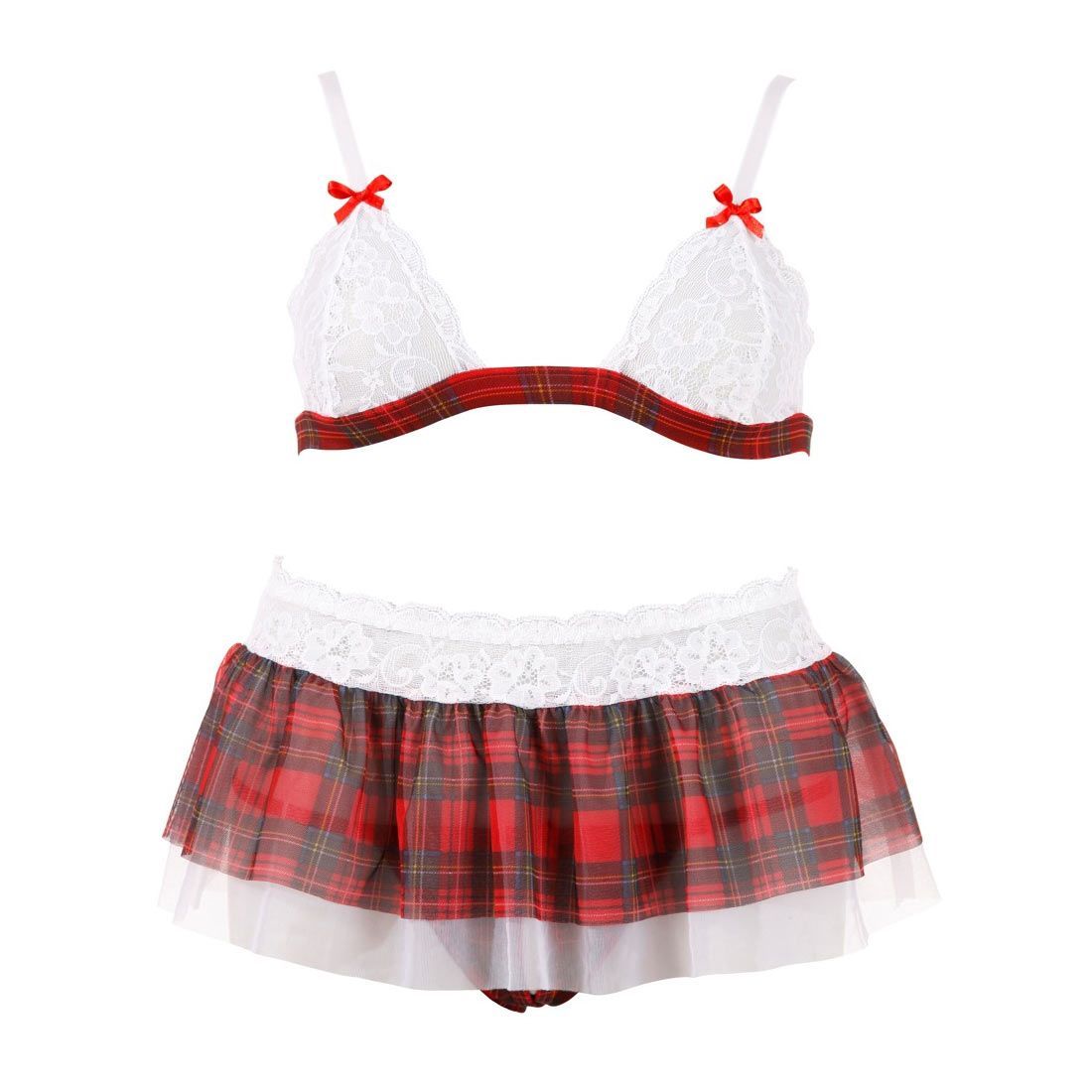 BH Set mit Rock Schritt offen Karo dessous Reizwäsche GoGo sexy S M L "Manja"