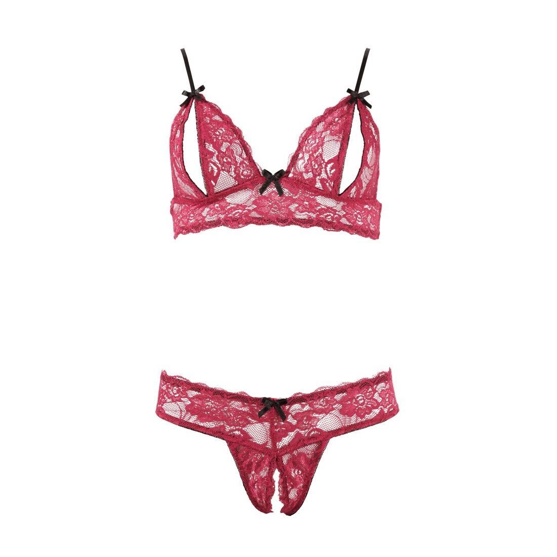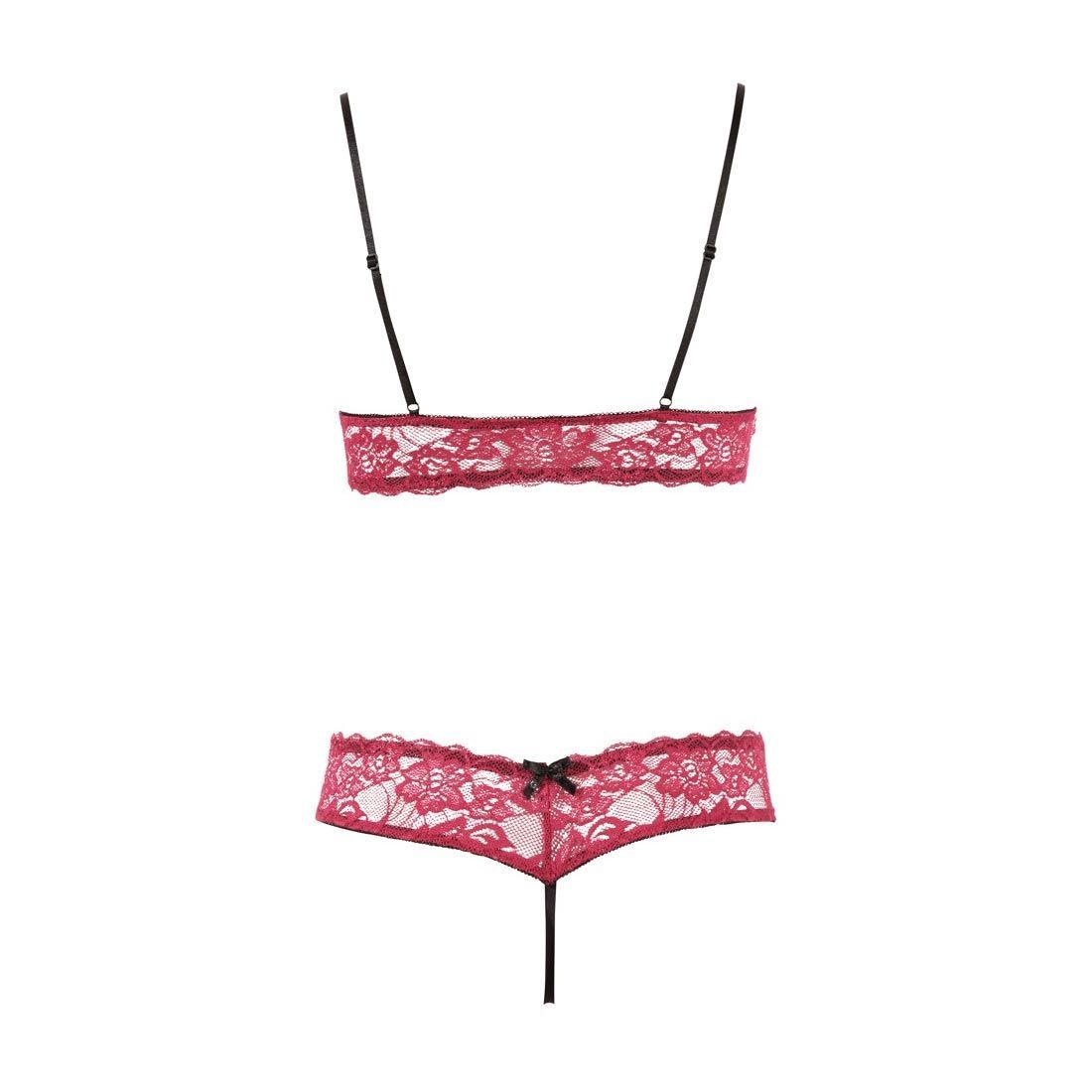 BH Set Spitze Rot Schritt offen Reizwäsche Dessous Sexy Tanga 75 80 85 B "Thessa