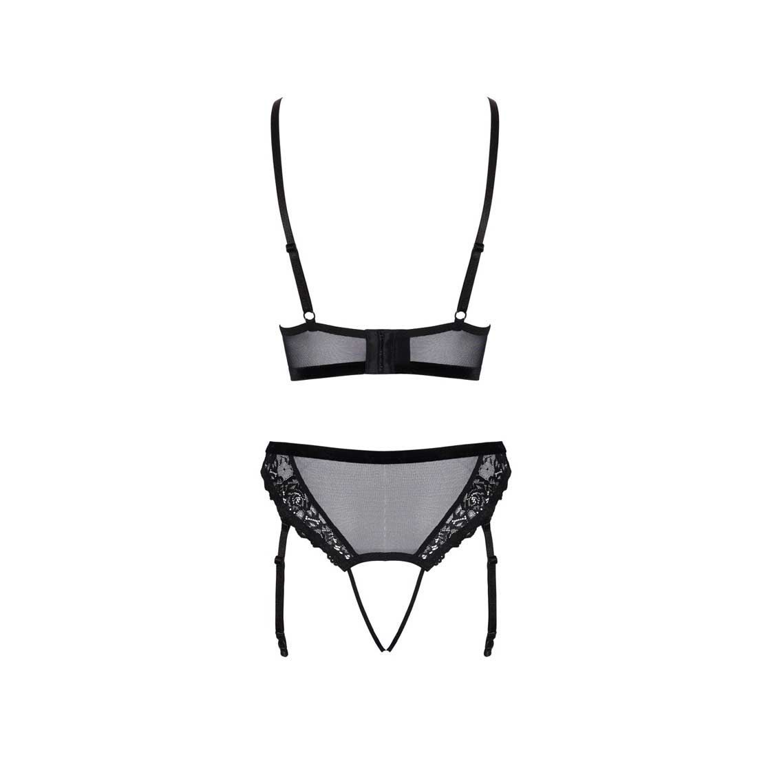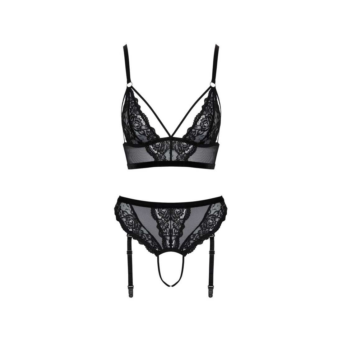 BH-Set Spitze Straps-Slip Schritt offen Sexy Dessous schwarz Reizwäsche "Athina"
