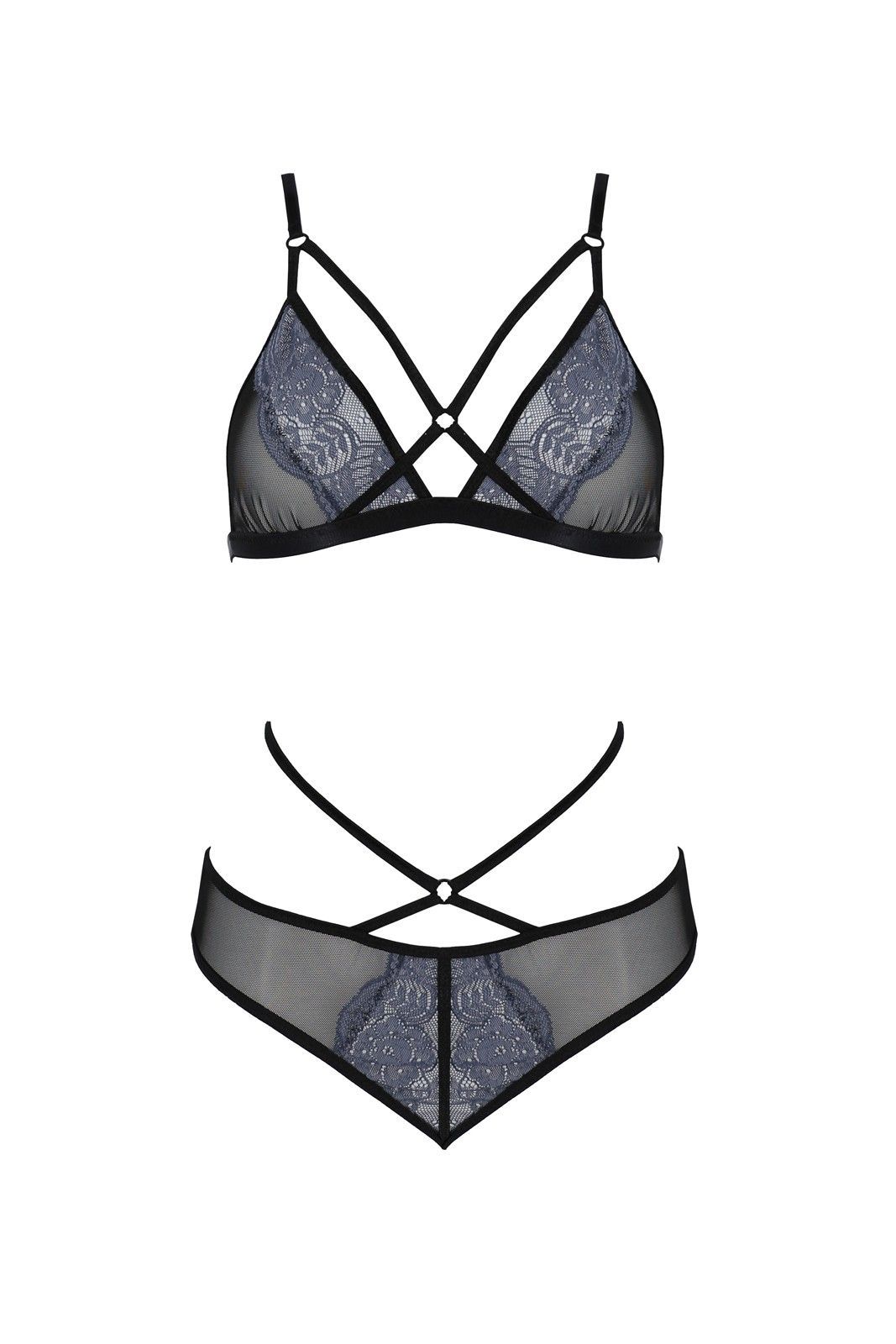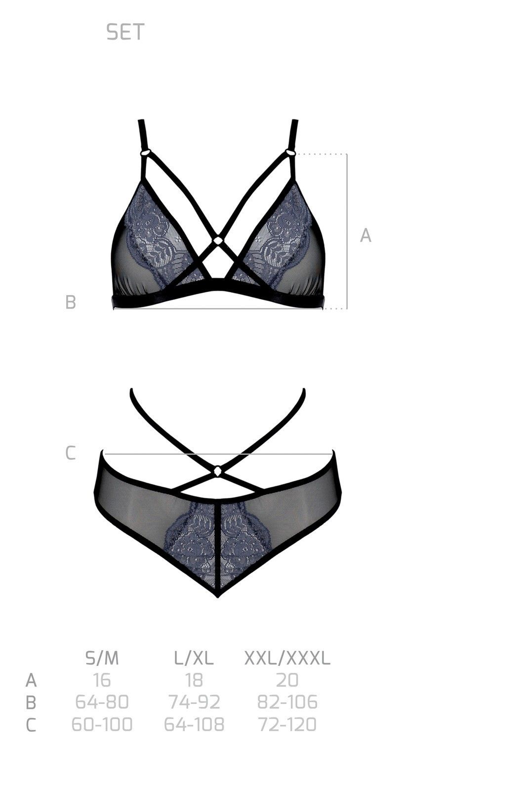 BH & String Set Schwarz/ Blau Erotik Dessous aus Tüll & Spitze S/ M, L/ XL, 2XL/3XL
