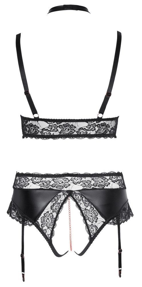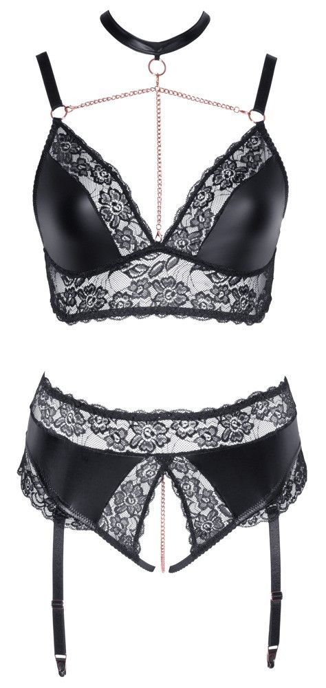 Cottelli Collection BH und Straps-Slip aus Wetlook und Spitze Gr. XL, 2XL, 3XL, 4XL