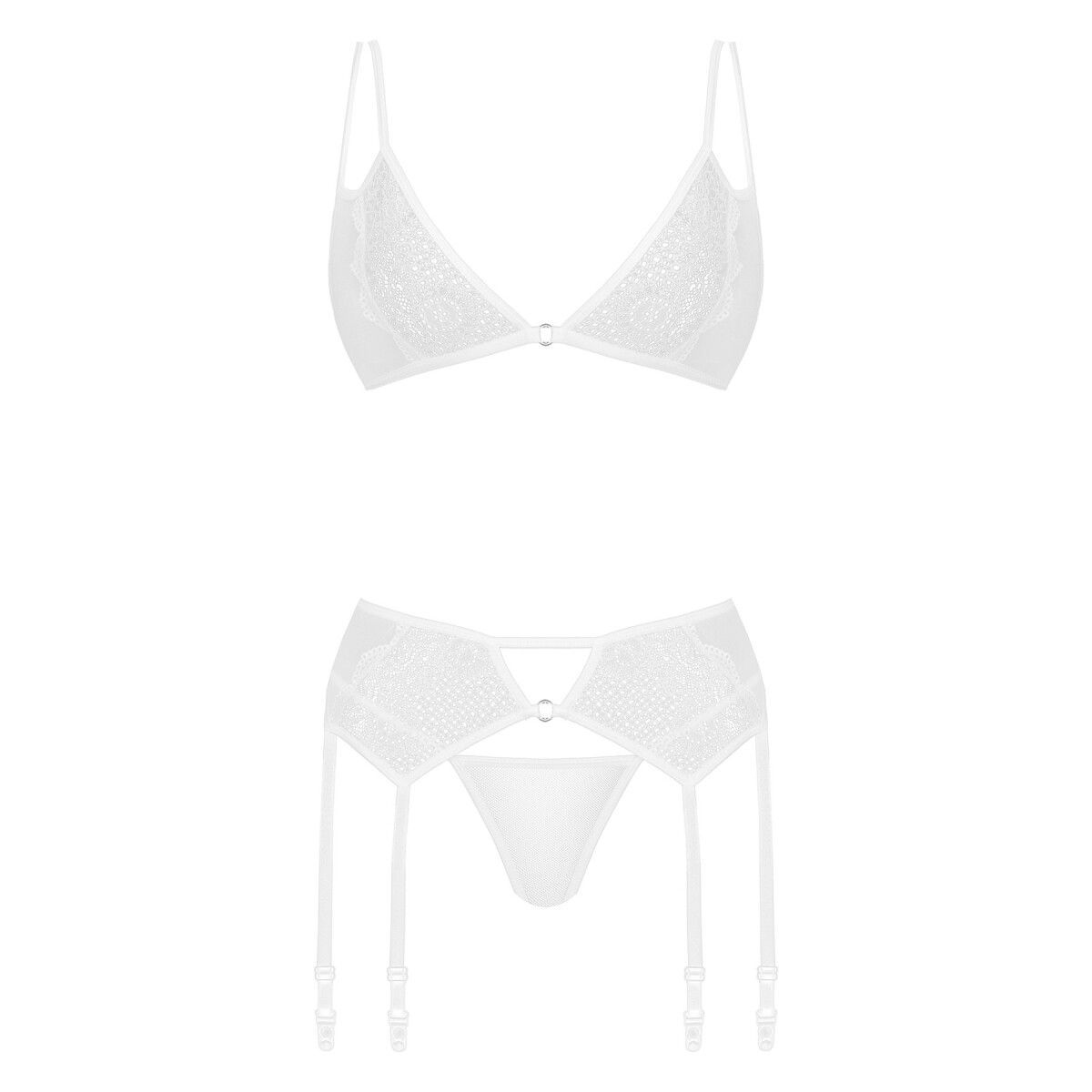 BH und String plus Strumpfgürtel mit Strapshalter 3-teiliges Set Ingina weiß