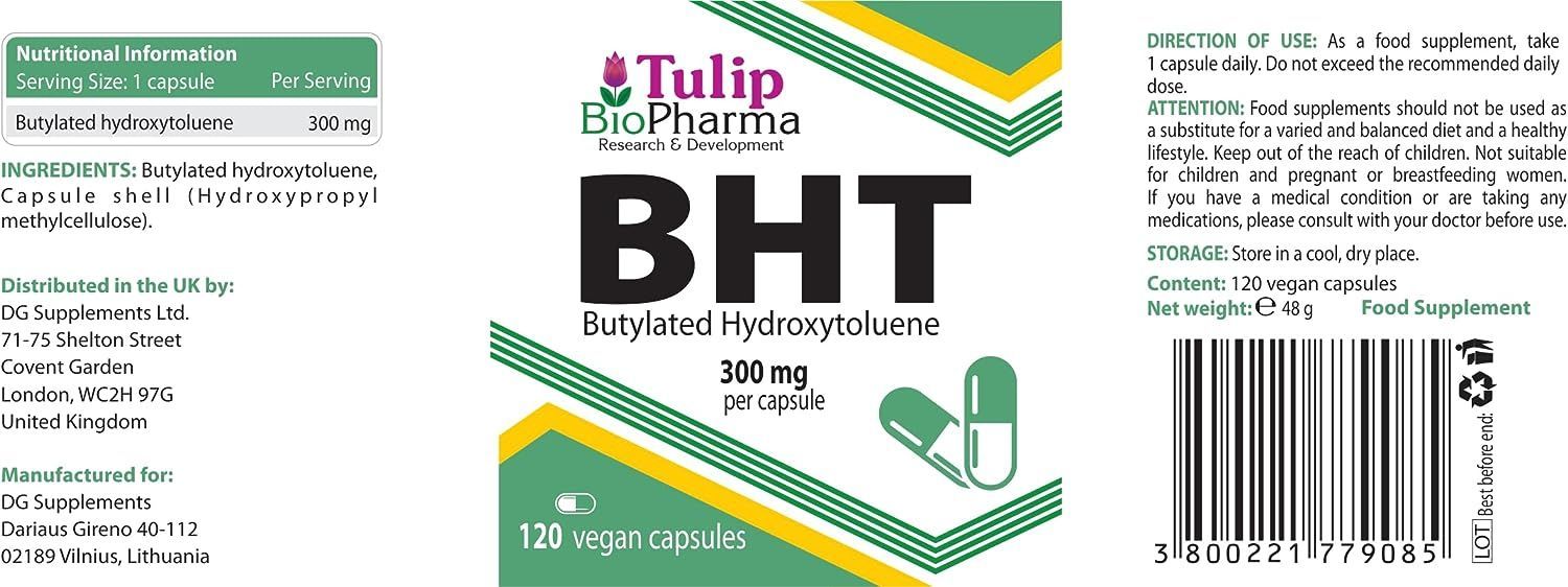 BHT Butylated HydroxyToluene 300 mg 120 Kapseln