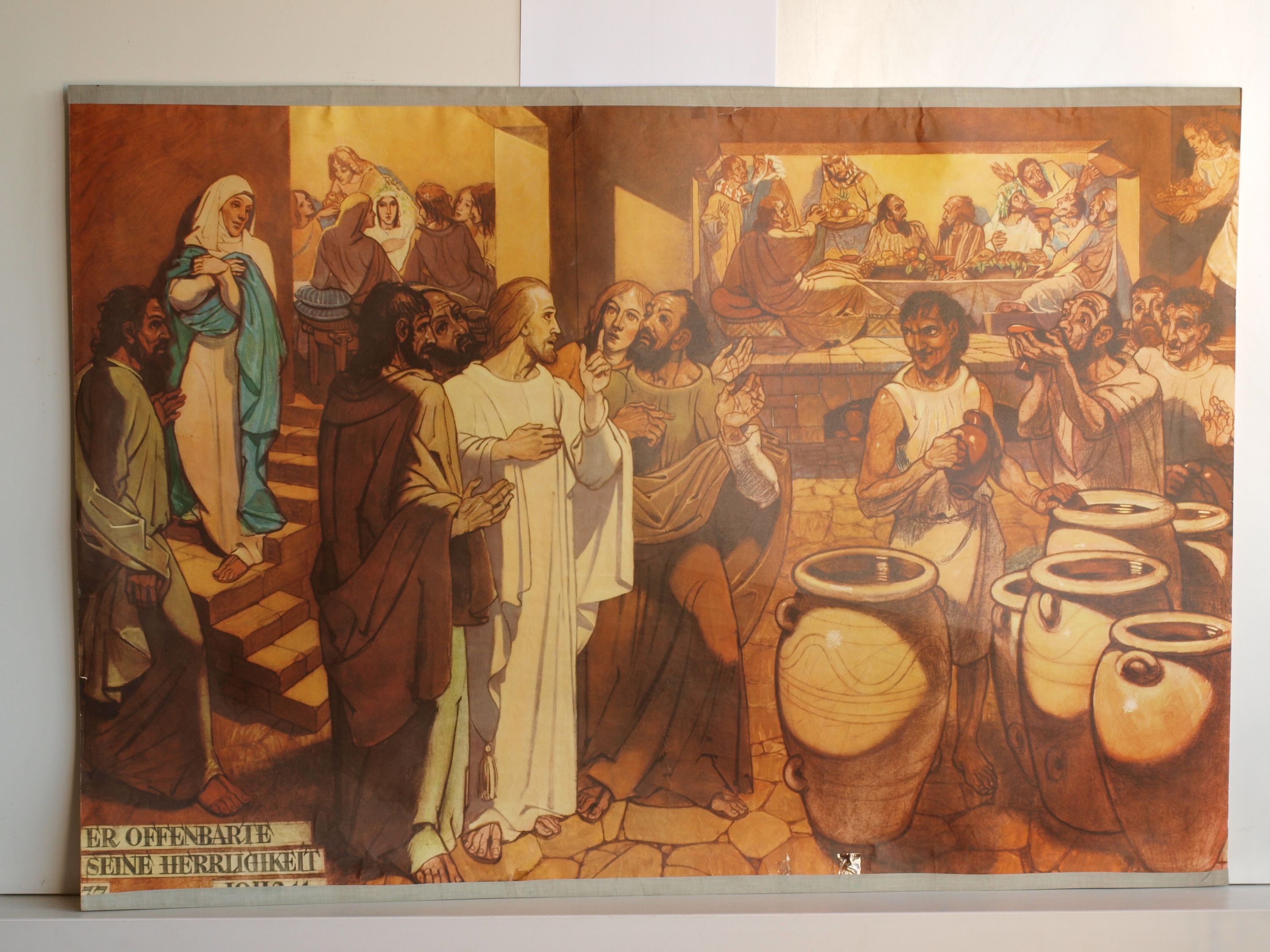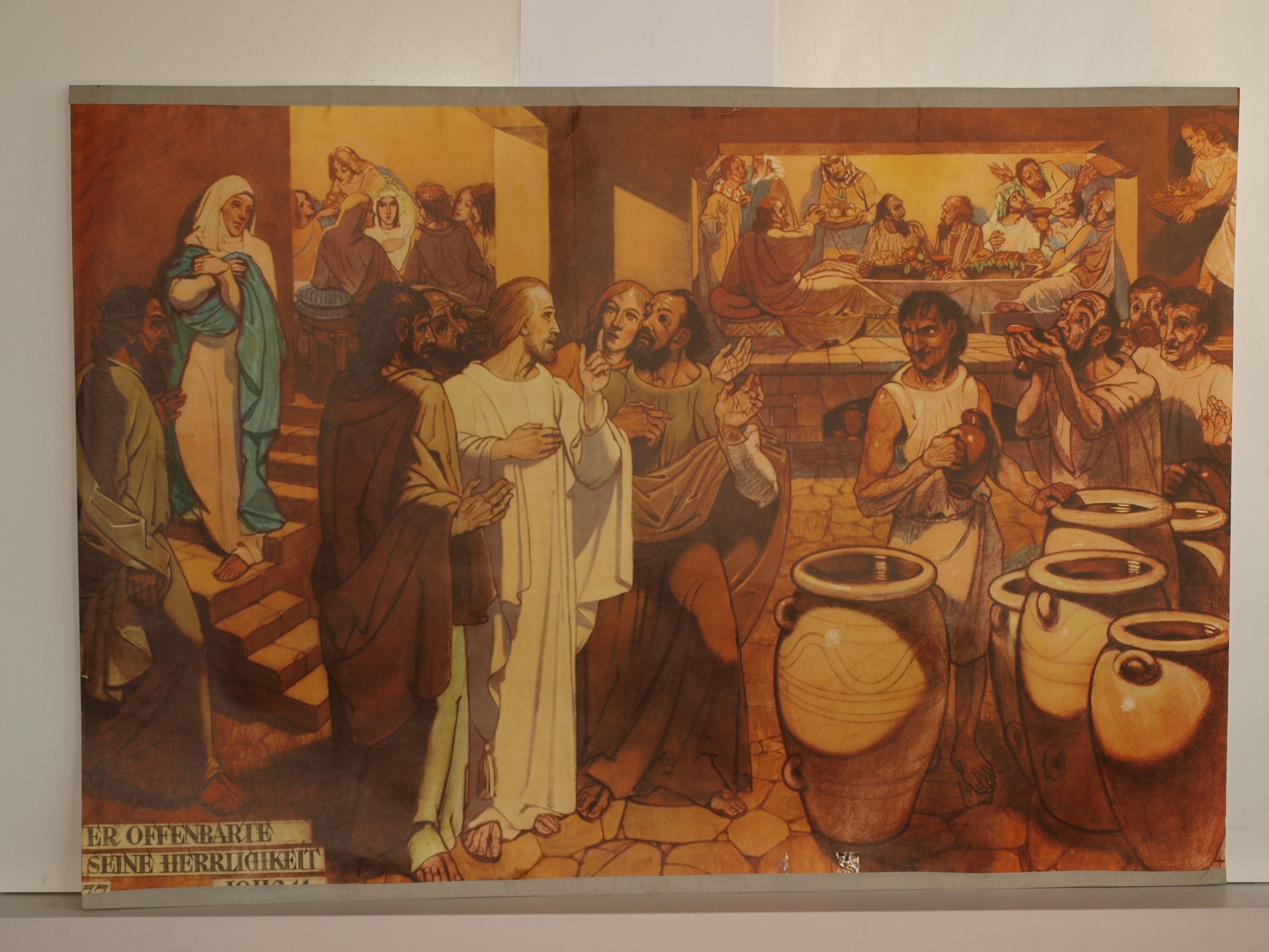 Bibelgeschichte HV37 Zeit zu Kana Herrlichkeit 1960 Schulwandbild Wandbild 98x68cm NrL979 HV37 (PA650) Herder Verlag, 1960, 98x68cm plano Genesis 1.Buch Mose, Lukas, Matthäus, Exodus, Kapitel, Vers usw. Bibelgeschichte in 80 Bildern, Herder-Verlag, Freiburg im Breisgau, ca. 1950er Jahre, 68x98cm, od