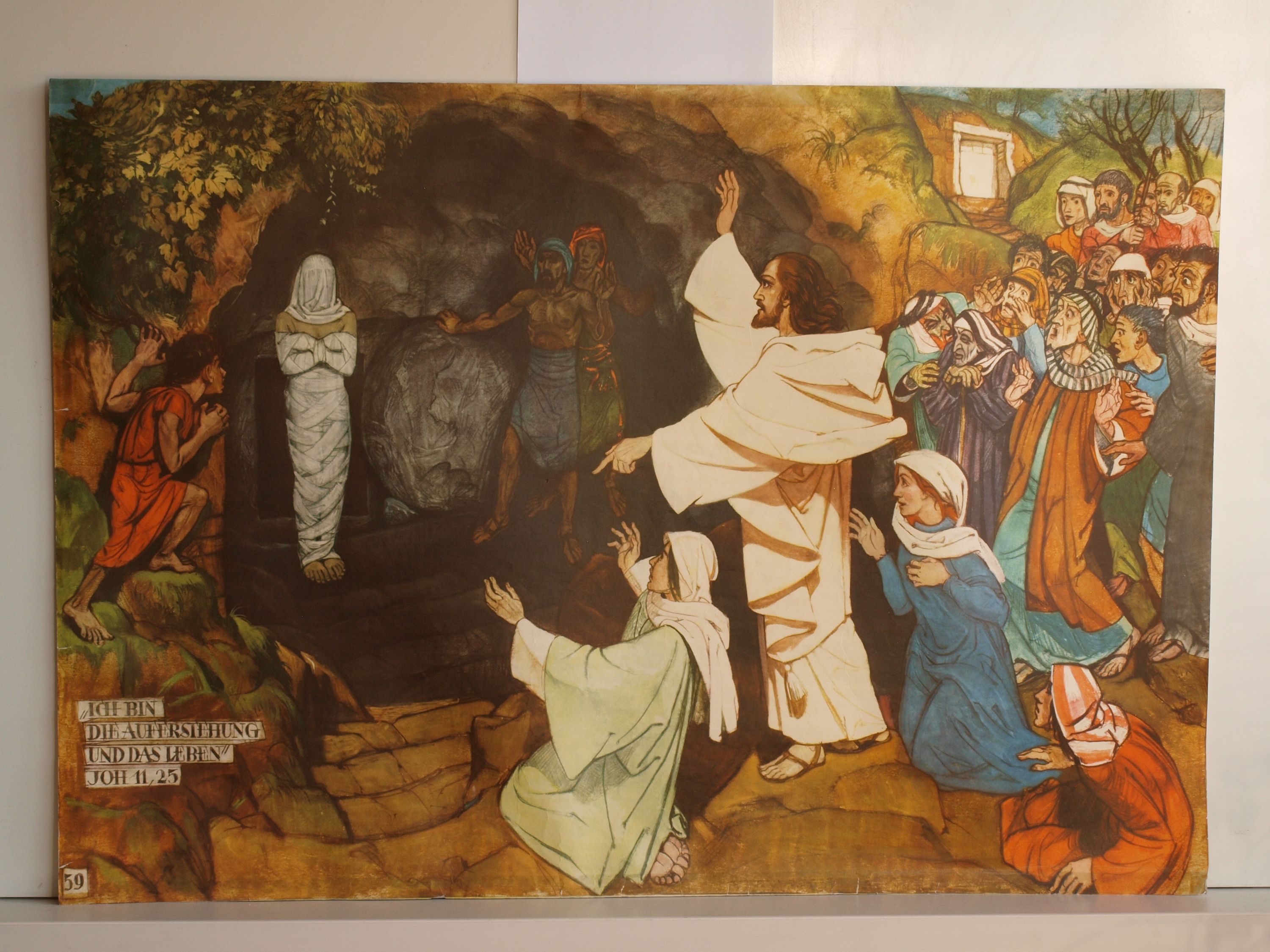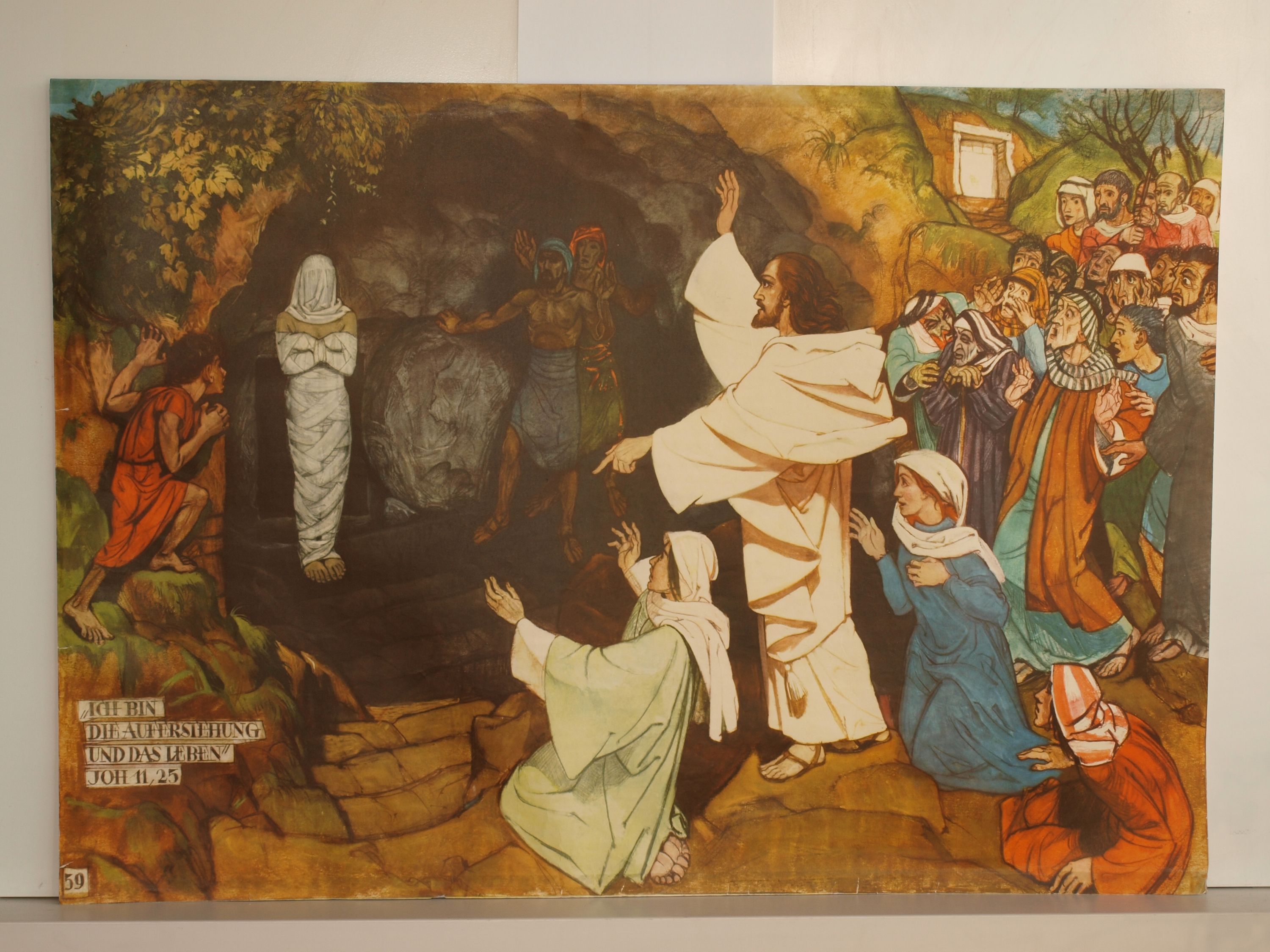 Bibelgeschichte HV59 Erweckung des Lazarus 1960 Schulwandbild Wandbild 98x68cm