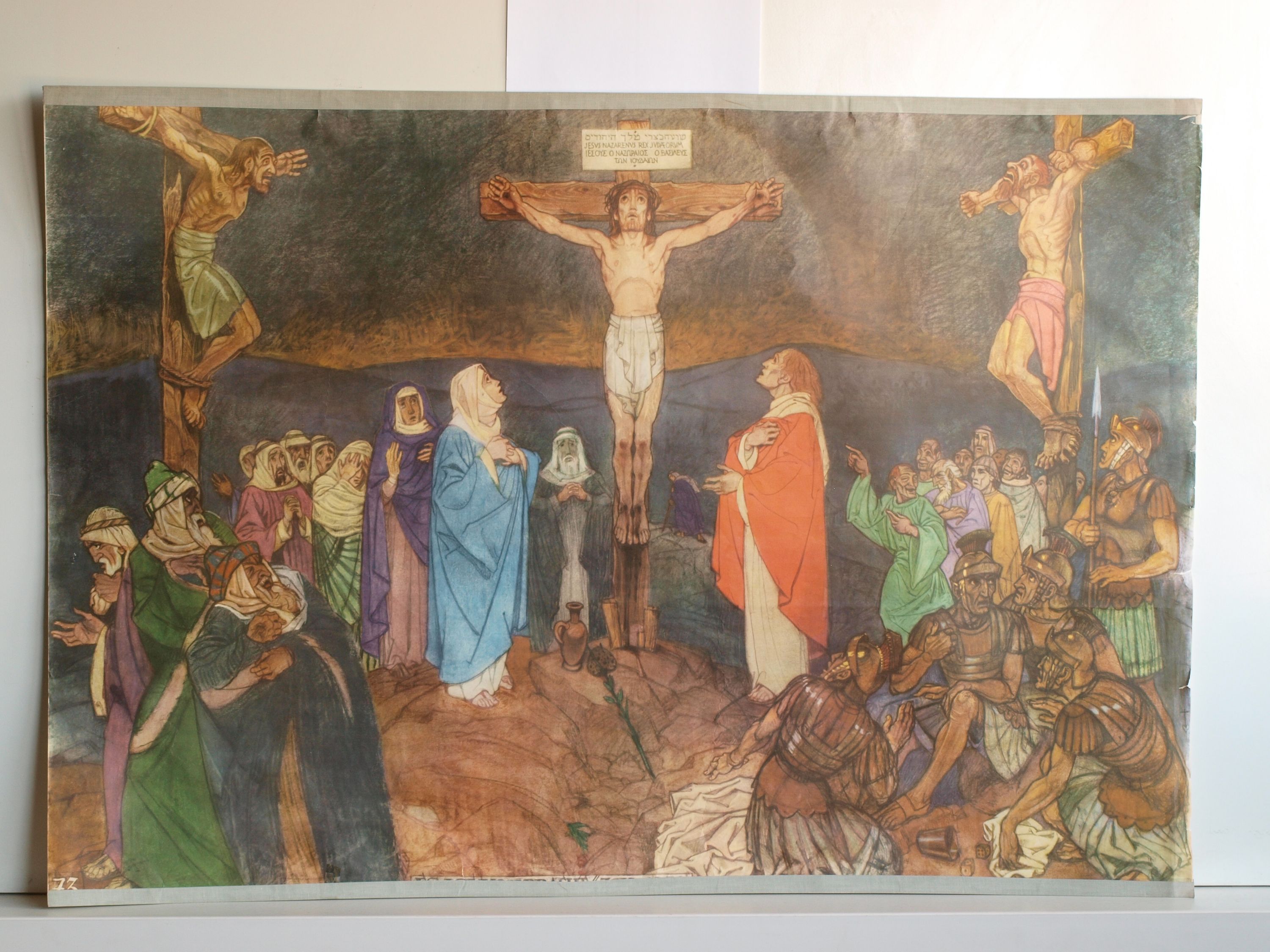 Bibelgeschichte HV73 Hochverrat Jesus am Kreuz 1960 Schulwandbild Wandbild 98x68cm