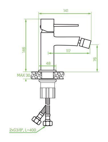 Bidetarmatur Wasserhahn POLA Bidetmischer für Badezimmer in Schwarz + Click-Clack