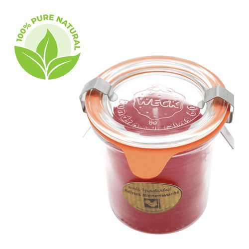 Kerzenfarm Hahn Bienenwachskerze im original Weckglas®, 100% reines Bienenwachs, Dunkelrot, KERZ