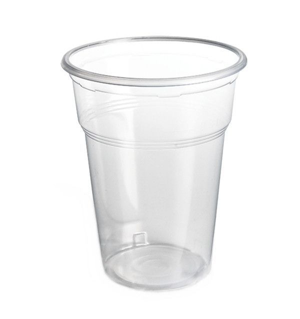 Ausschank-, Bier-, Kaltgetränkebecher Material: PP (Polypropylen) Farbe: transparent Fassungsvermögen: 450 ml (16 oz) Füllstrich: 0,4 l Durchmesser oben: 95 mm lebensmittelecht geschmacks- und geruchsneutral mit Siegelfilm verschweißbar hergestellt in der EU mit SUP Logo mehrsprachig graviert recycelbar