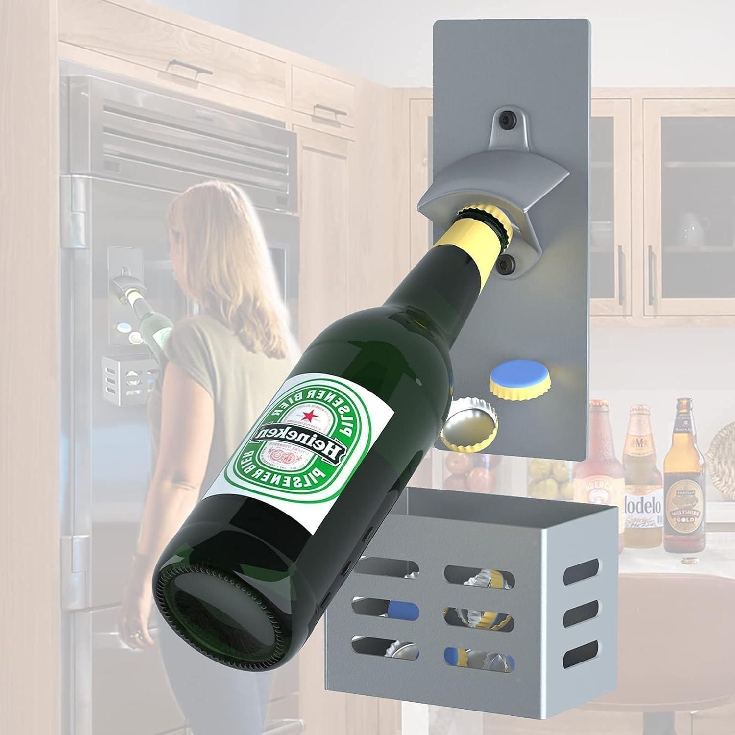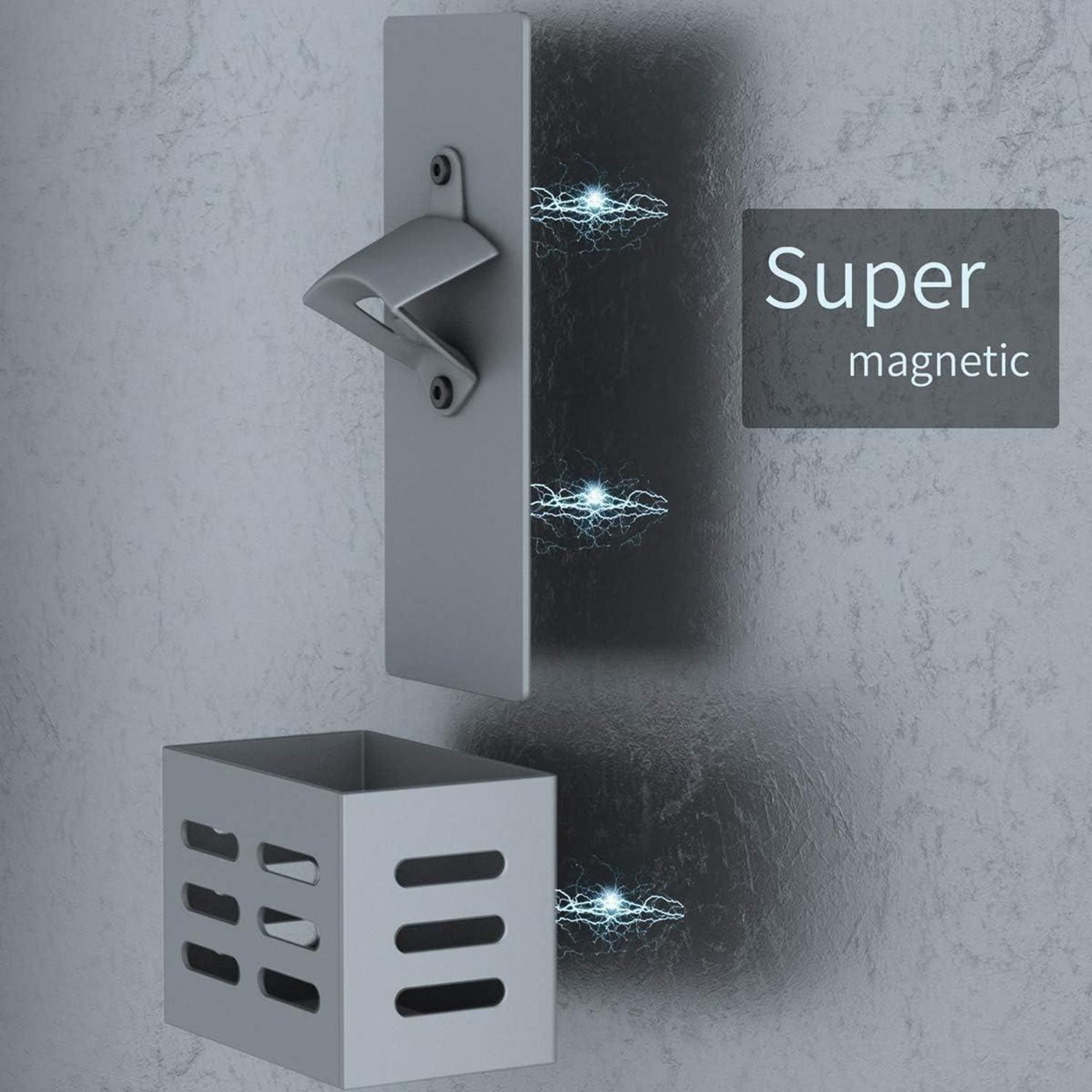 Bierflaschenöffner Wand Magnet Auffangkorb Stahl Geschenk für Männer Grau