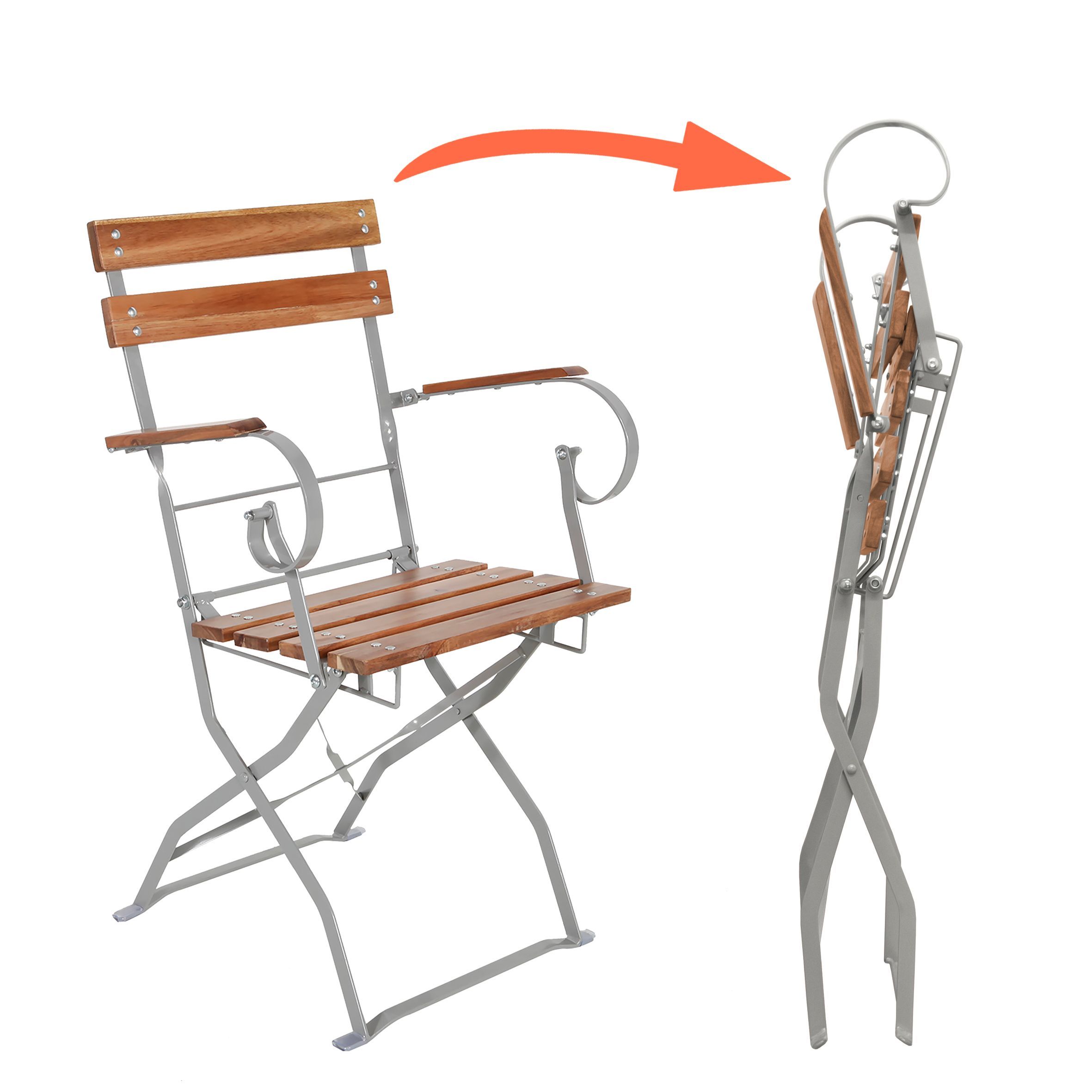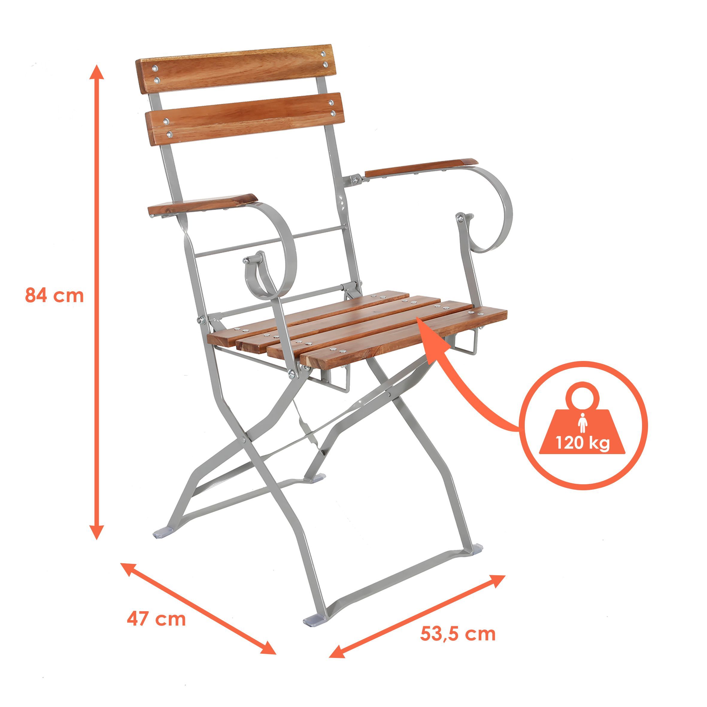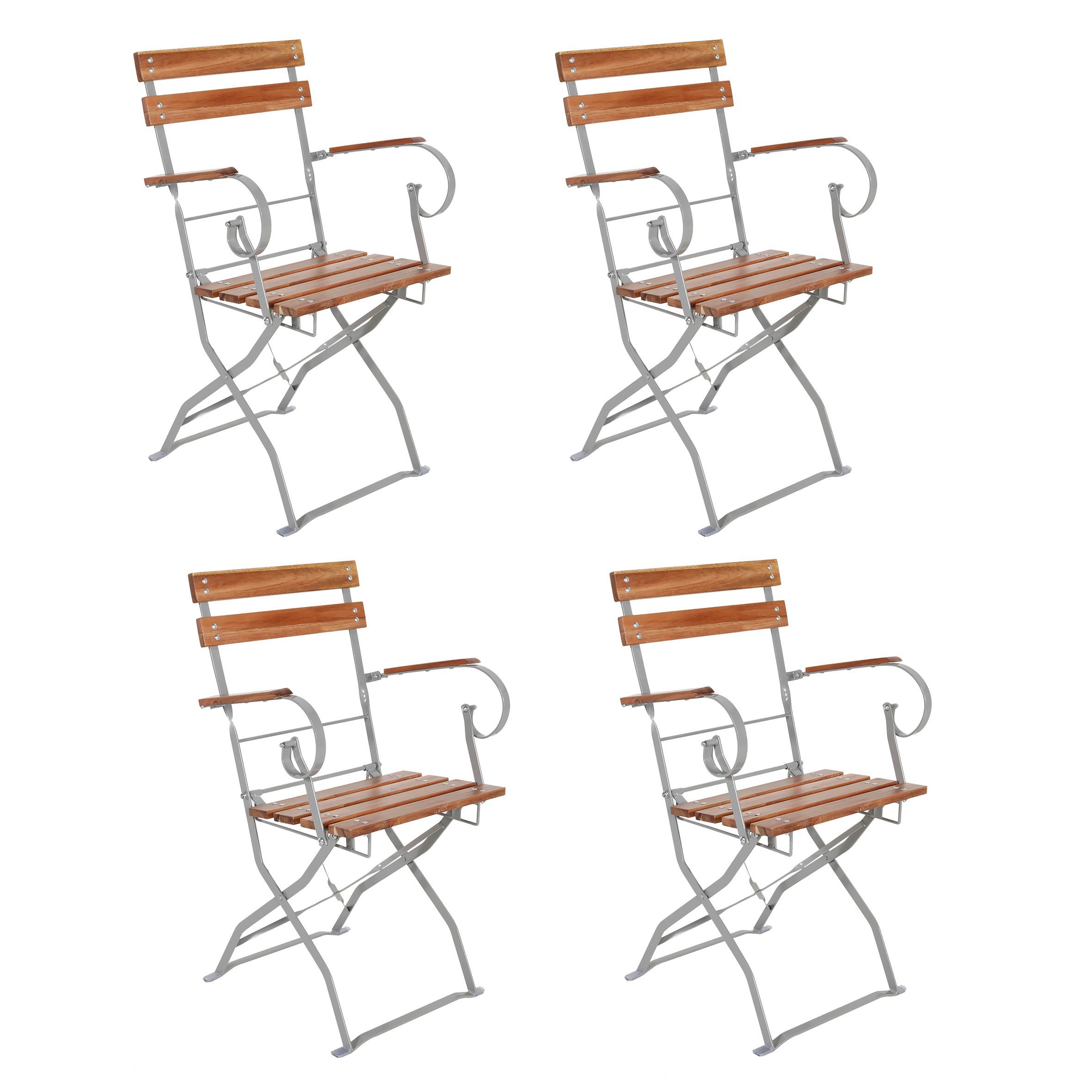 Biergarten Sessel mit Armlehnen 84 x 53 cm - 4er Set - Bistro Klappstuhl aus Akazien