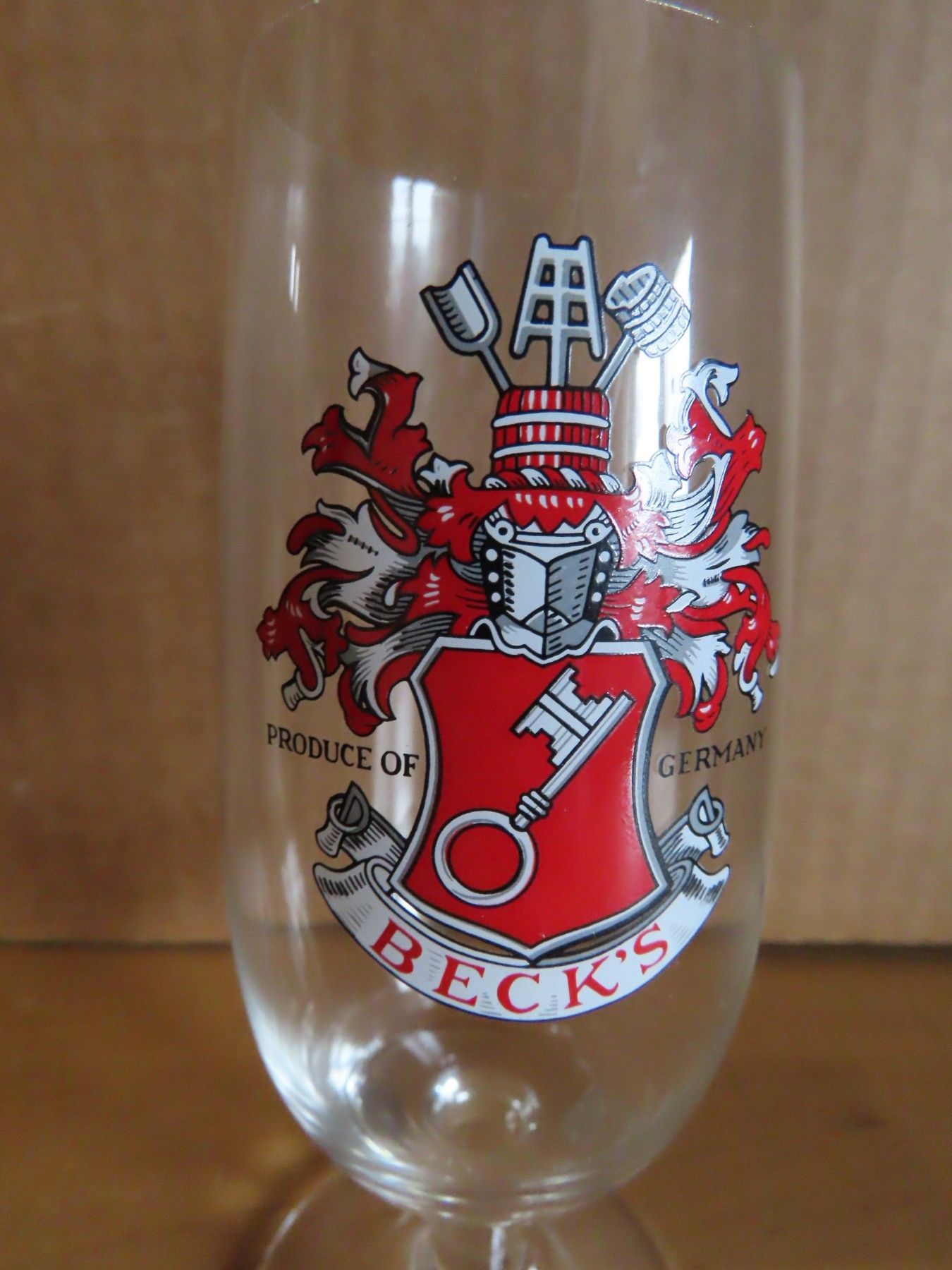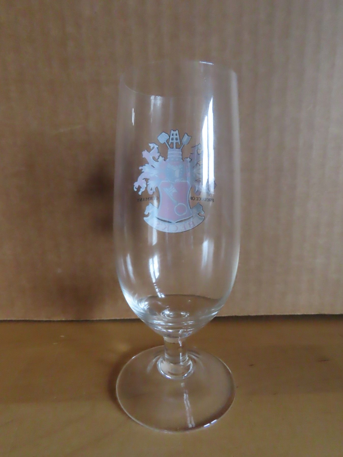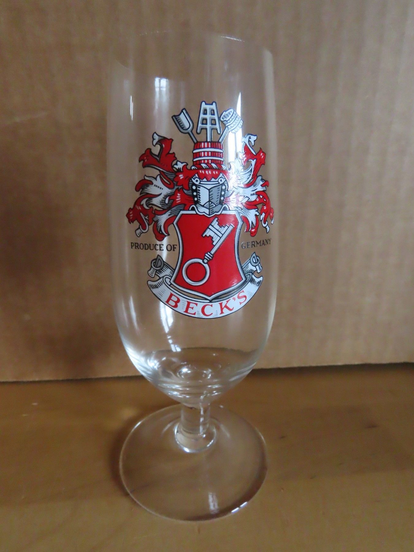 Bierglas Pilsglas kurzer Fuß Becks Druck rot weiß