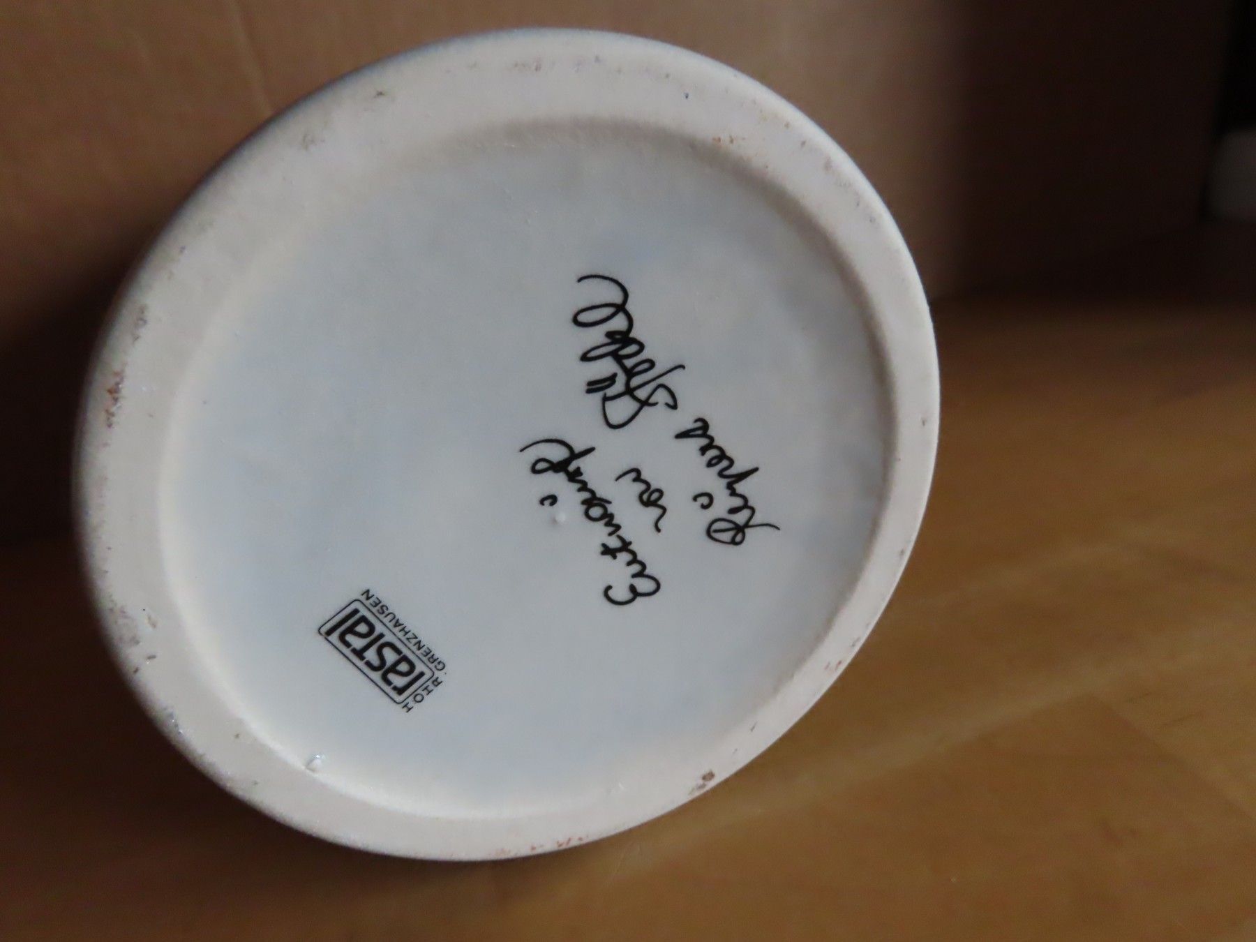 Maße: ca. 19,5 cm hoch x ca. 9 cm am oberen Rand gemessen --der Boden Fuß hat einen Durchmesser von ca. 10 cm --immer die breiteste Stelle gemessen Material: Keramik ist leicht verschmutzt... Mehr
