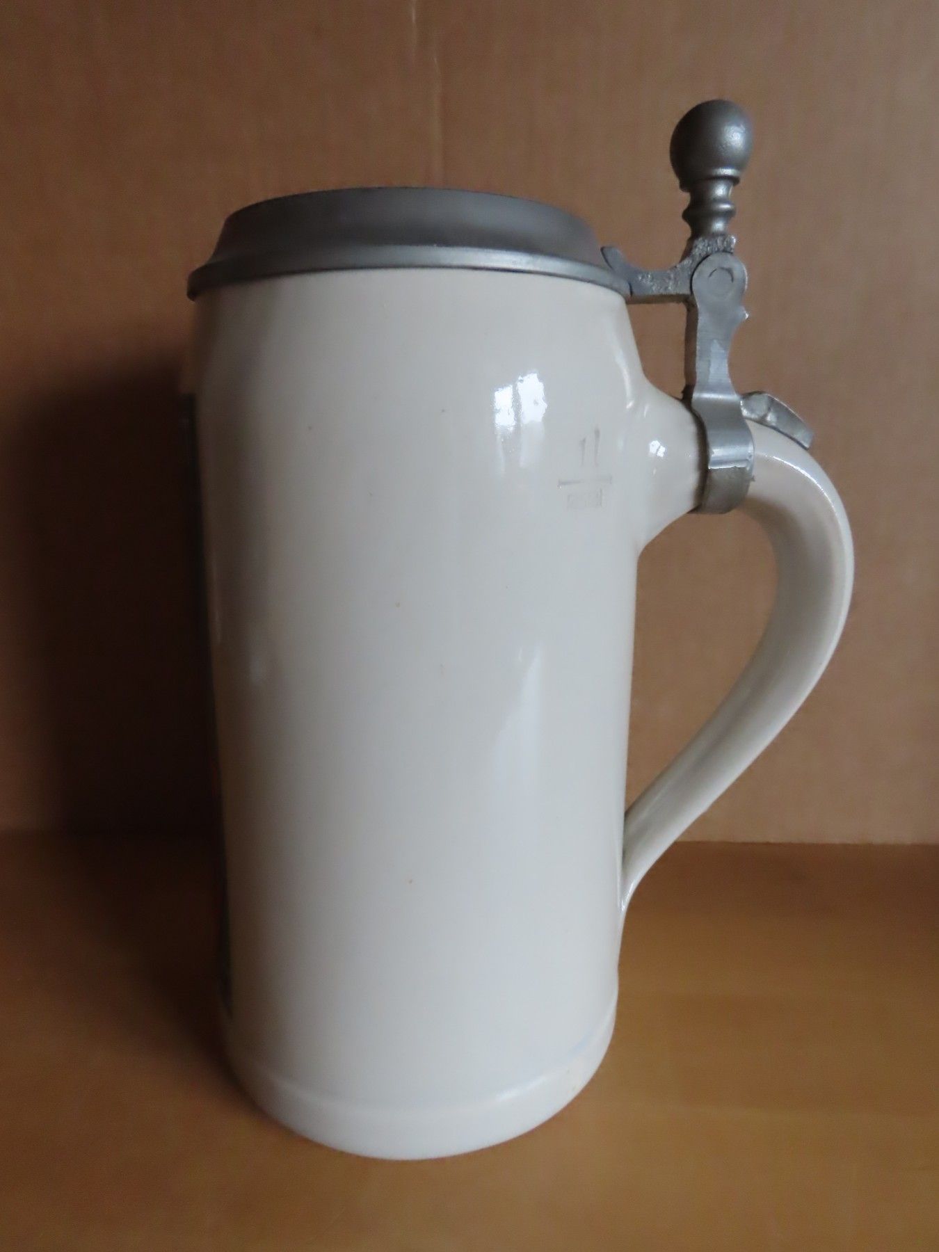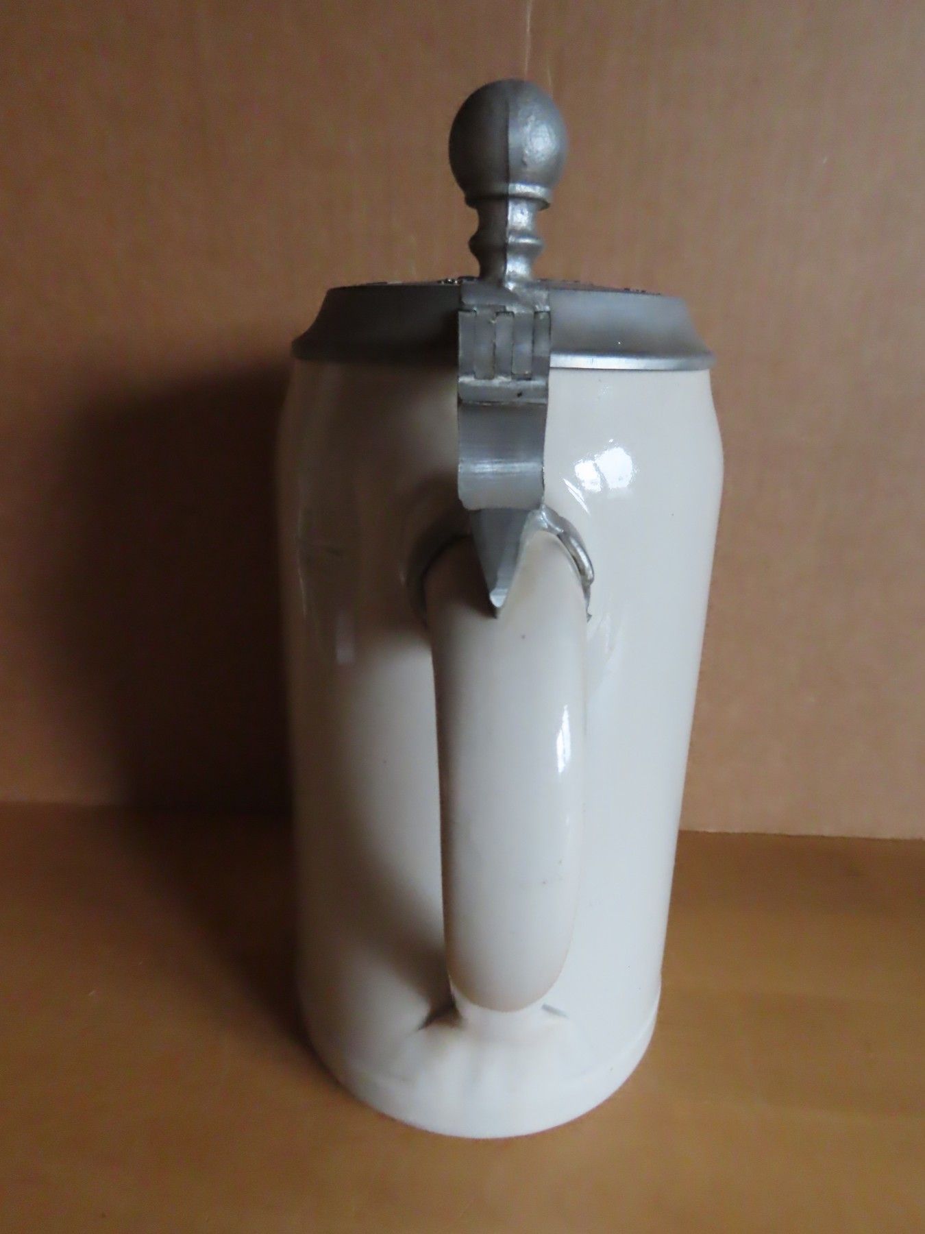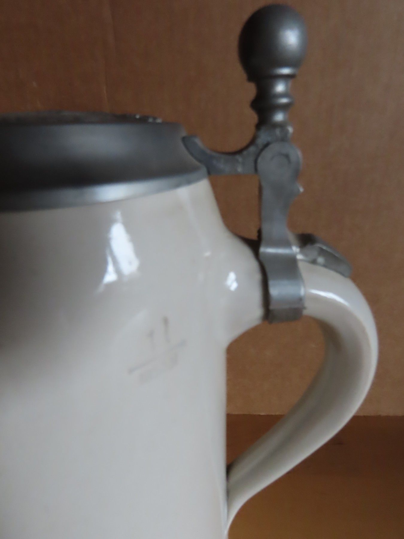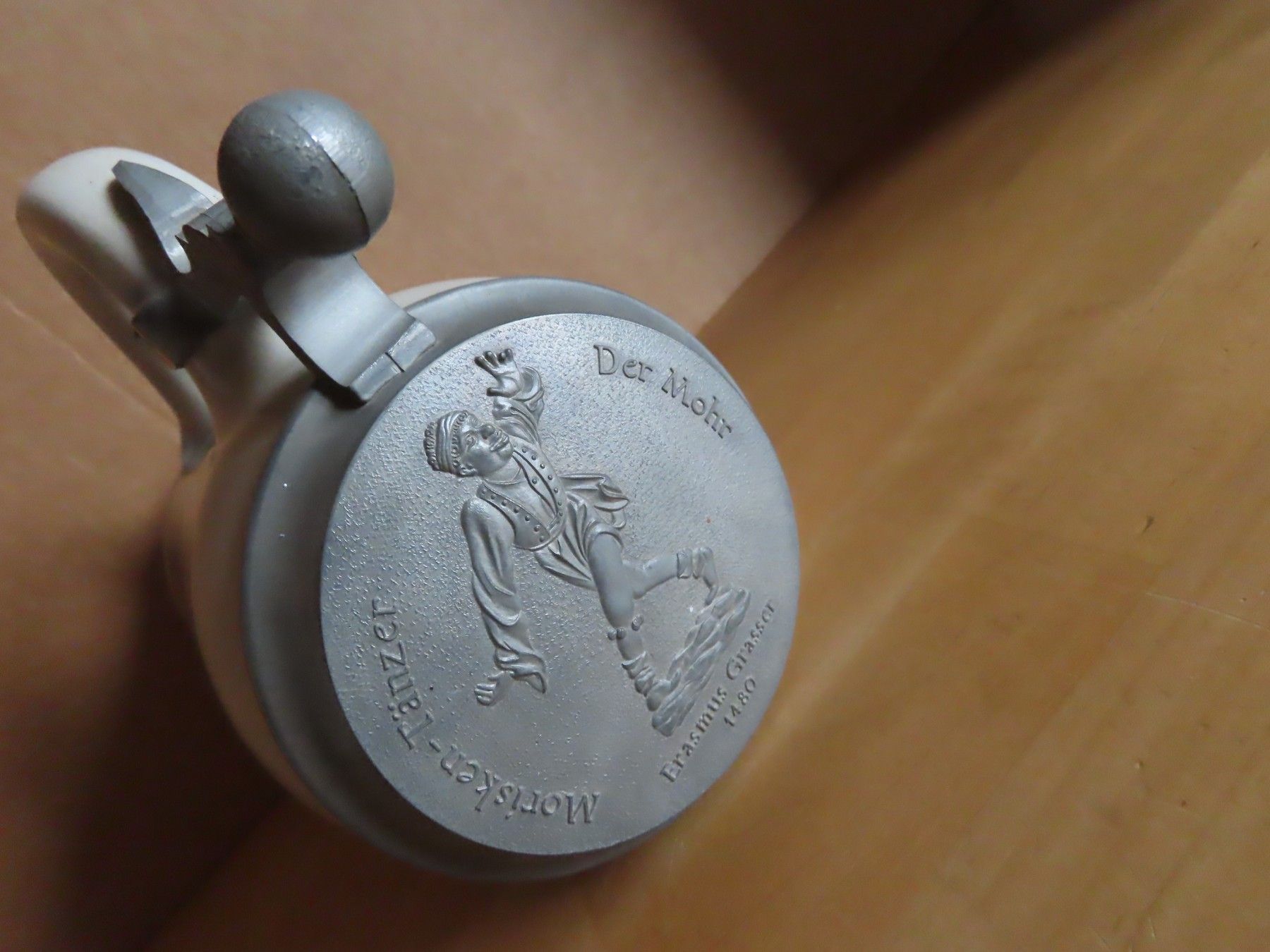 Morisken-Tänzer Der Mohr Grasser 1480 - Maße: ca. 19 cm hoch x ca. 9 cm am oberen Rand gemessen --der Boden Fuß hat einen Durchmesser von ca. 10 cm --immer die breiteste Stelle gemessen Material: Keramik-Zinndeckel ist leicht verschmutzt und der Deckel hat Verfärbungen Morisken-Tänzer Der Mohr Erasm... Mehr