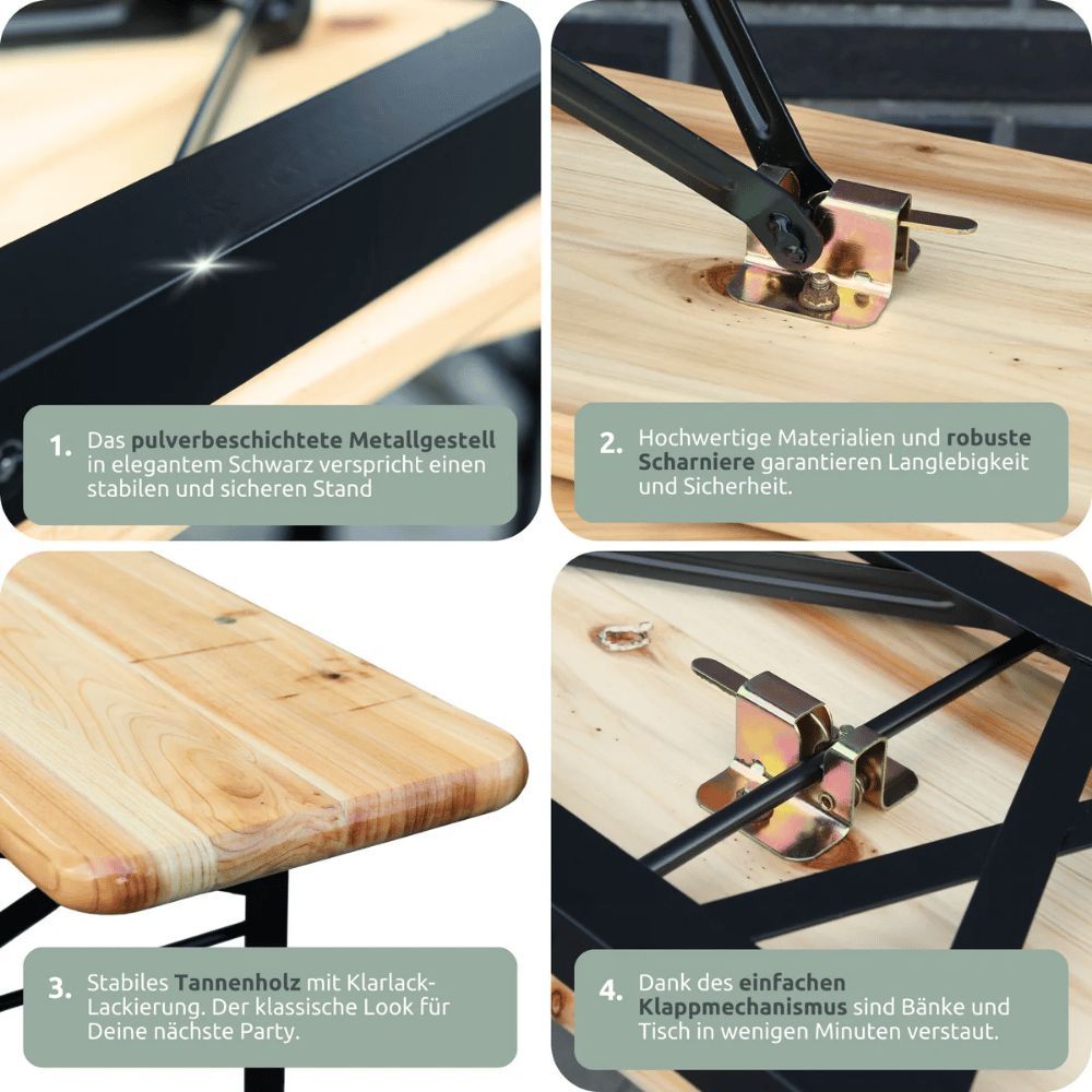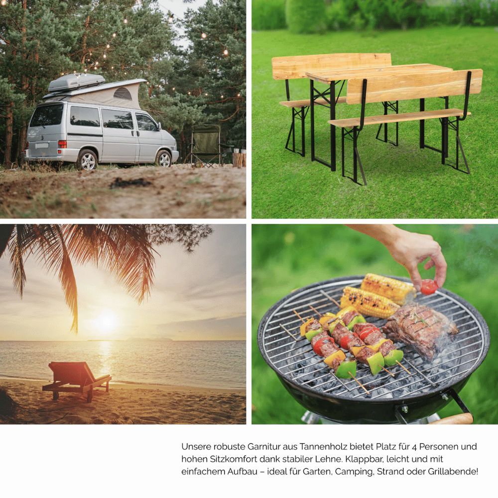 Bierzeltgarnitur Lehne klappbar Holz 120 klein RINHO 3-tlg. 2x Bierbank 1xBiertisch