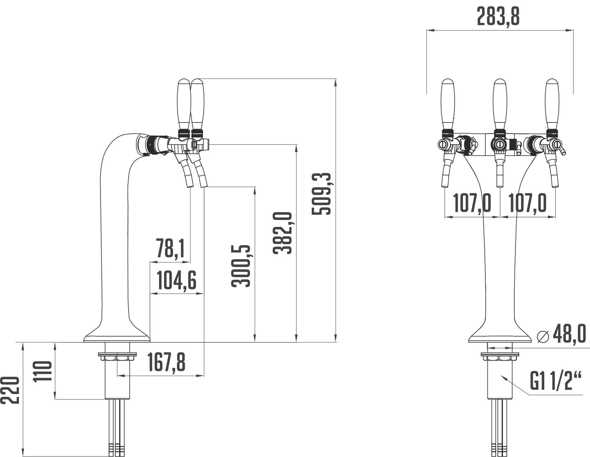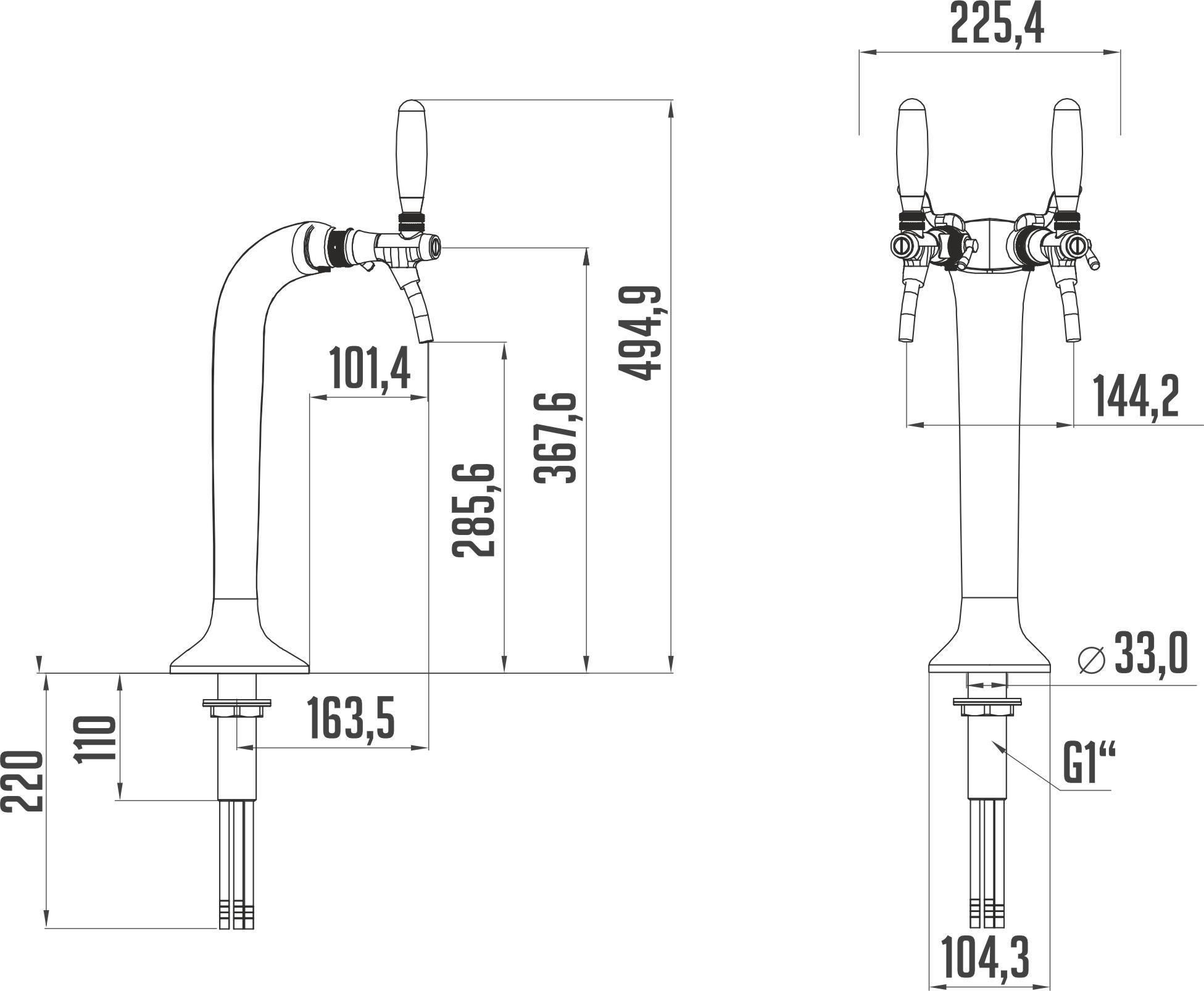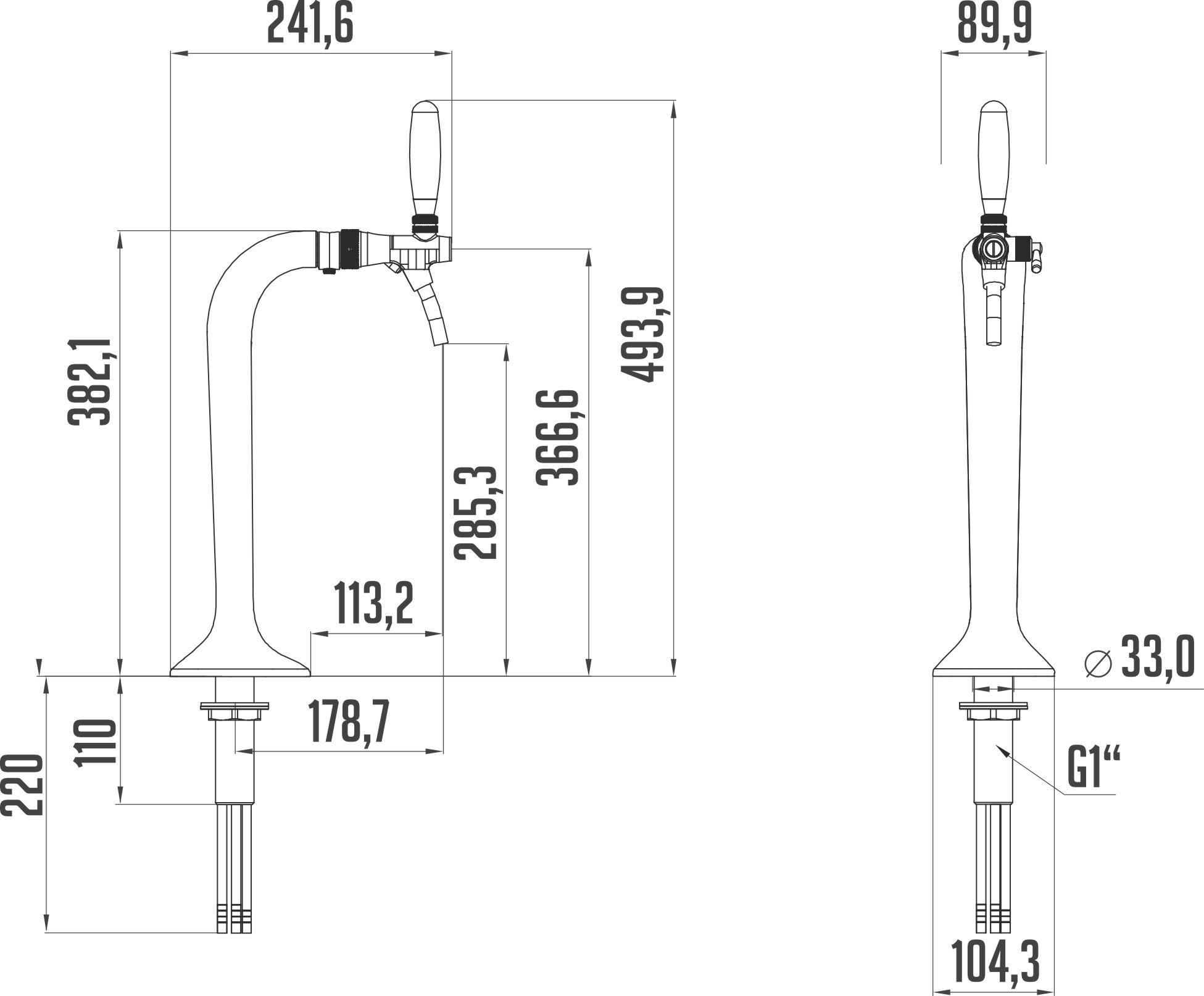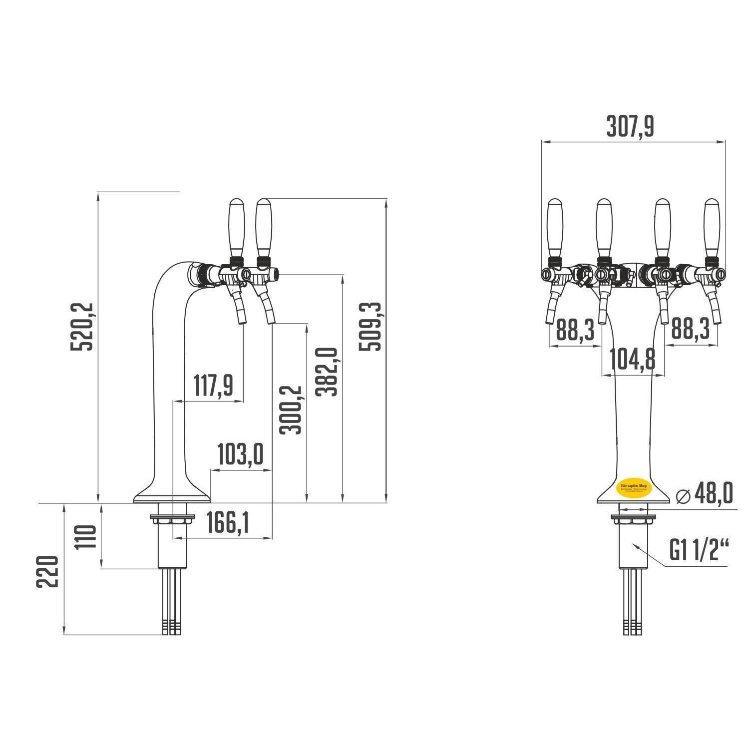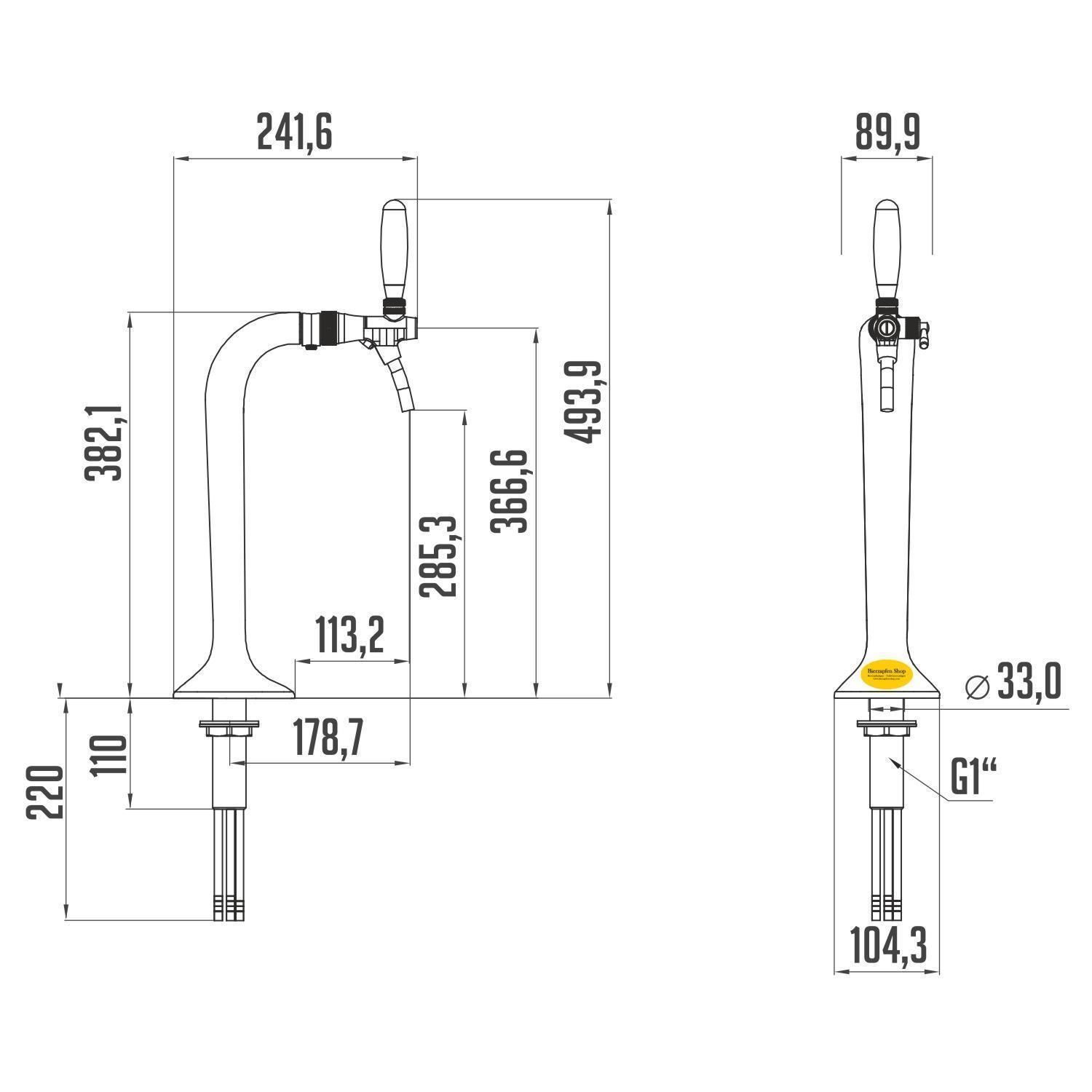 BieTal® Classic Cobra Bier Schanksäule Wasser Zapfsäule Chrom Gold Schwarz