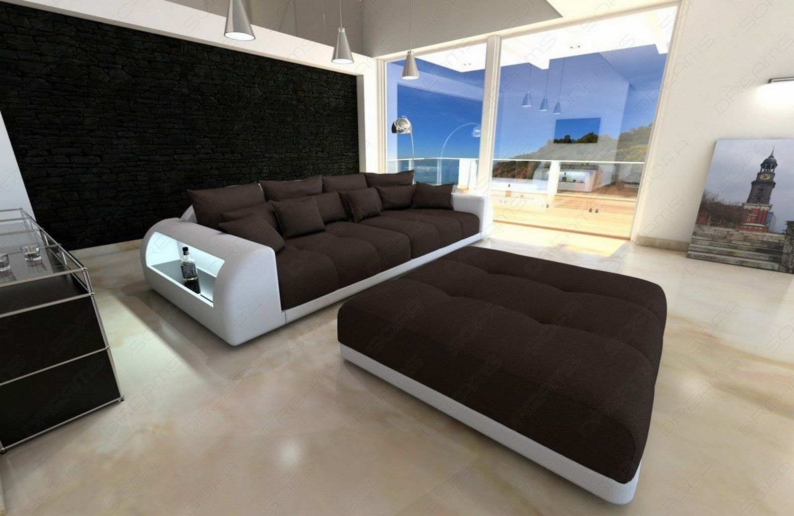 Sofa Dreams Big Sofa Miami in Webstoff Mikrofaser mit LED
