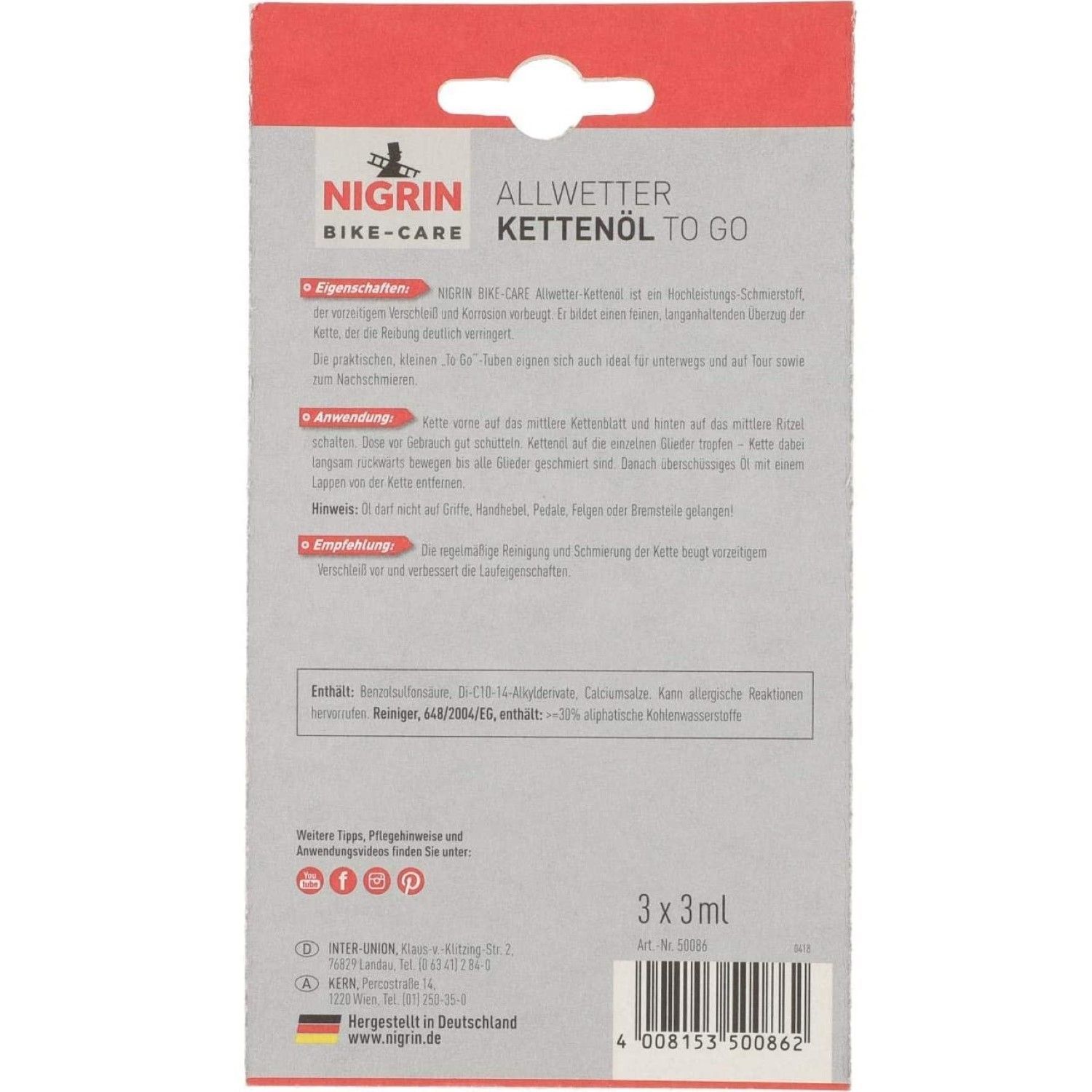 Nigrin Bike Care All-Wetter Ketten-Öl 3x 3ml für Fahrräder