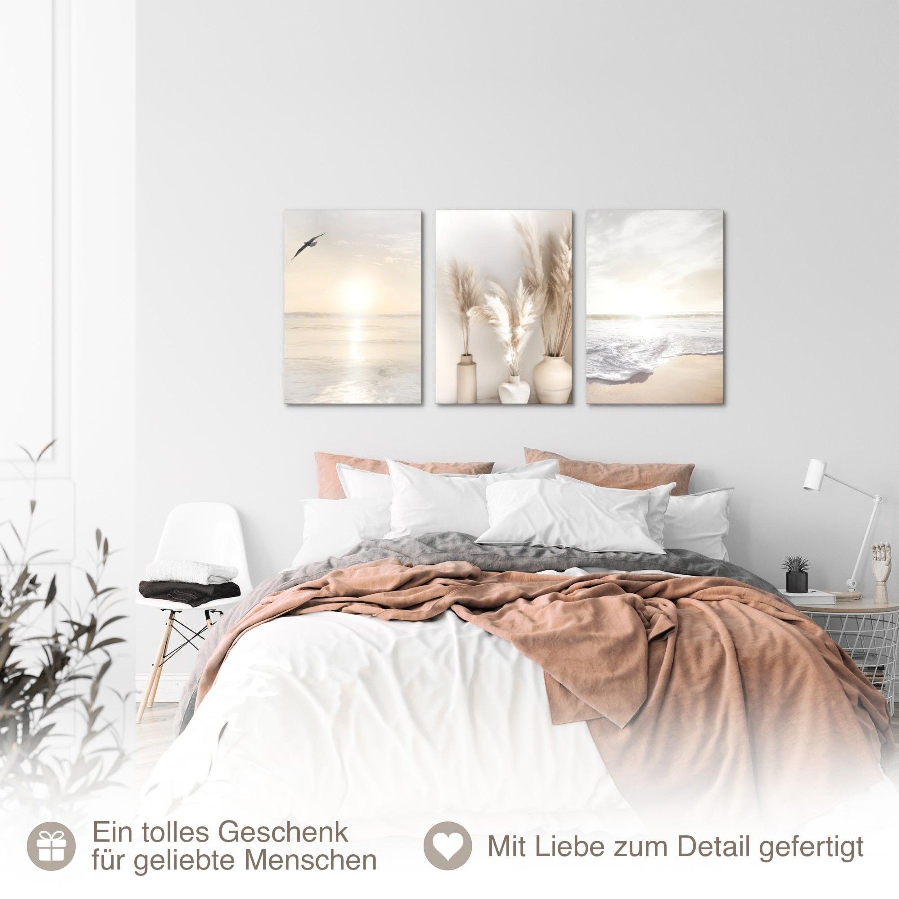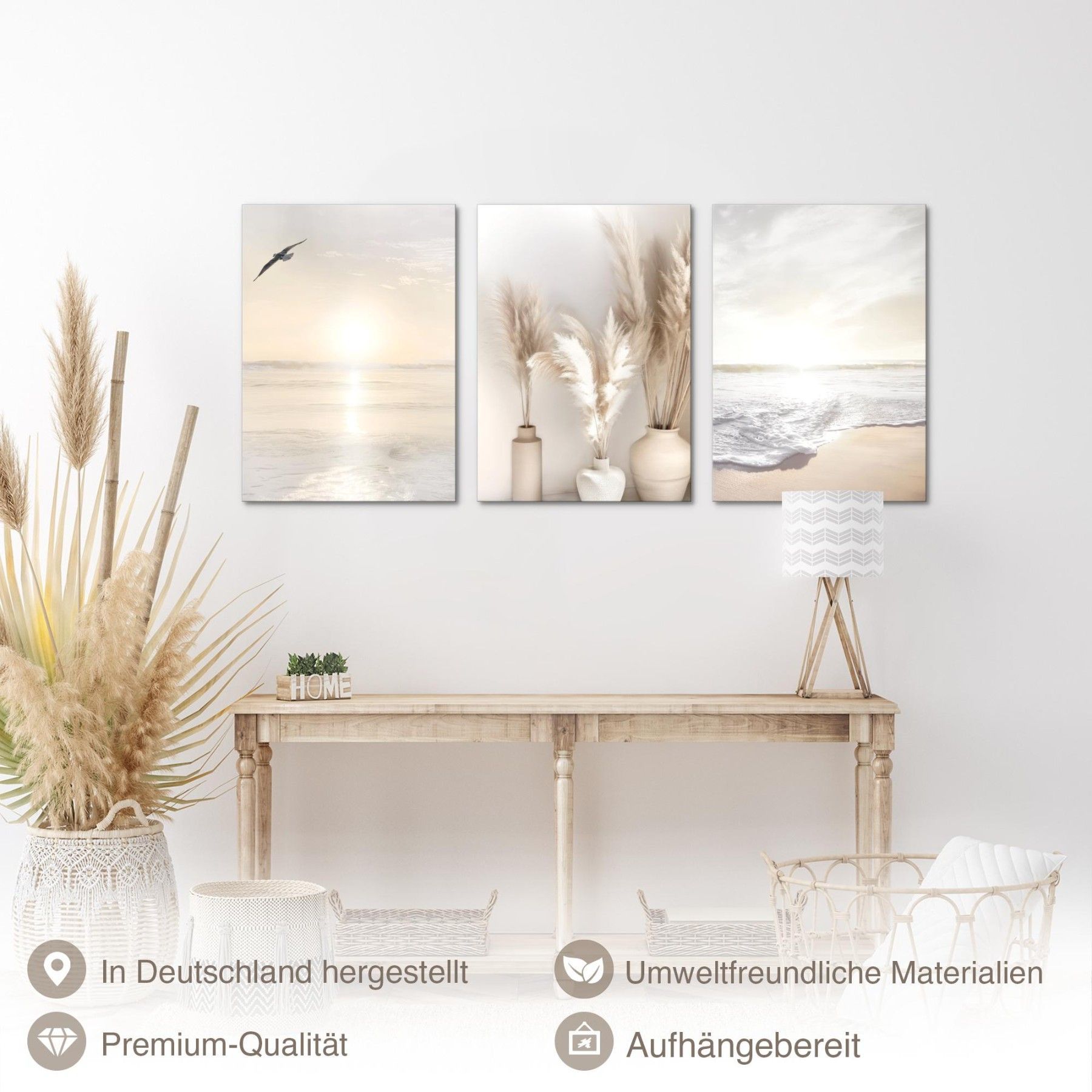 Bilder Set Strand Meer Boho - Kein Extra Rahmen benötigt Wandbilder Wohnzimmer