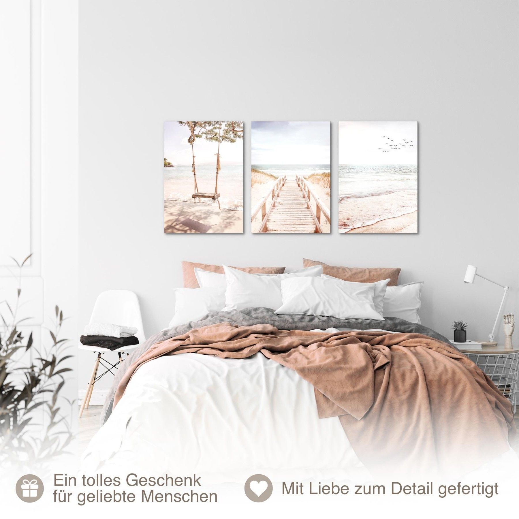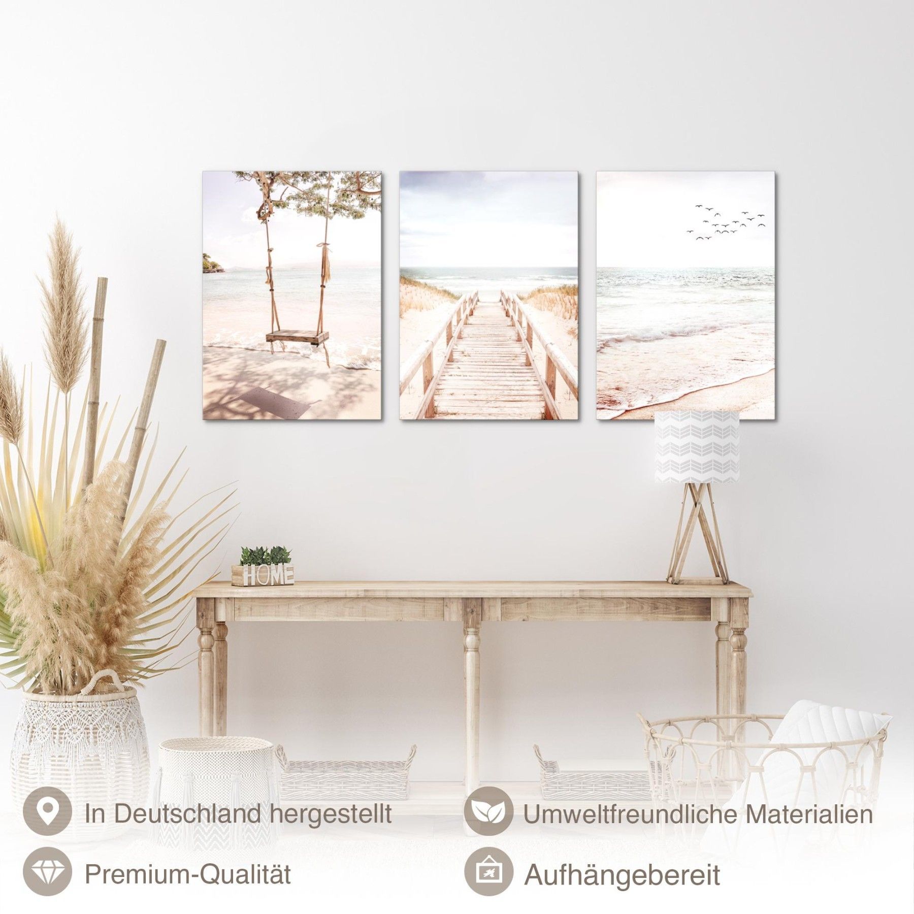 Bilder Set Strand Meer Boho - Kein Extra Rahmen benötigt Wandbilder Wohnzimmer