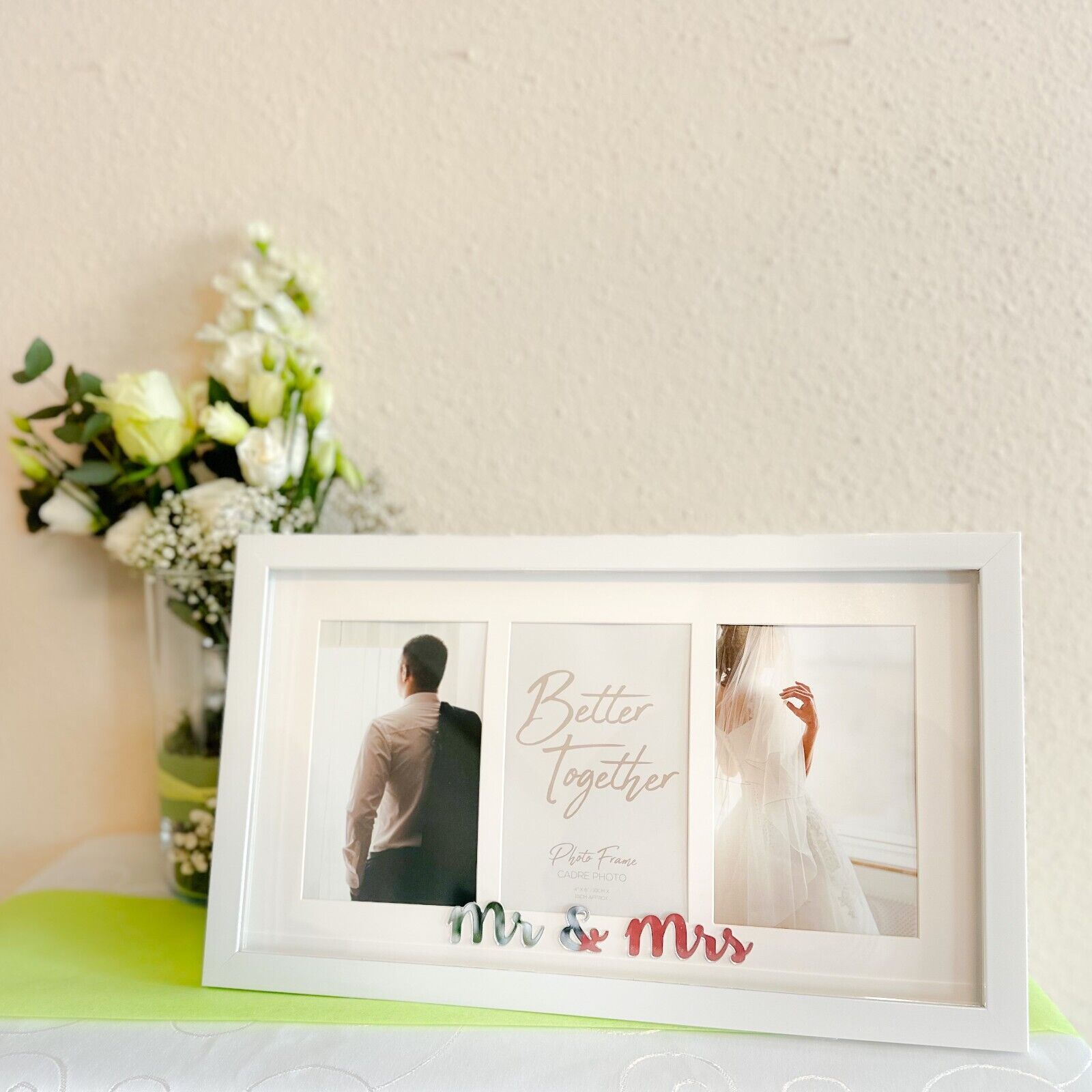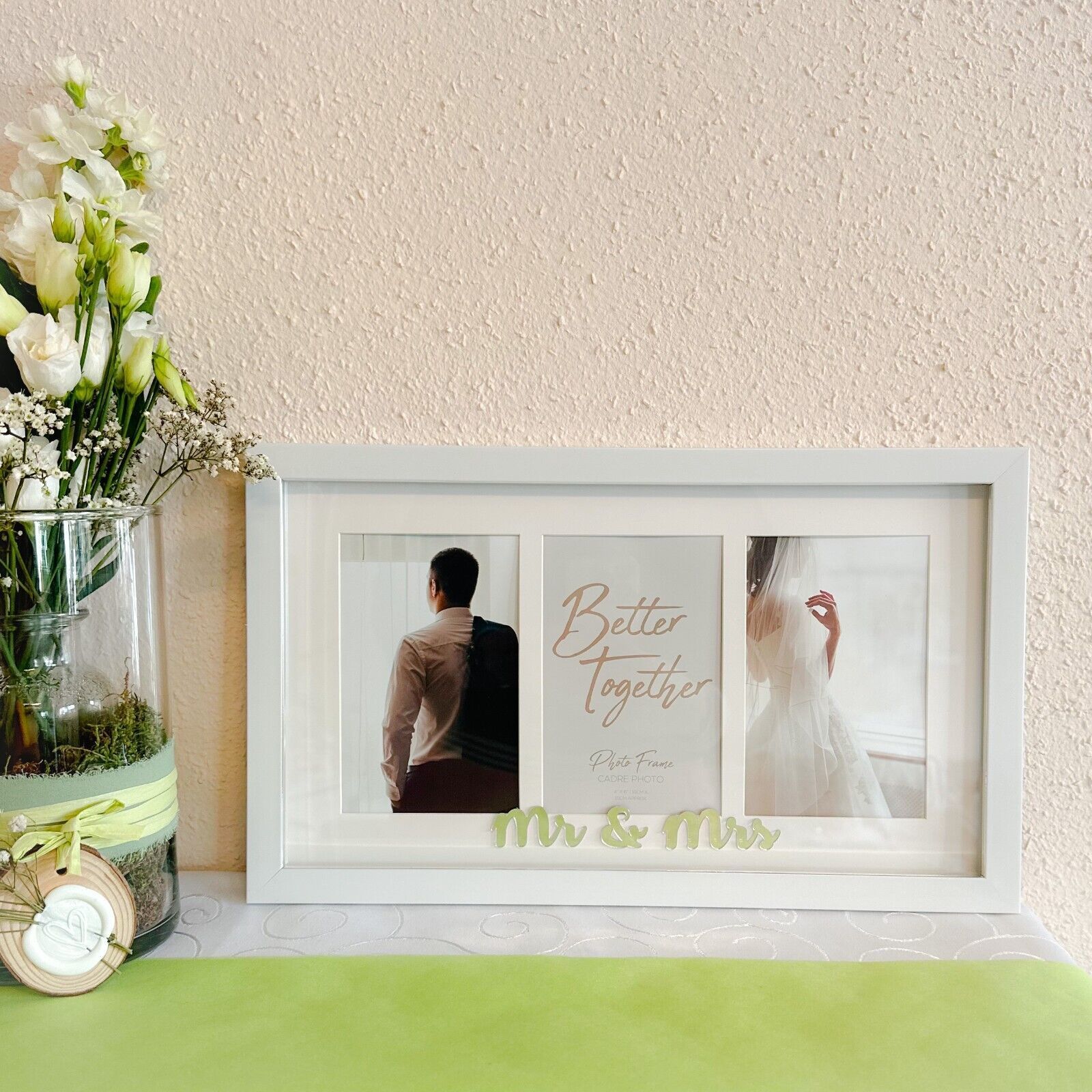 Bilderrahmen 3-fach-RAHMEN MR & MRS für 3 Bilder weiß silber Hochzeit Liebe Deko