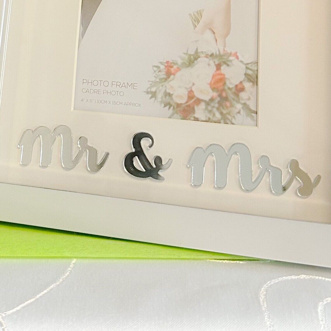 • Bilderrahmen RAHMEN 28x22,5 cm weiß silber Mr & Mrs Hochzeit Liebe schlicht Deko