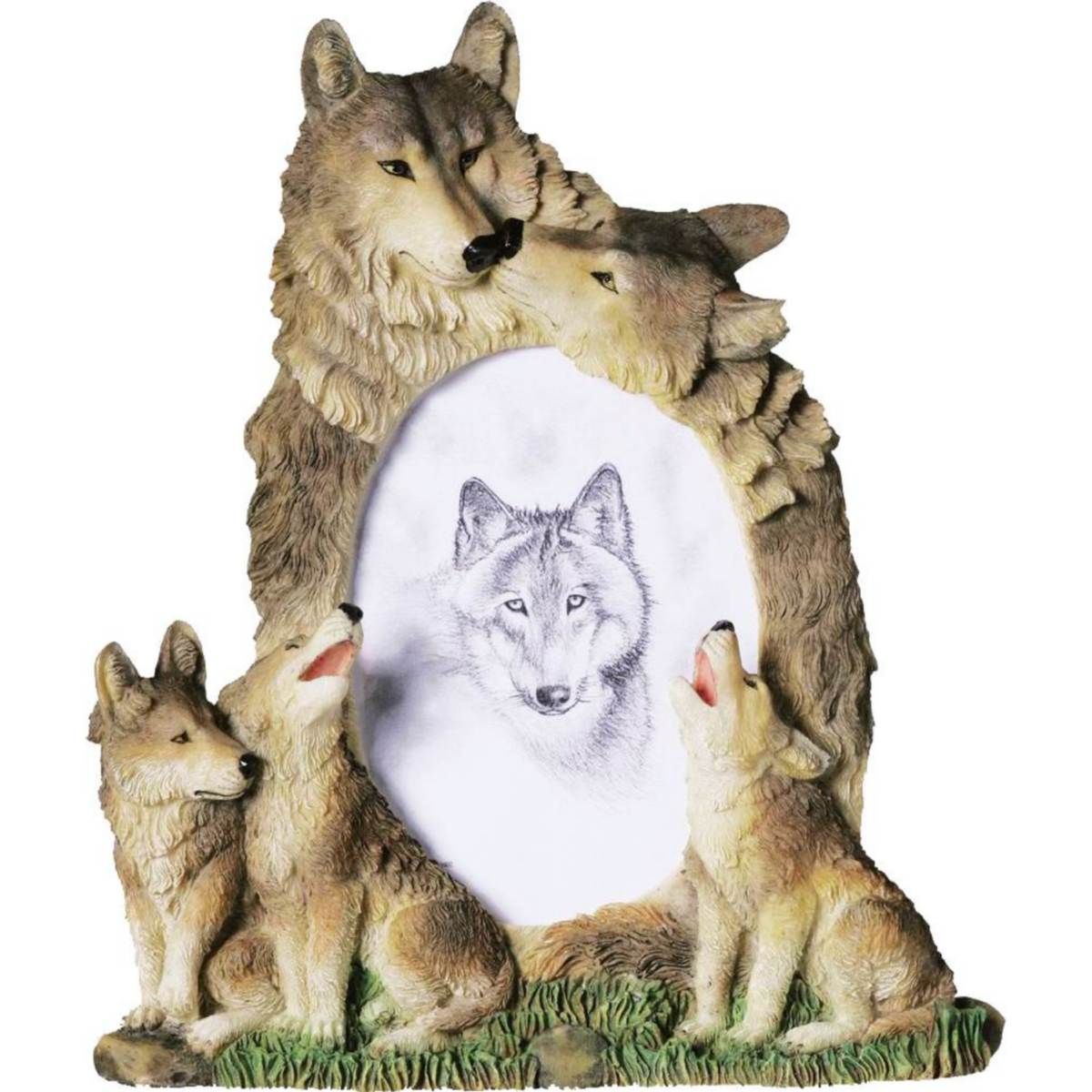 Bilderrahmen liebendes Wolfspärchen mit drei Welpen