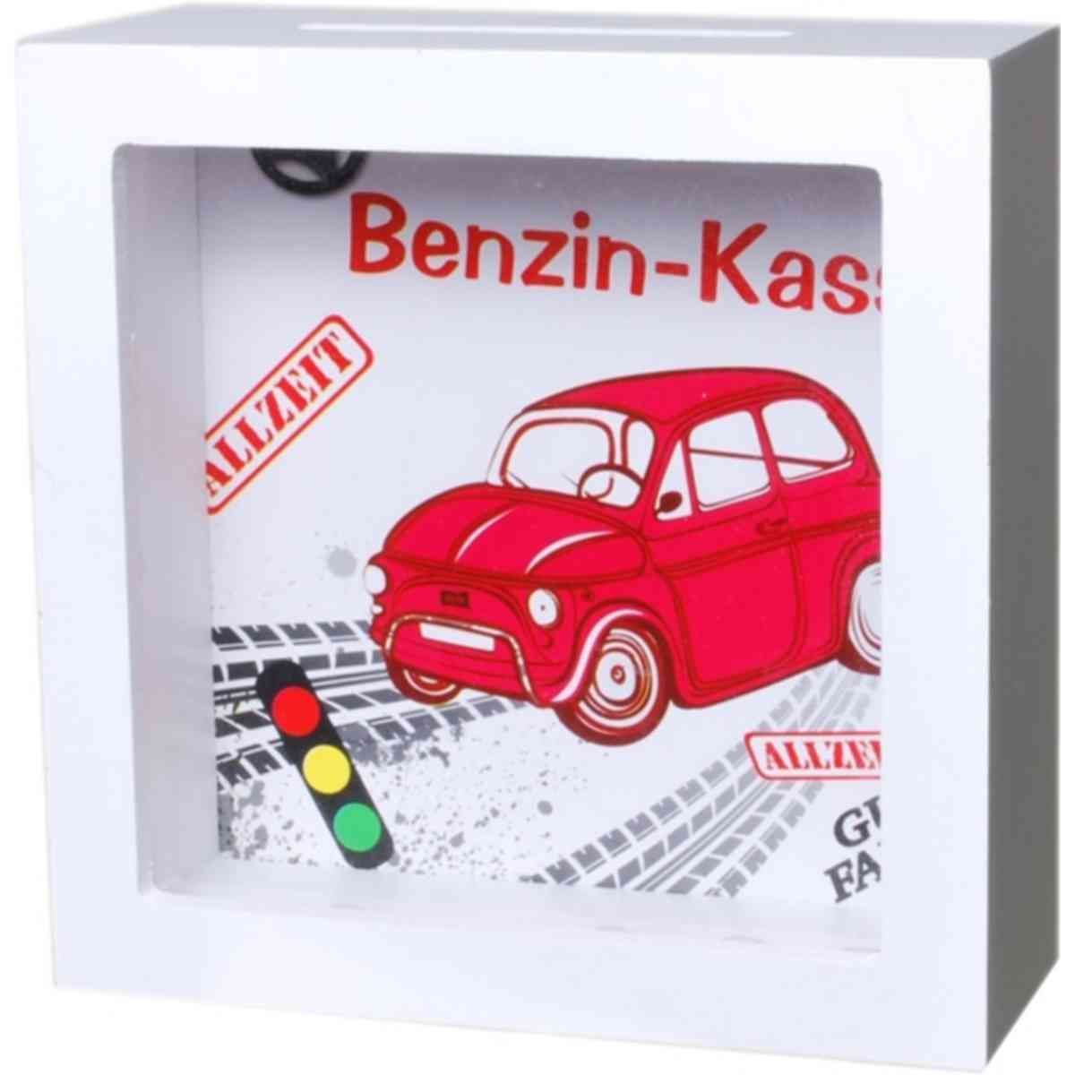 Bilderrahmen-Spardose "Benzin-Kasse" zum hängen, stellen, Rückwand abnehmbar