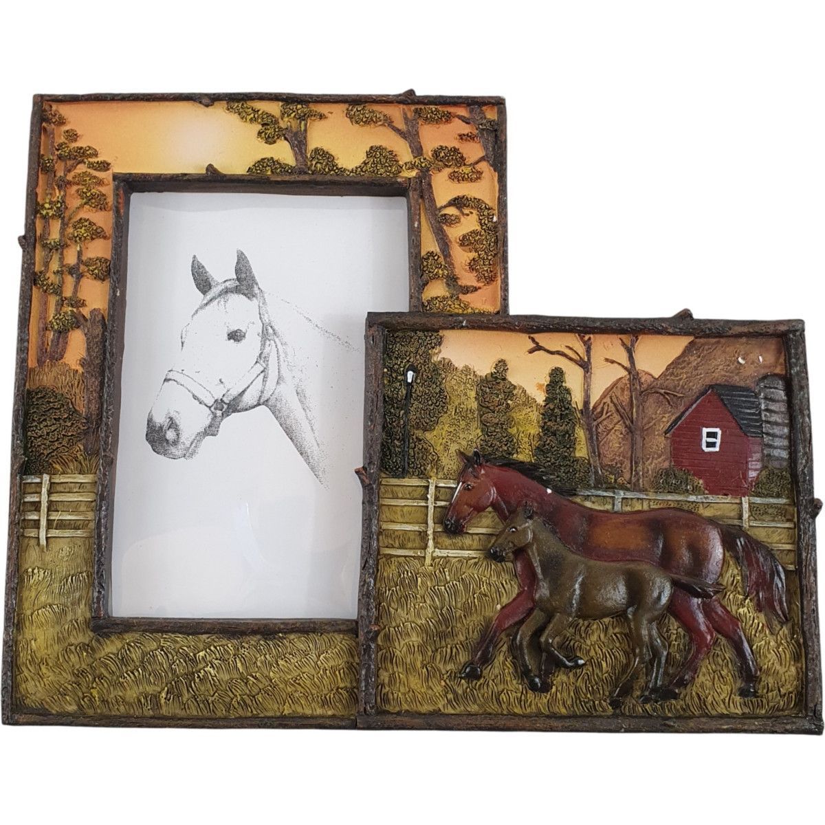 Bilderrahmen Wald mit Pferde Reliefbild