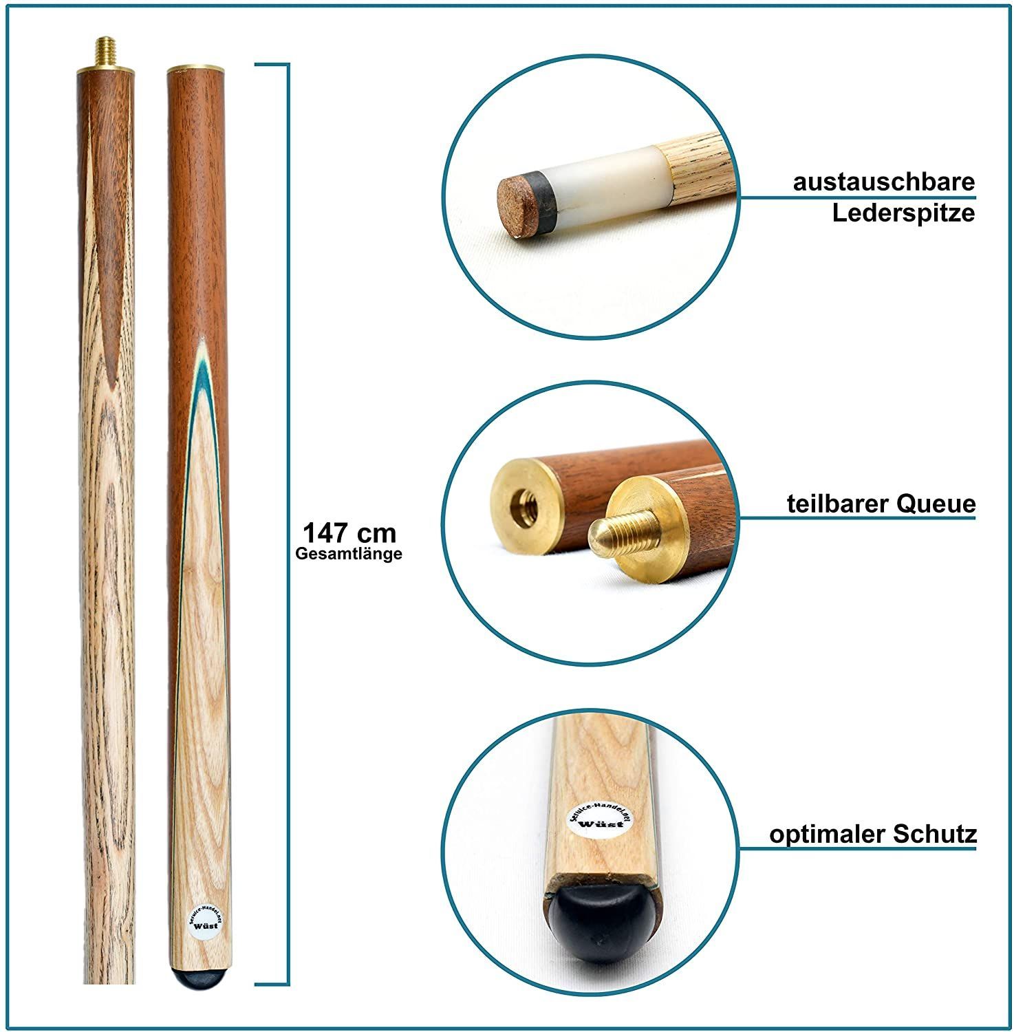 Billard Queue 2-teiliger aus Holz – 147 cm, für Pool & Snooker