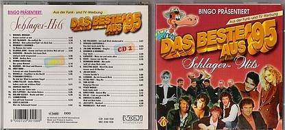 Bingo präsentiert Das Beste aus '95 ist eine Doppel CD (36 Songs) Deutsche Schlager.Die CDs sind gebraucht aber im einwandfreiem Zustand.Auch die Hülle ist noch gut erhalten. (38 2)