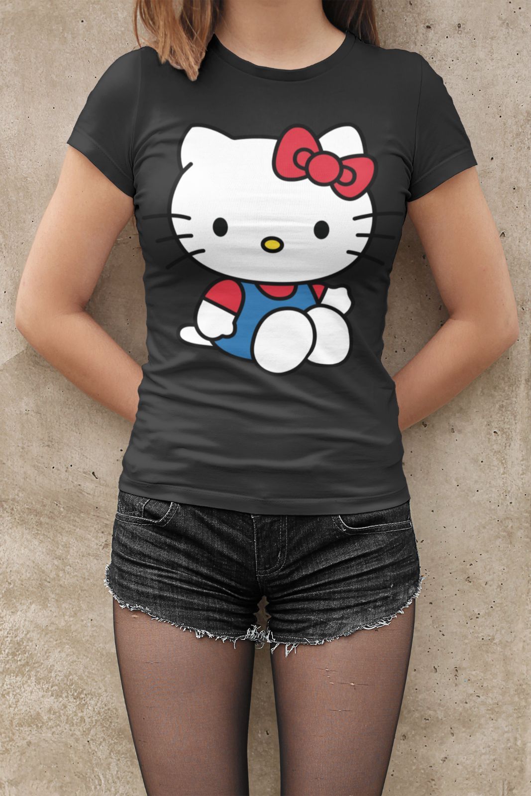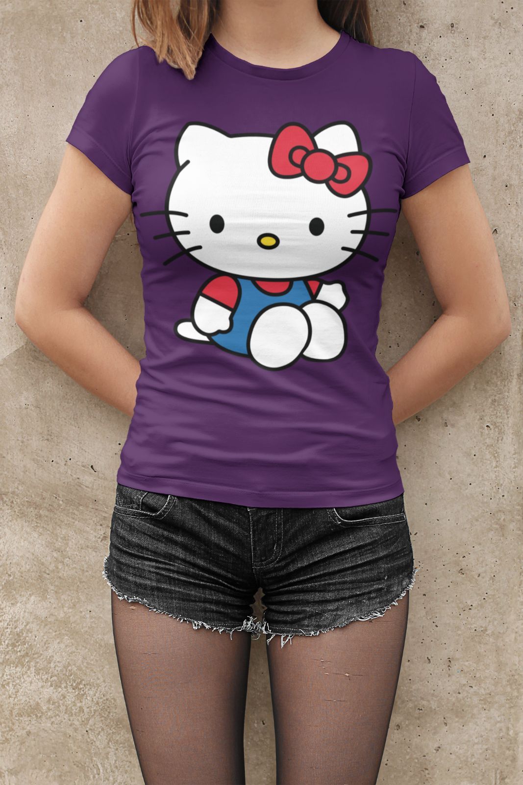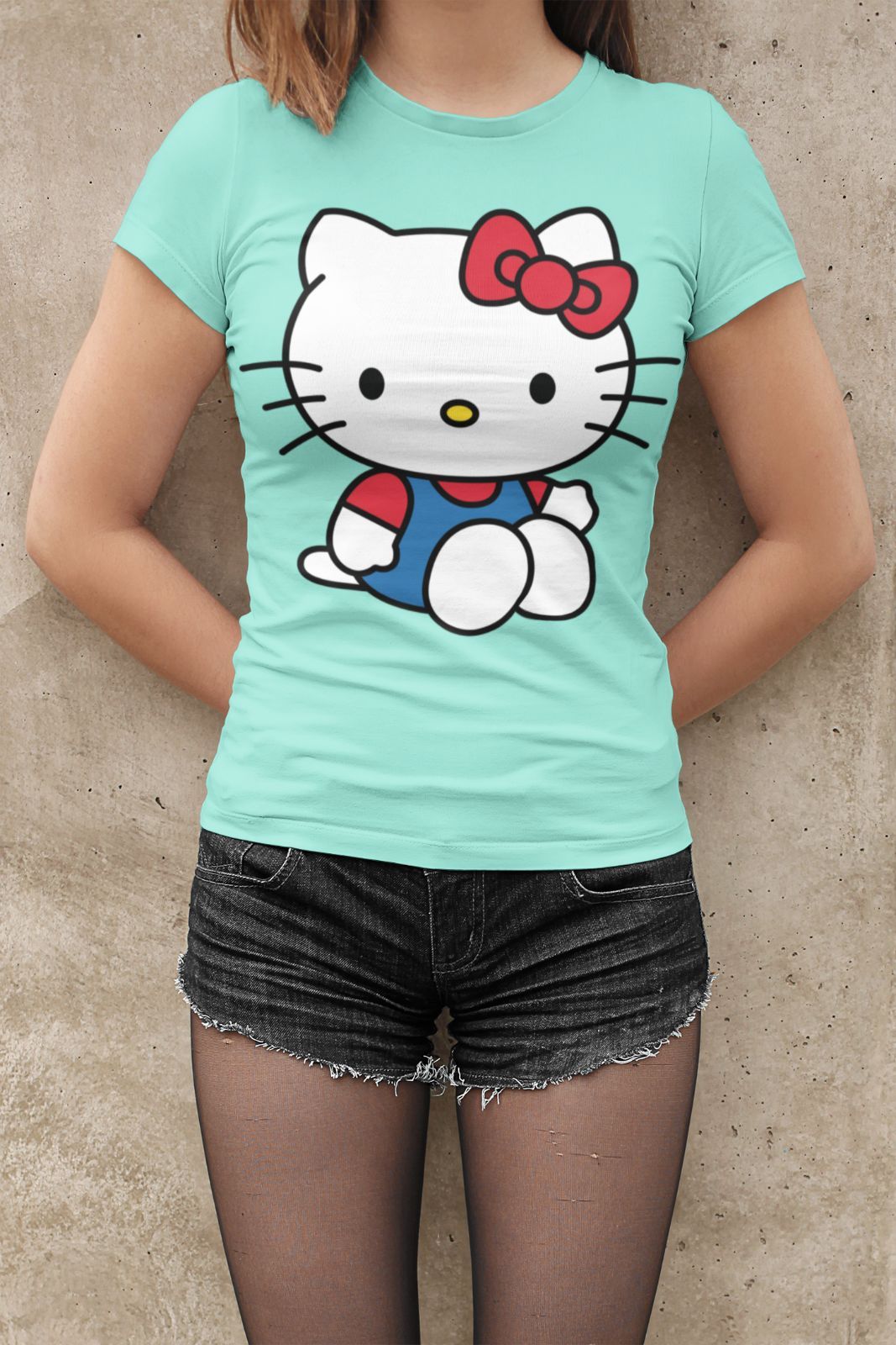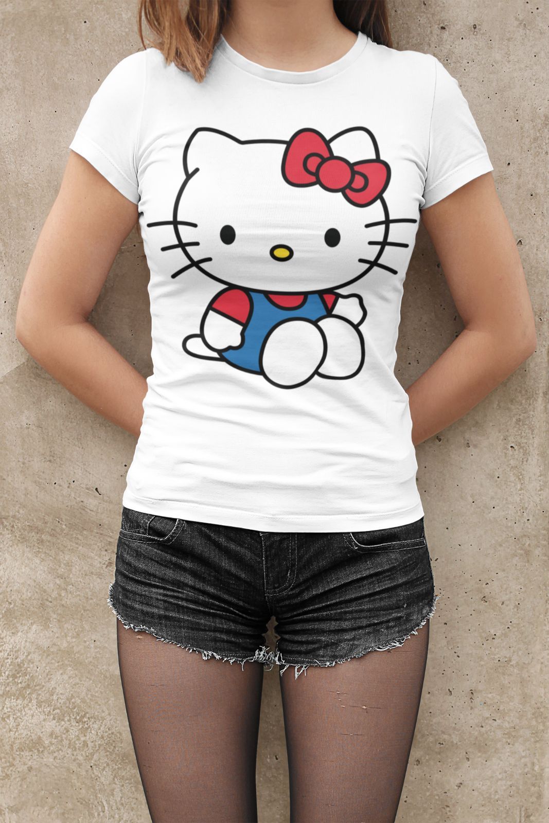 Bio Baumwolle Damen T-Shirt Hello Kitty Hallo Sitzt Katze Süße Katze Lady Cat