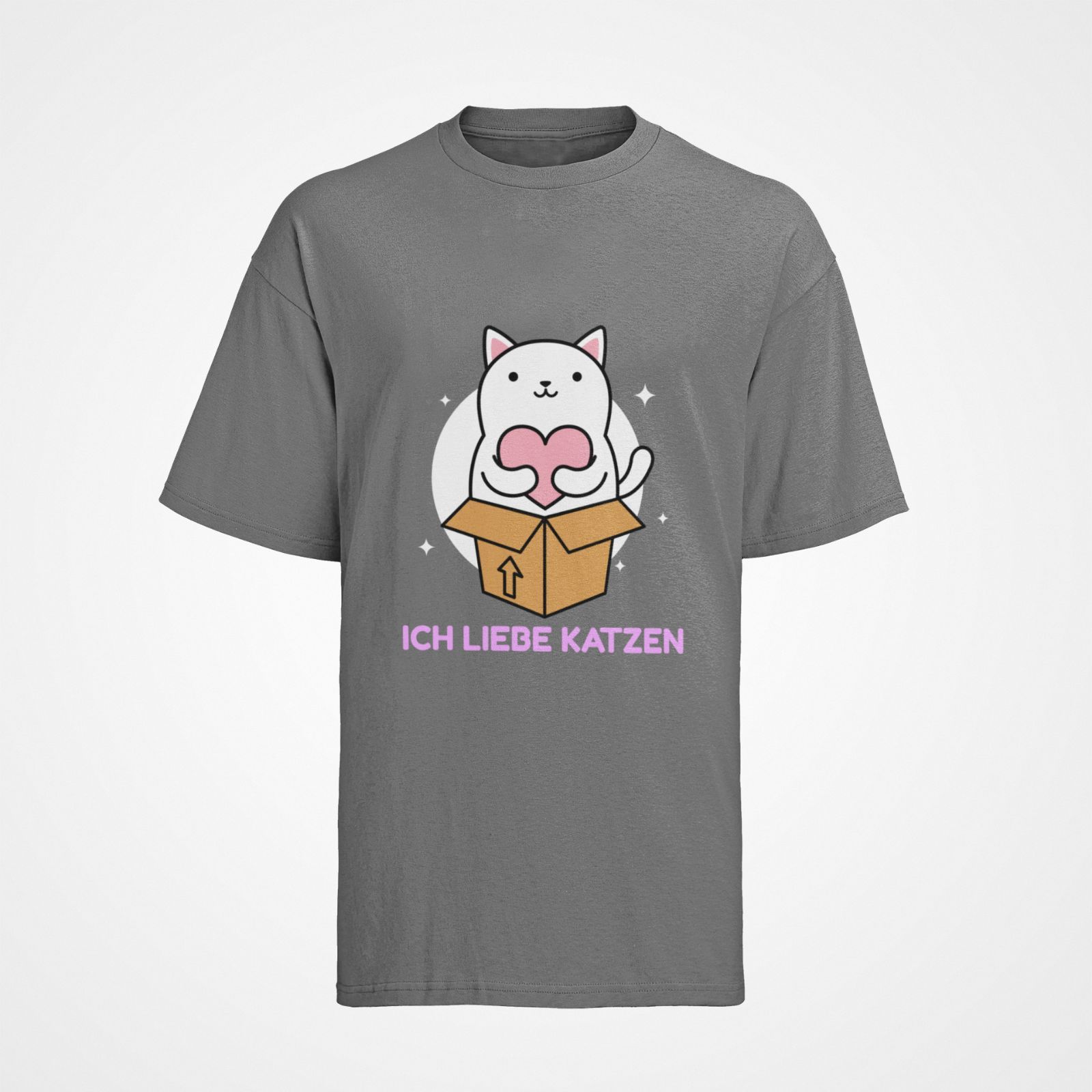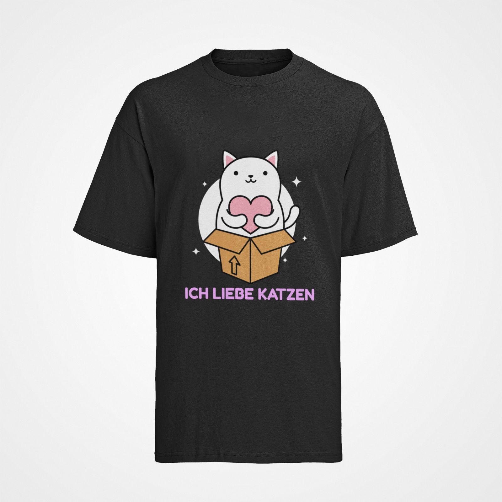 BIO Baumwolle Damen T-Shirt Oversize FUNNY KATZE ich liebe katzen
