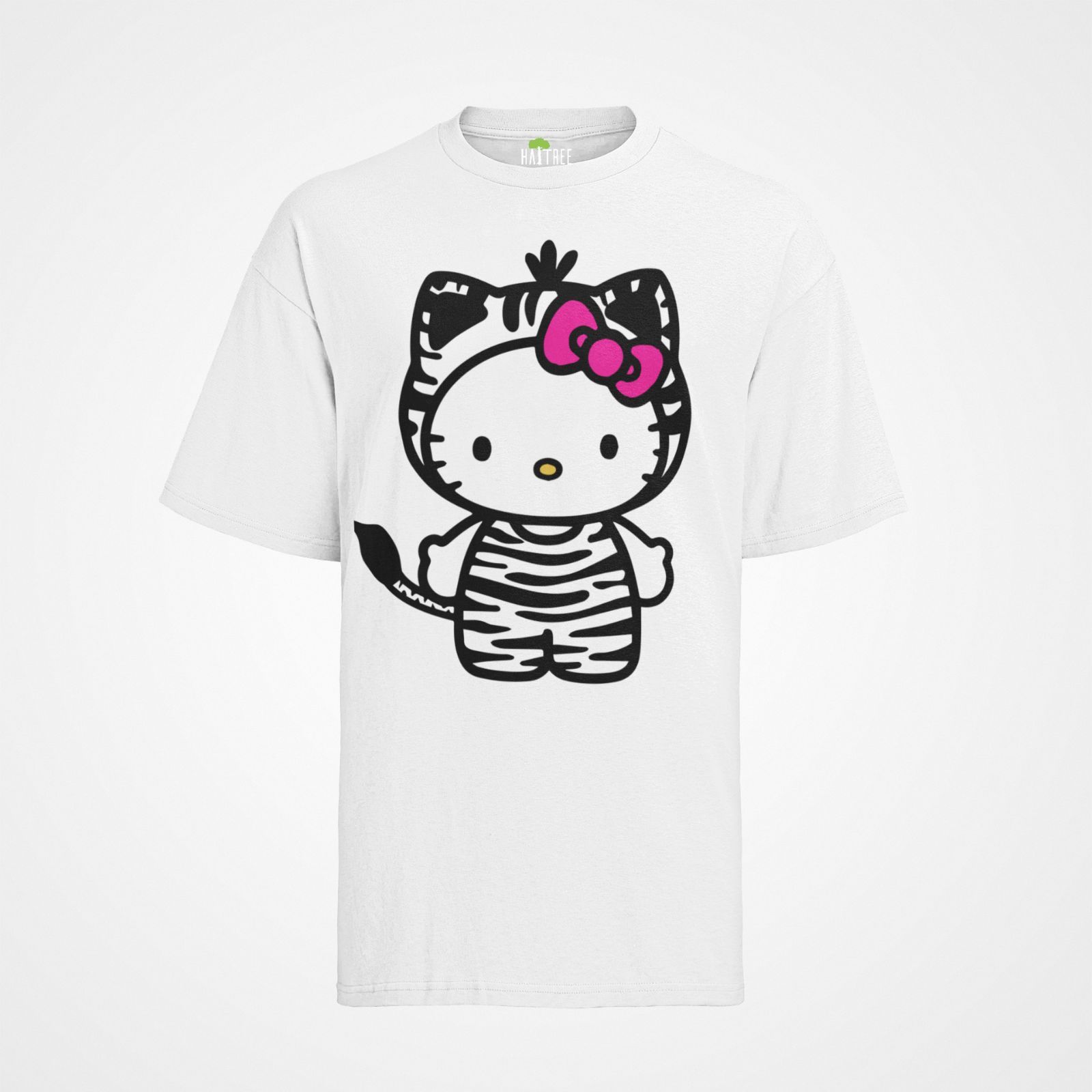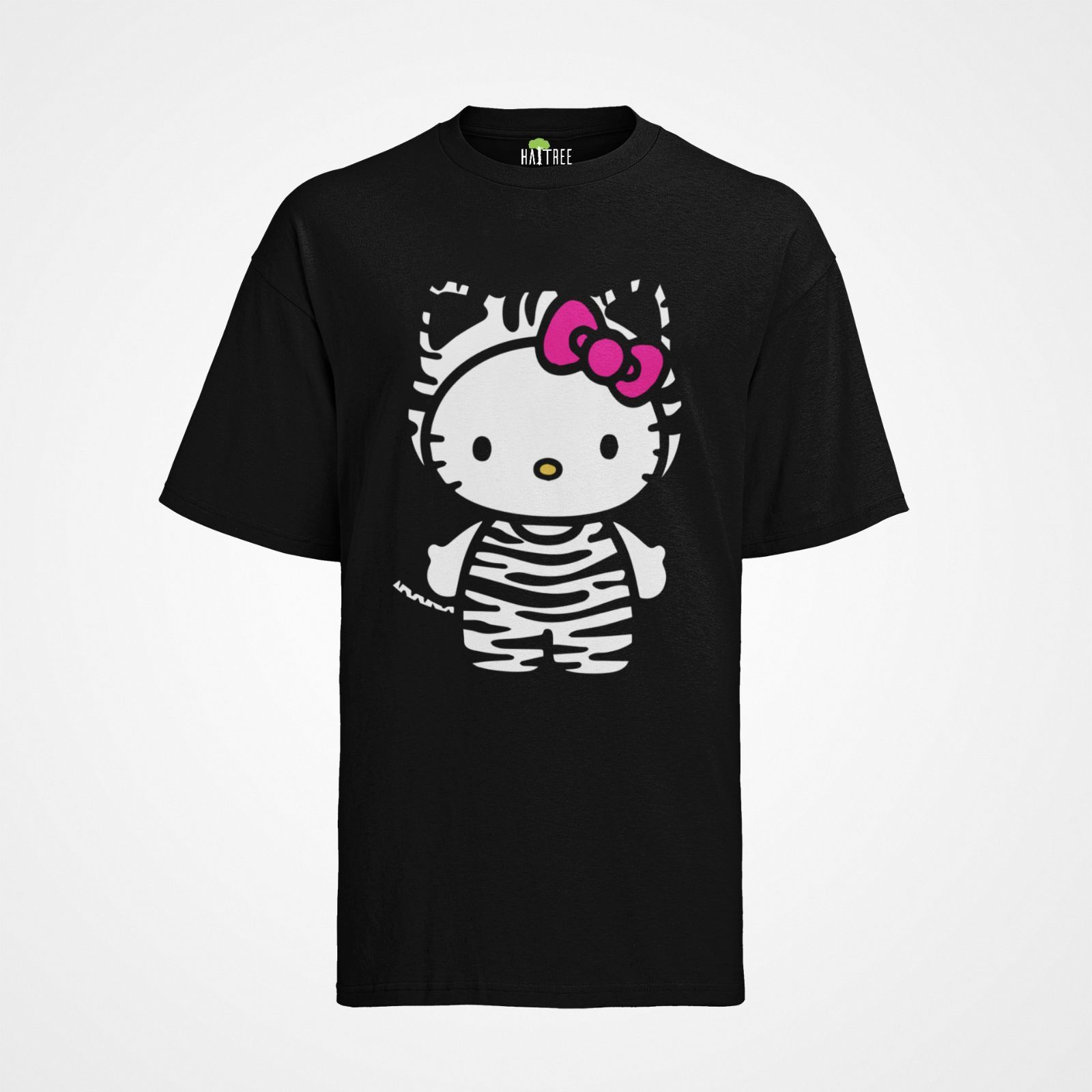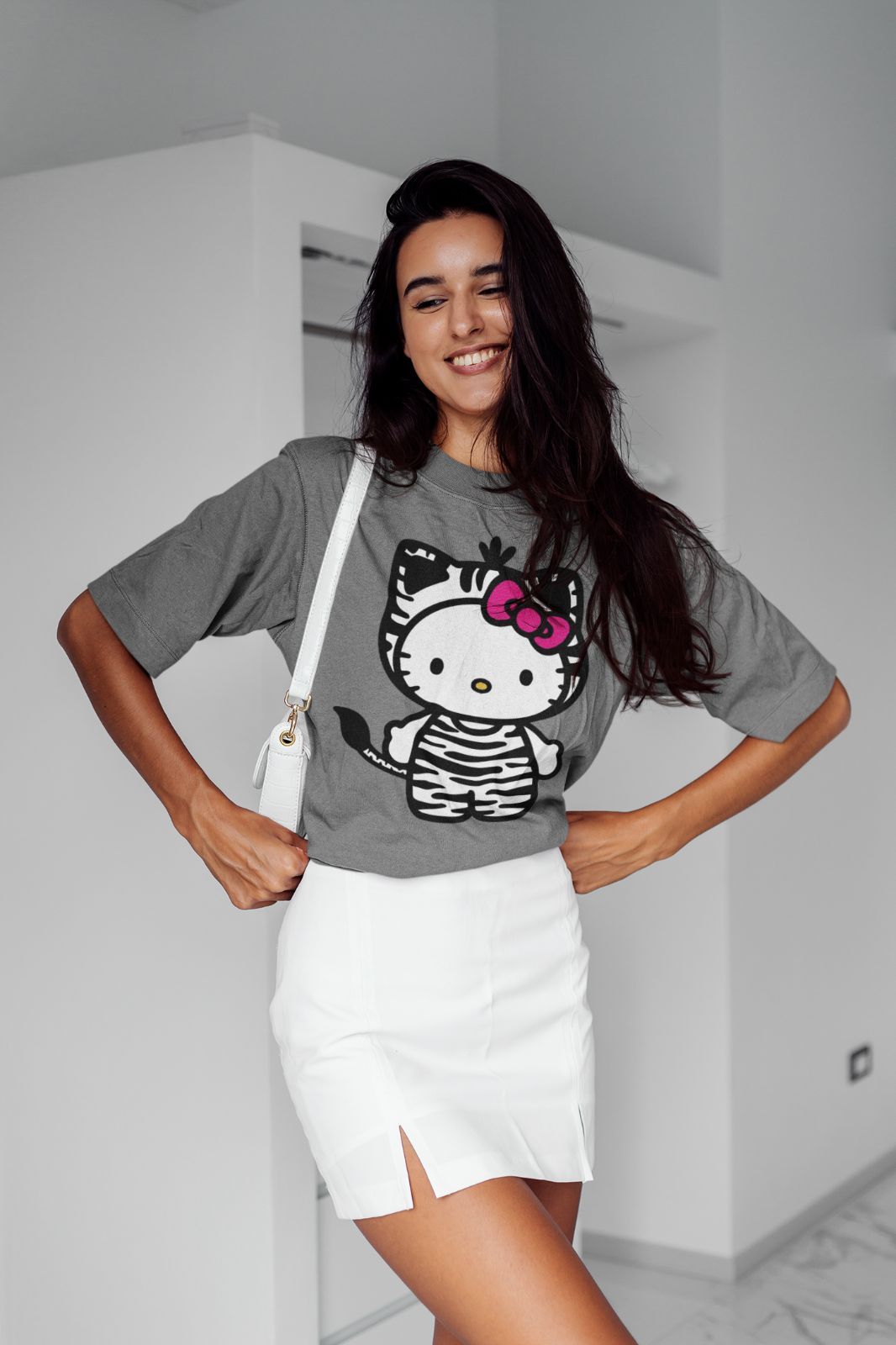 Bio Baumwolle Damen T-Shirt Oversize Hello Kitty Hallo Zebra Katze Süße Katze