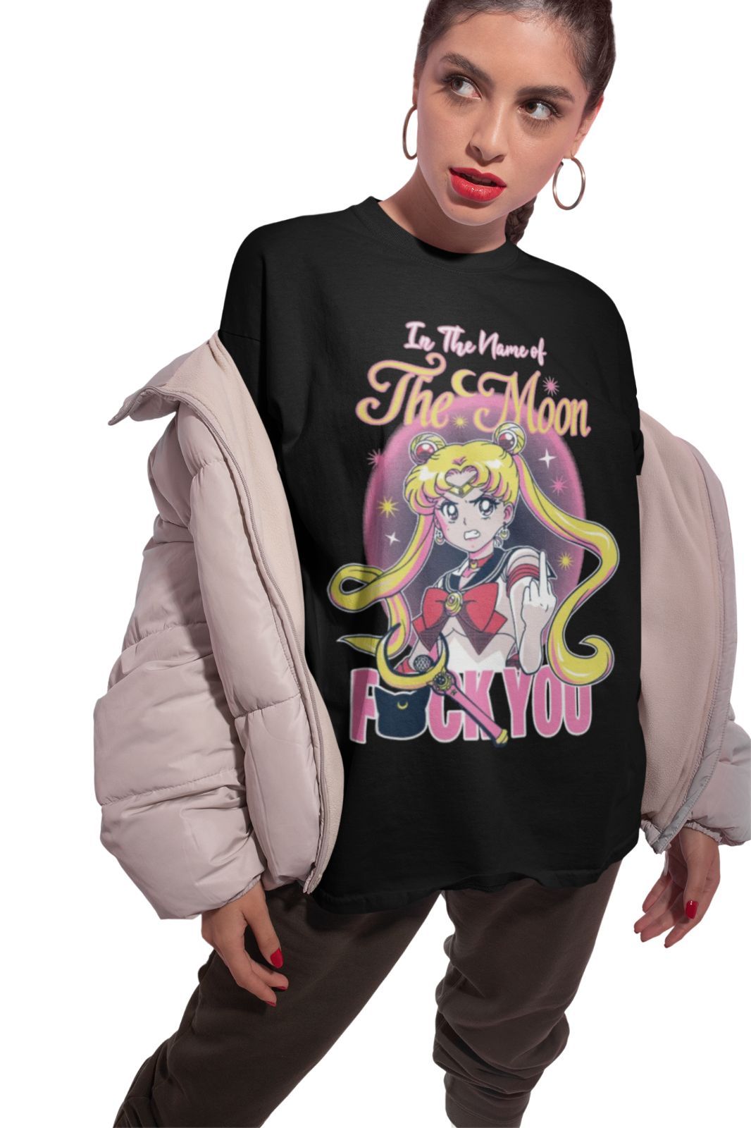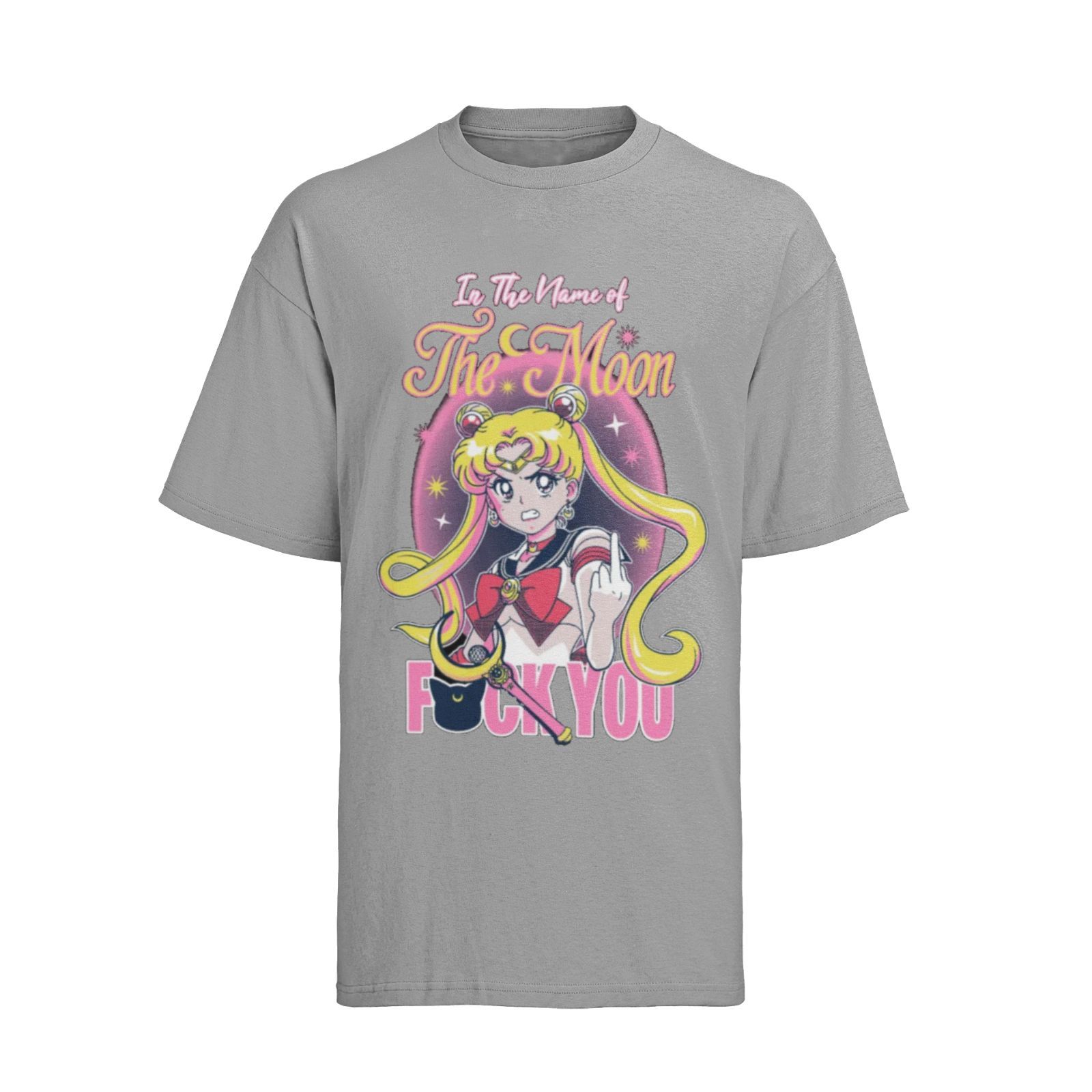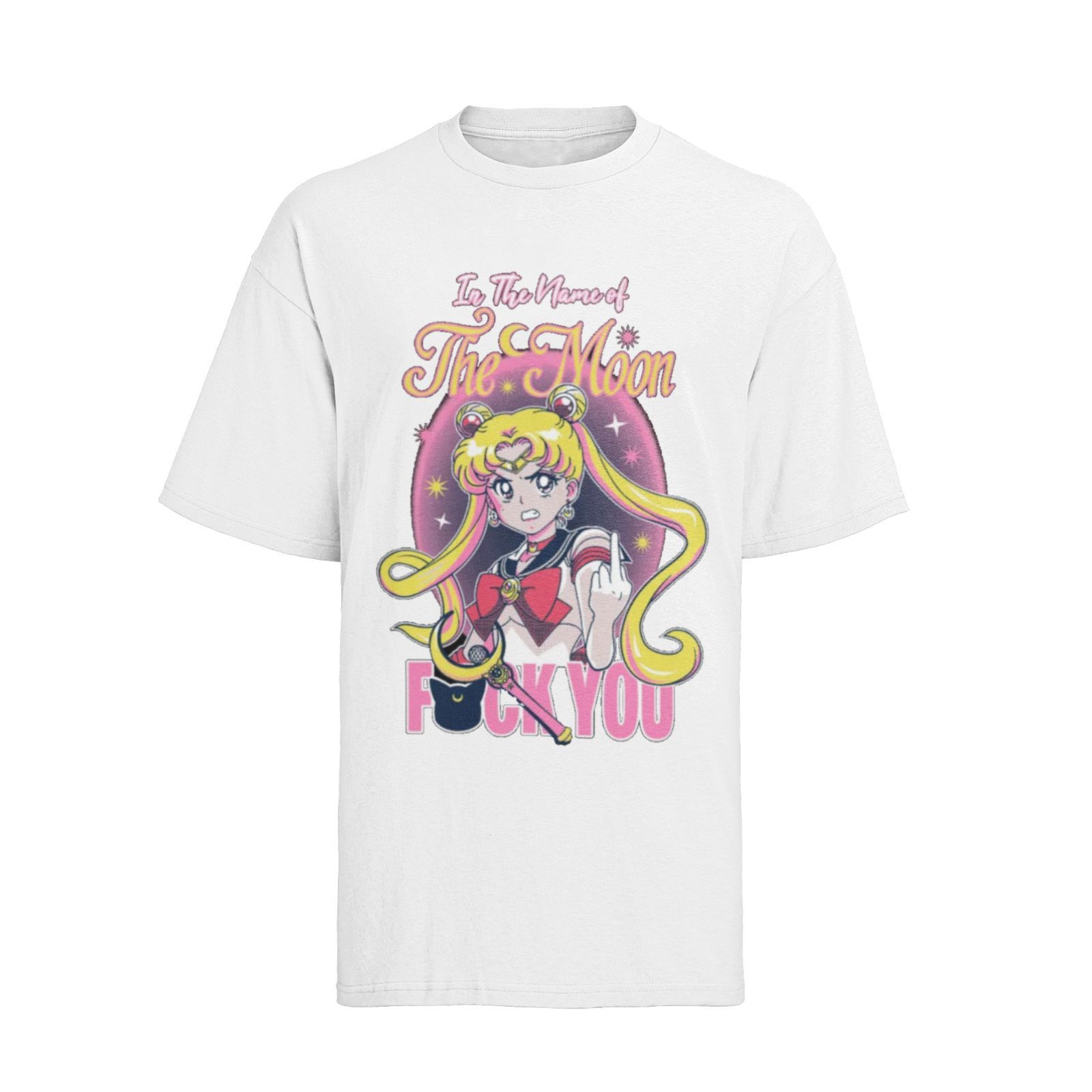 Bio Baumwolle Damen T-Shirt Oversize Lustig Anime Sailor Moon Fuck You spruch