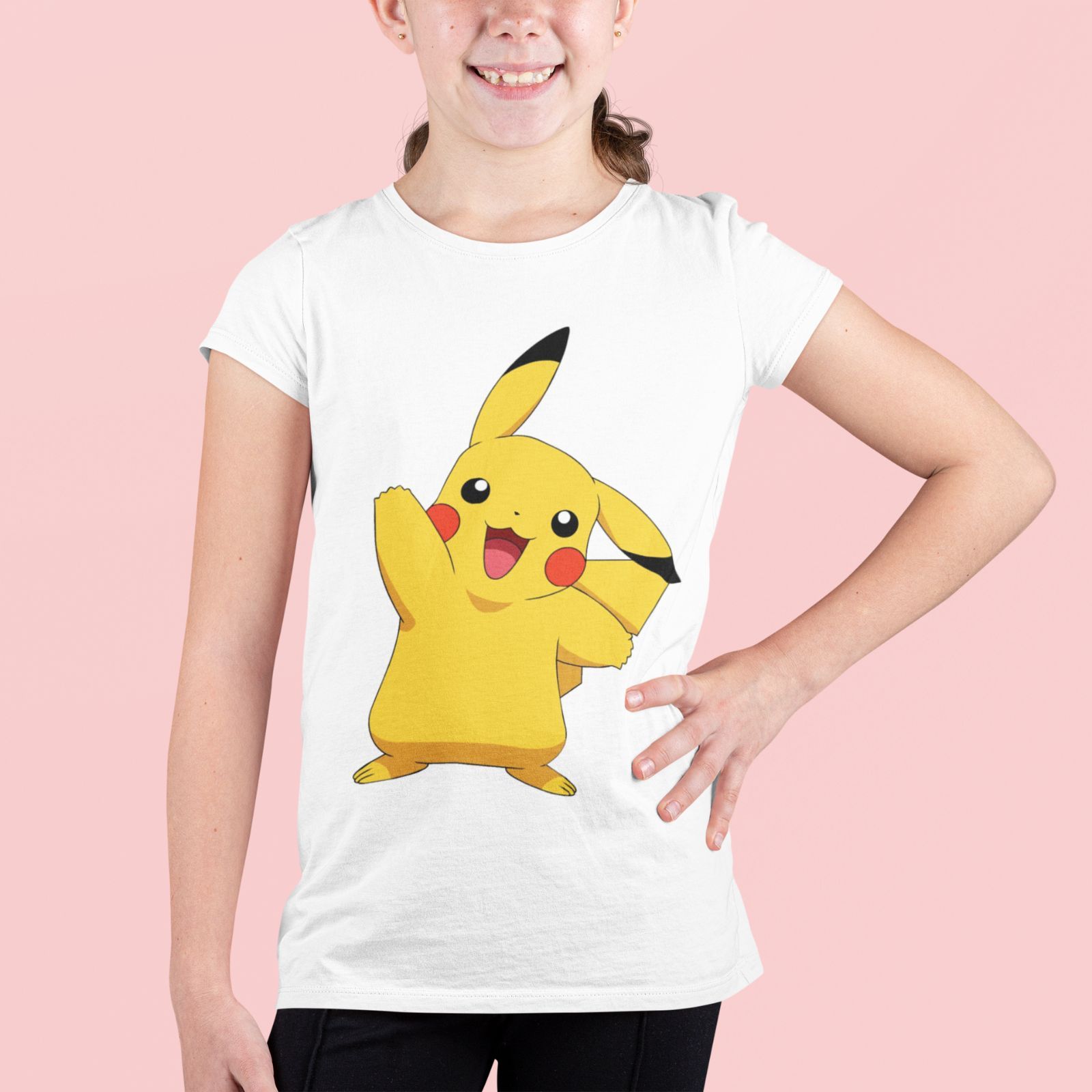 Bio Baumwolle T-Shirt Mädchen Süßes Pokemon Pikachu Anime Comic Merch Pika