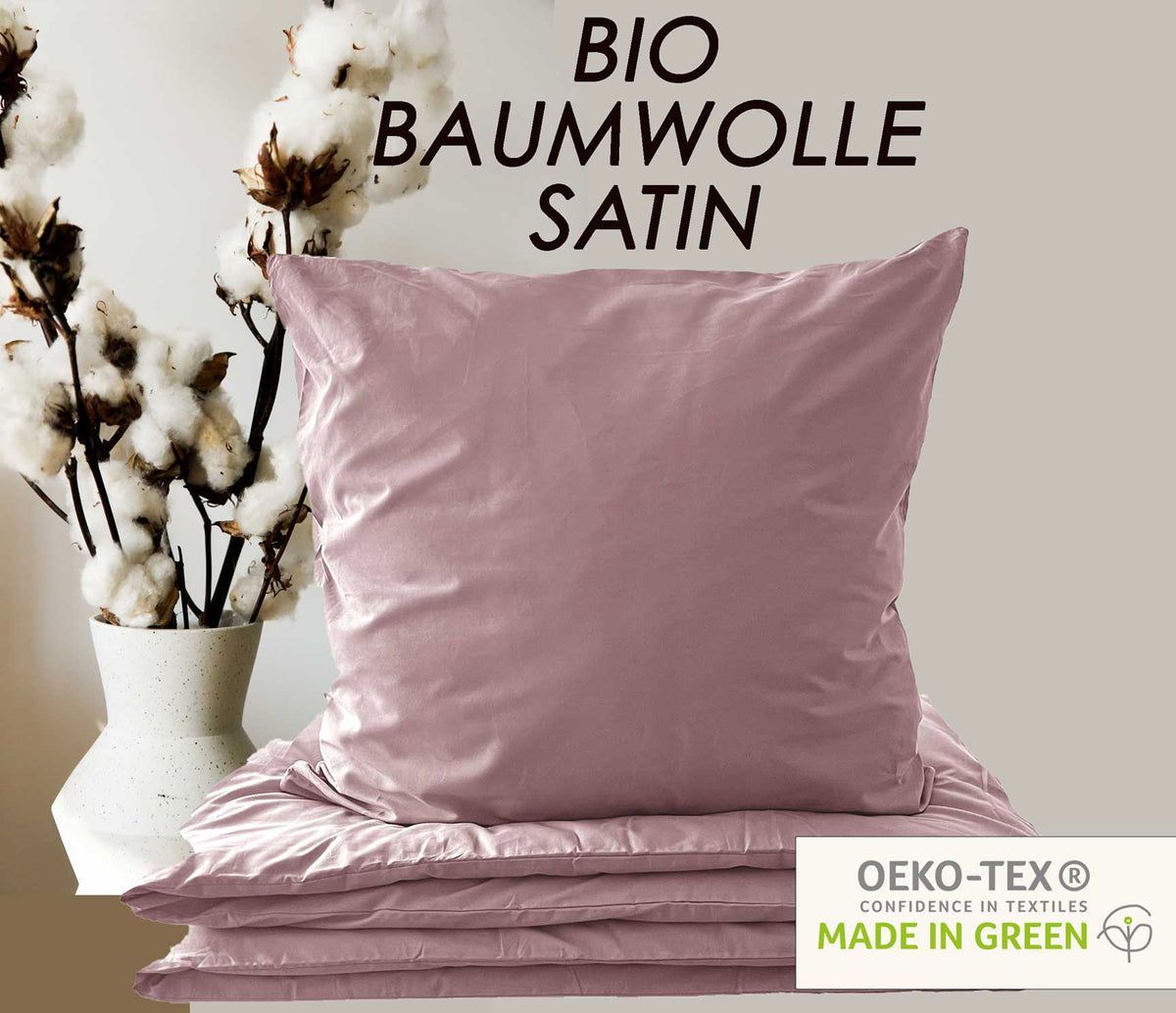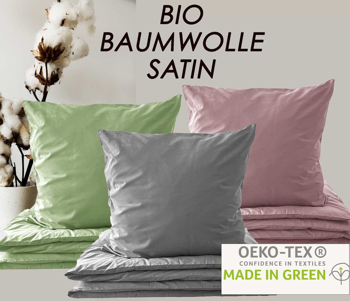 Bio Bettwäsche Baumwolle Satin 135x200 80x80 Set 2tlg. 4tlg. grau rosa mintgrün
