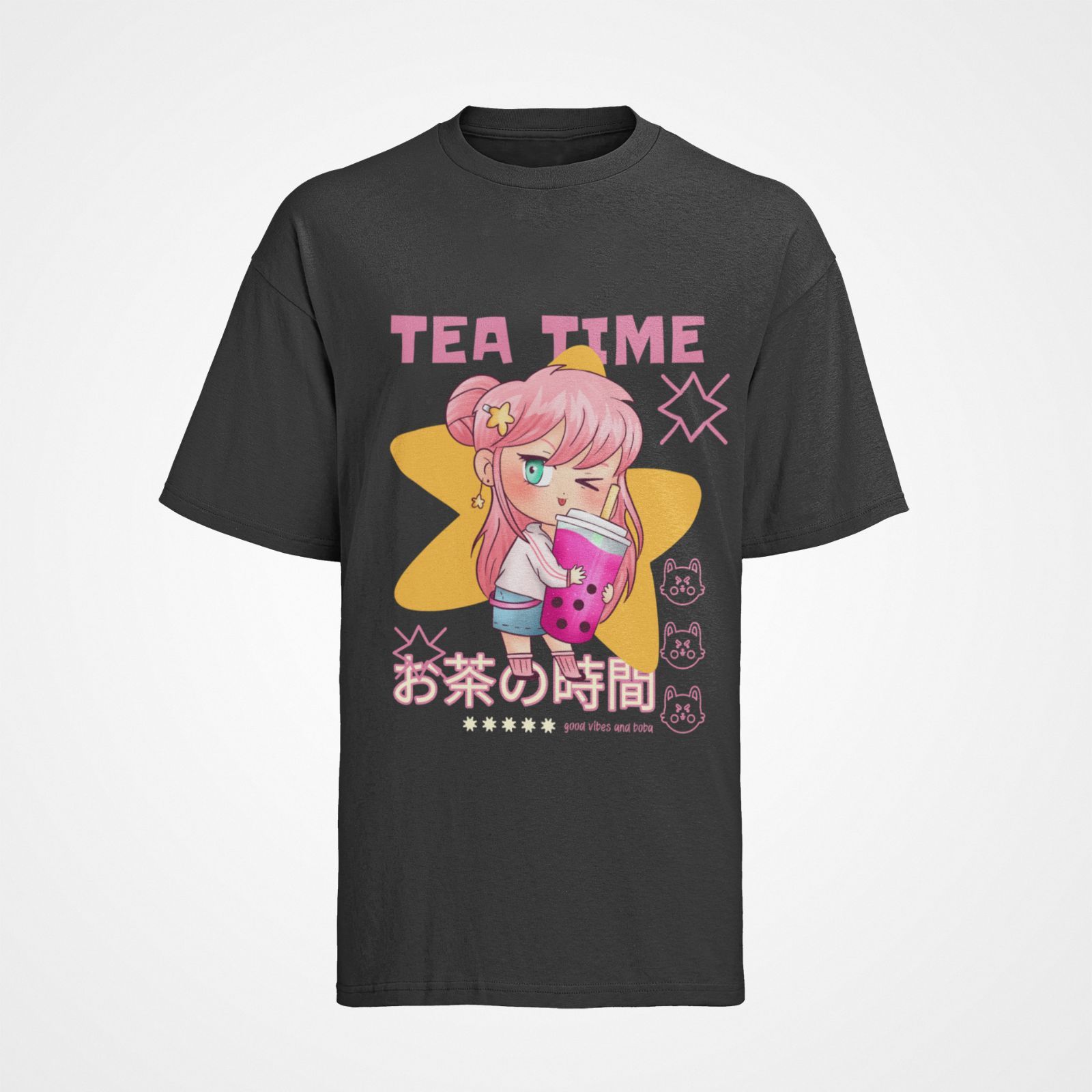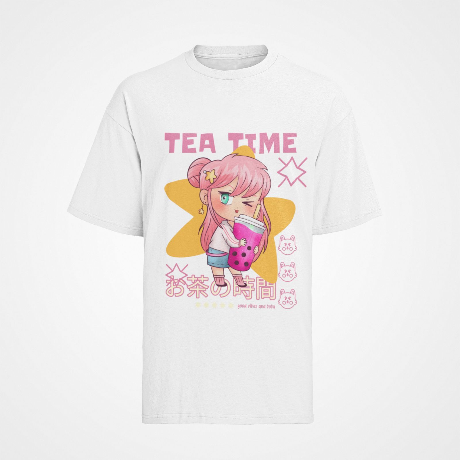 Bio Buamwoll Damen T-Shirt Oversize Funny Bubble Tea Kawaii Girl