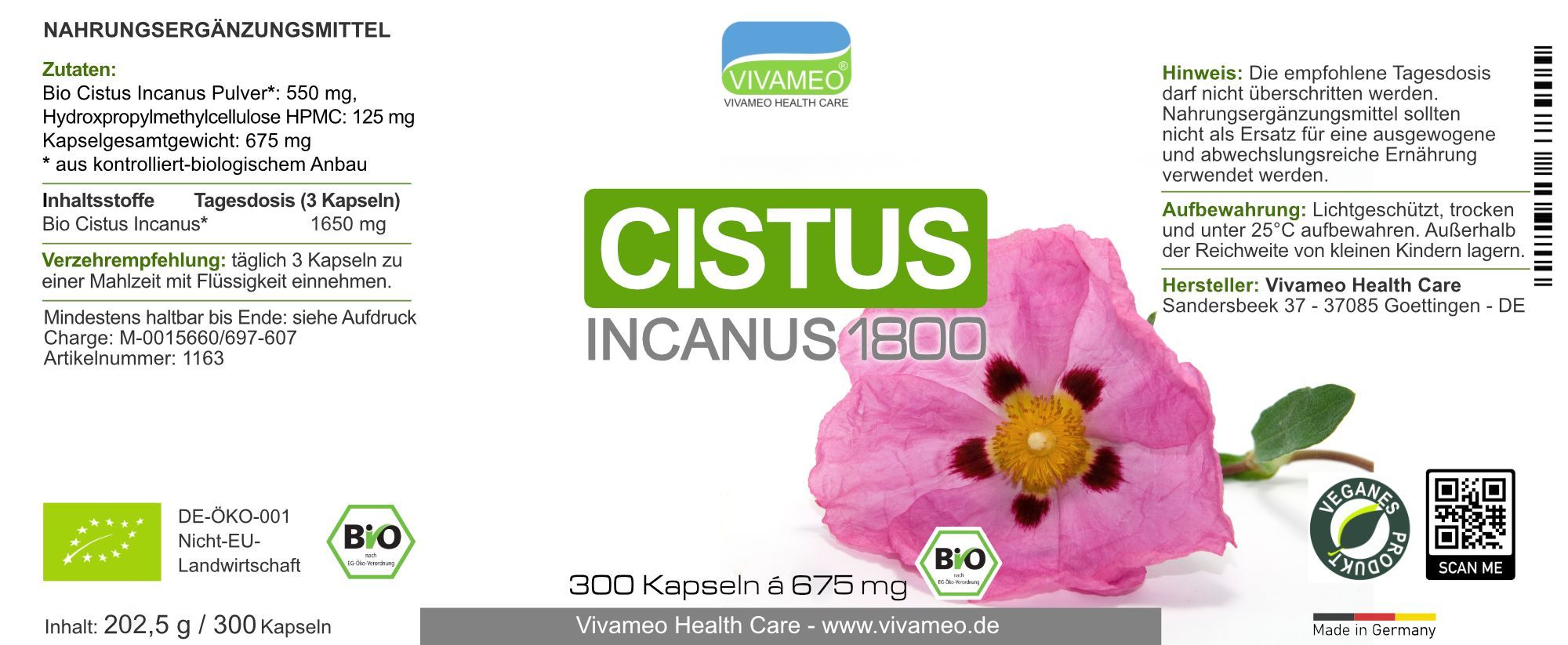 BIO CISTUS Incanus Kapseln à 675 mg, Zistrose, Polyphenole 300 Kapseln • (202 g)
