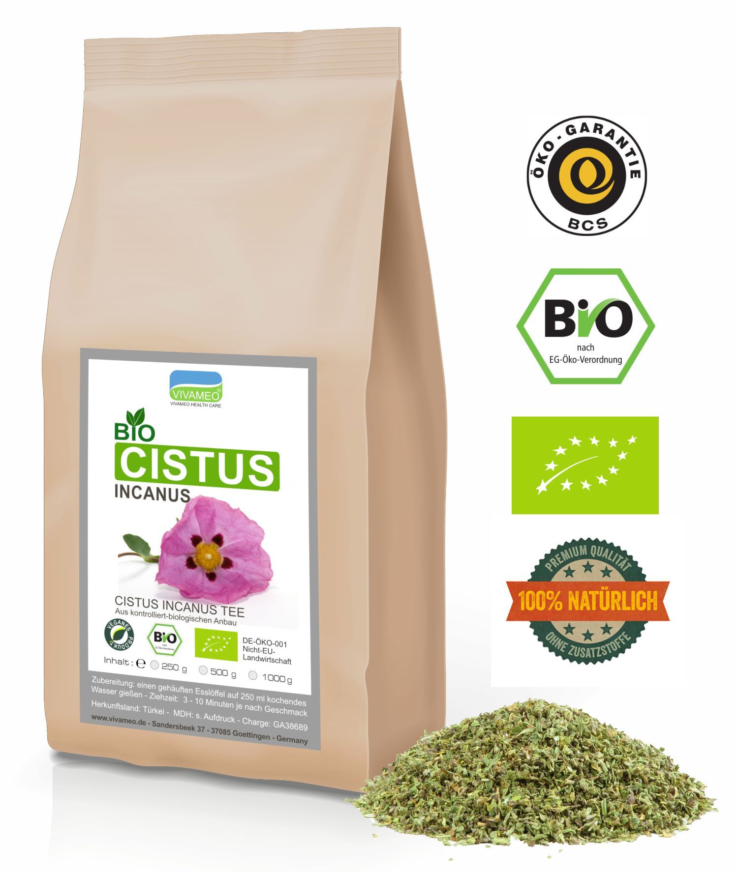 Bio Cistus Incanus Tee Zistrose Zistrosenkraut geschnitten Bio Qualität