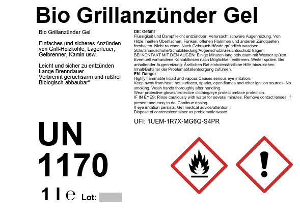 Bio Grillanzünder Gel aus Bioethanol - 1 Liter
