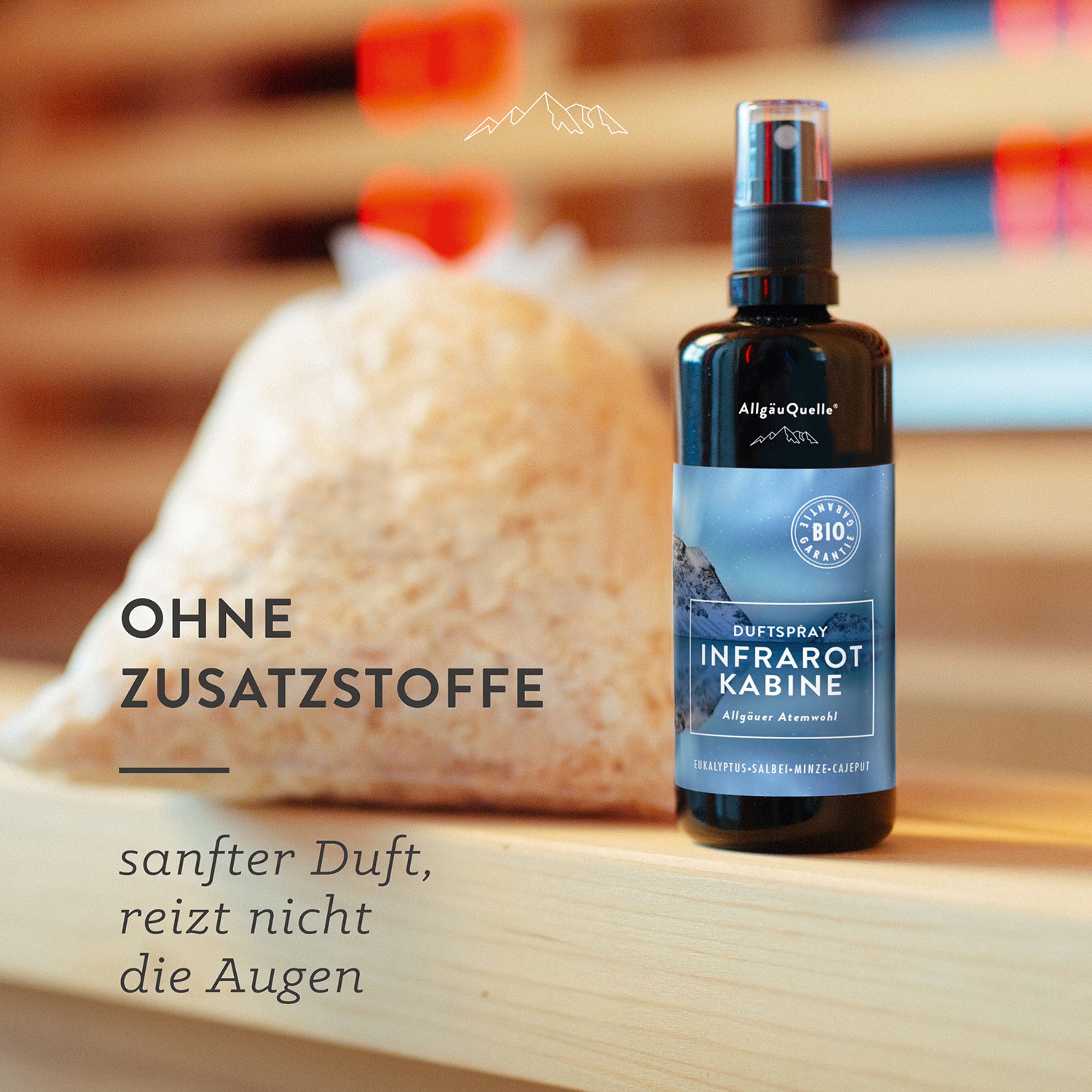 BIO Infrarotkabinen Duft Set 4 * 100ml + 50g Zirbensäckchen Aroma Spray Set bio