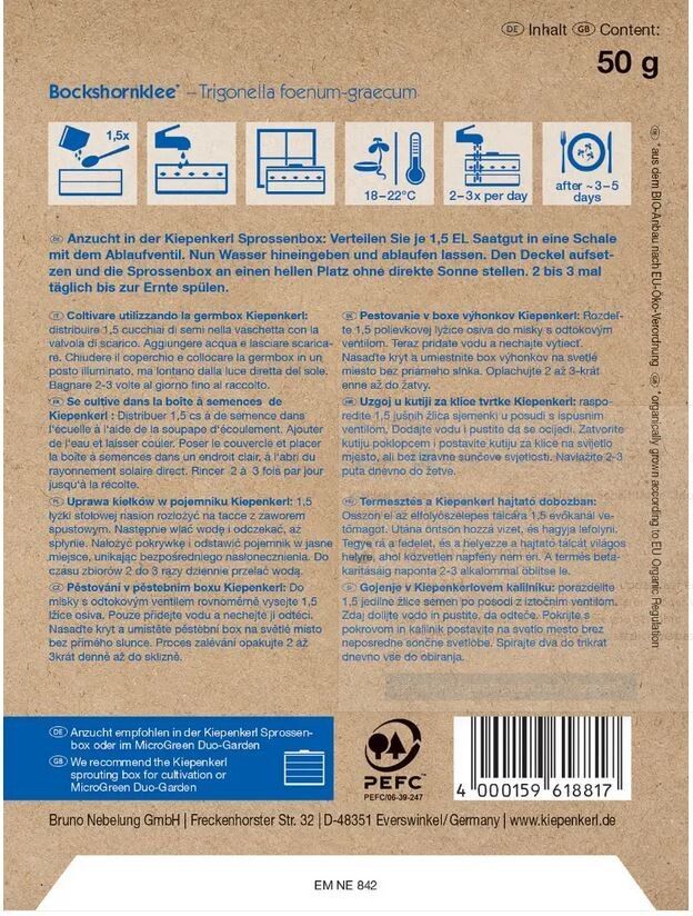 Kiepenkerl BIO Keimsprossen Bockshornklee, Inhalt: 50 g, Bio-Samen zur ganzjährigen