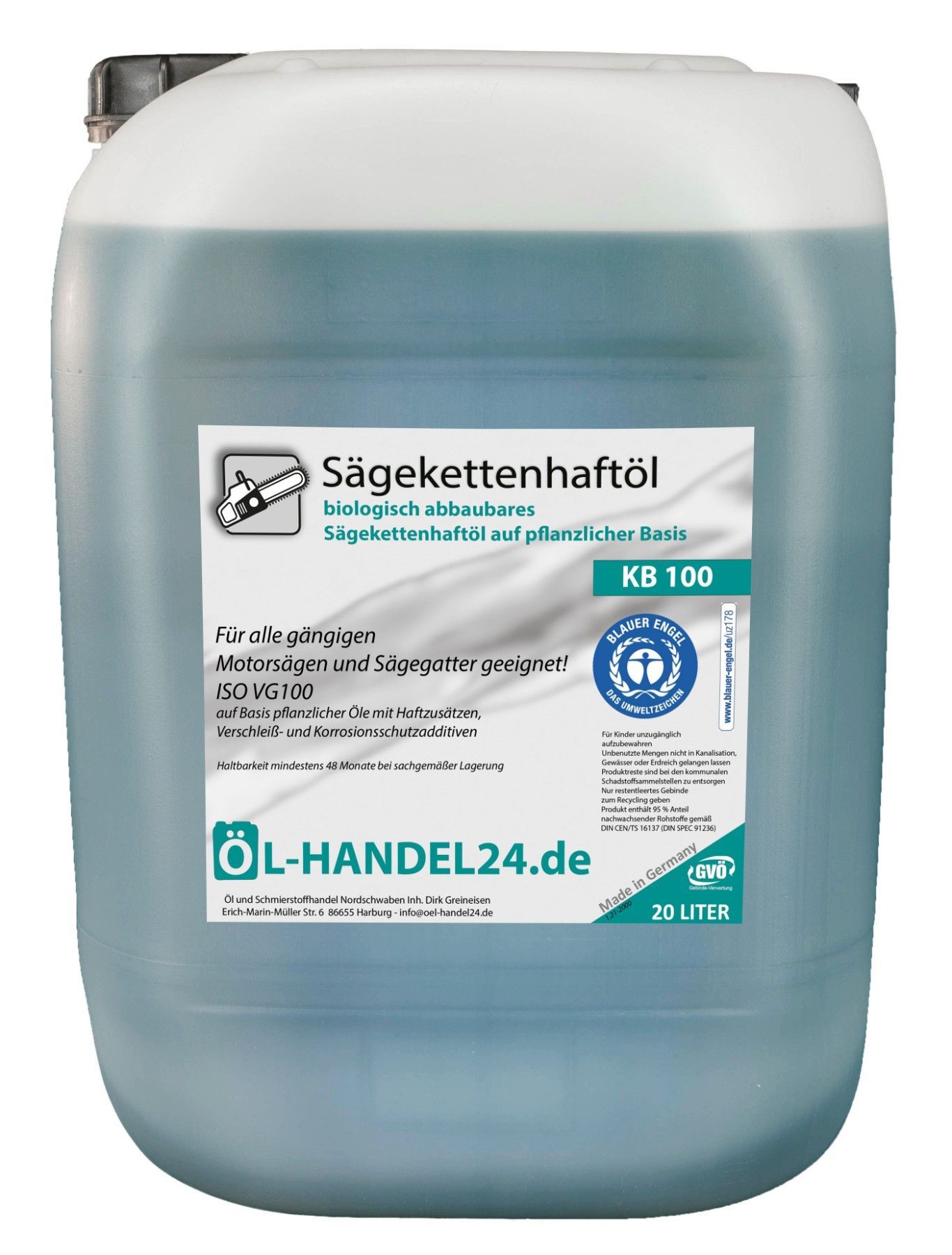 Bio Kettenöl 20L KB 100 Sägekettenhaftöl Sägekettenöl Haftöl Motorsägenöl