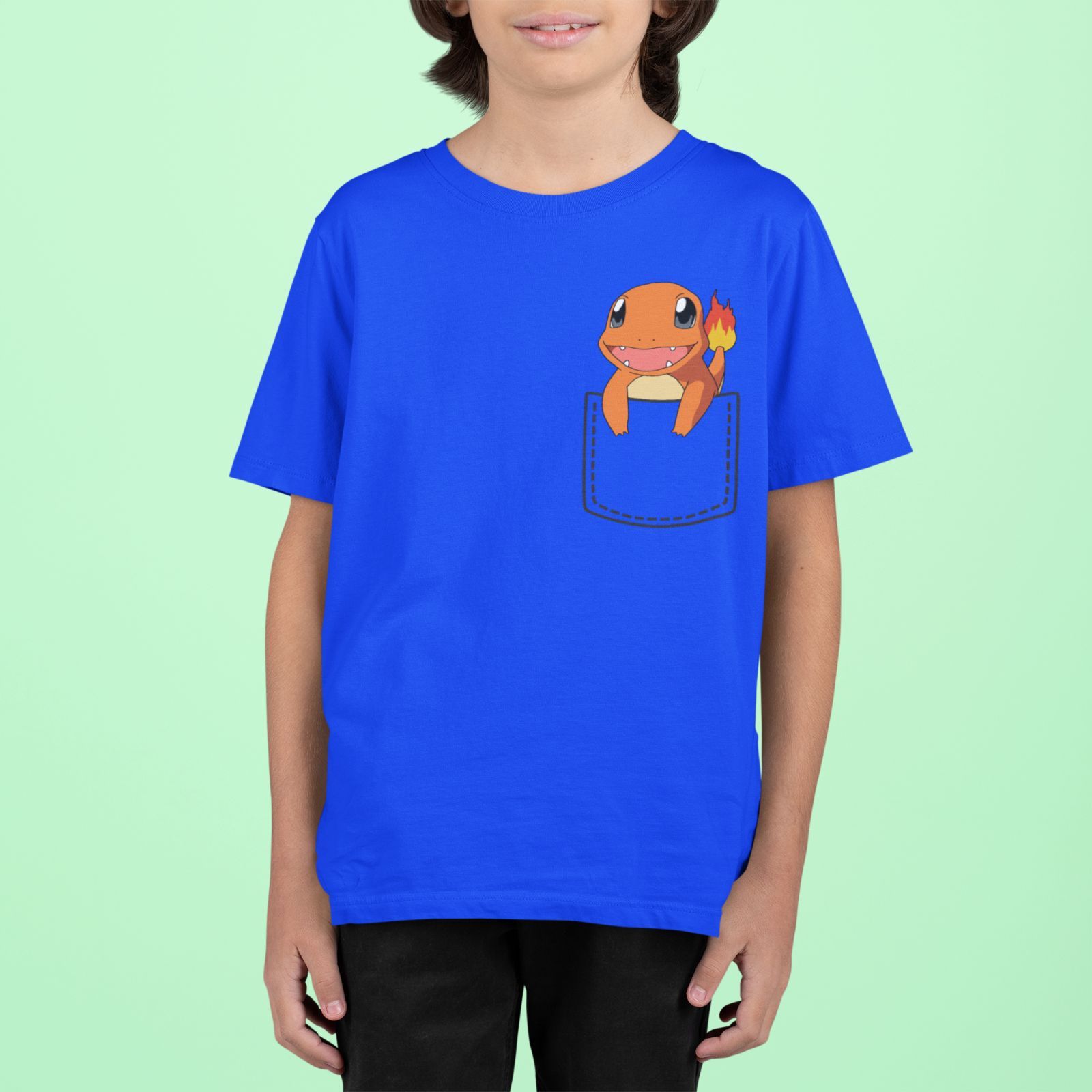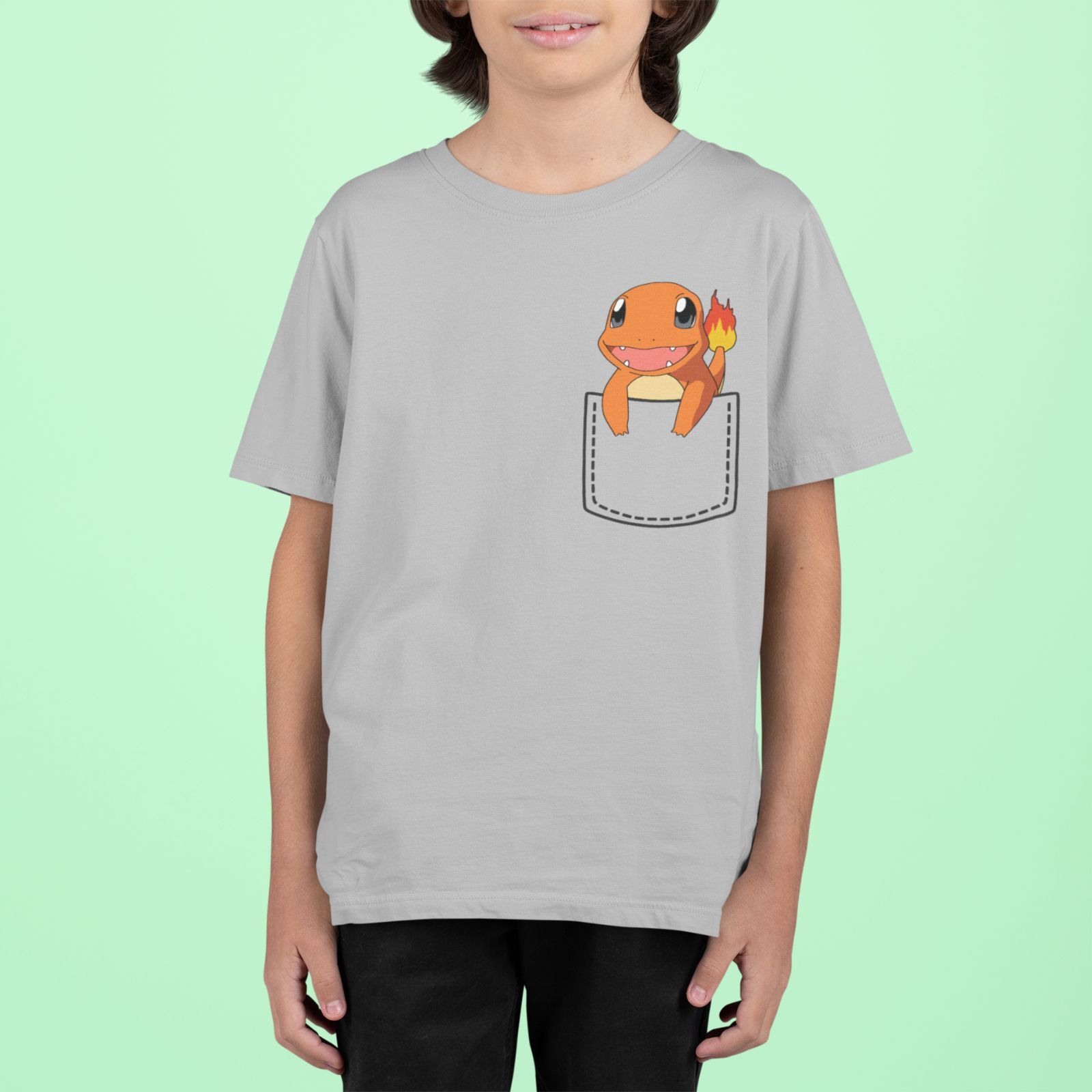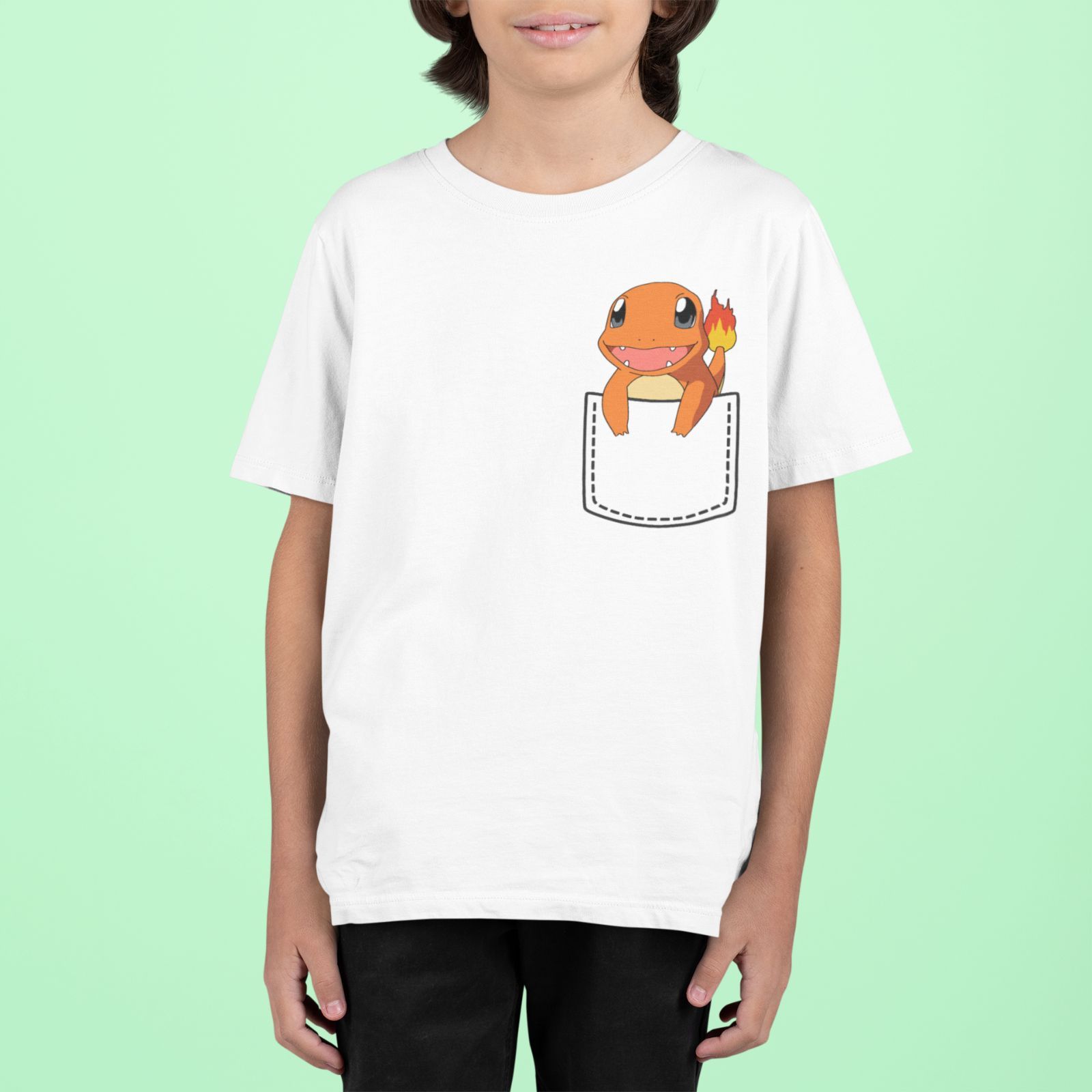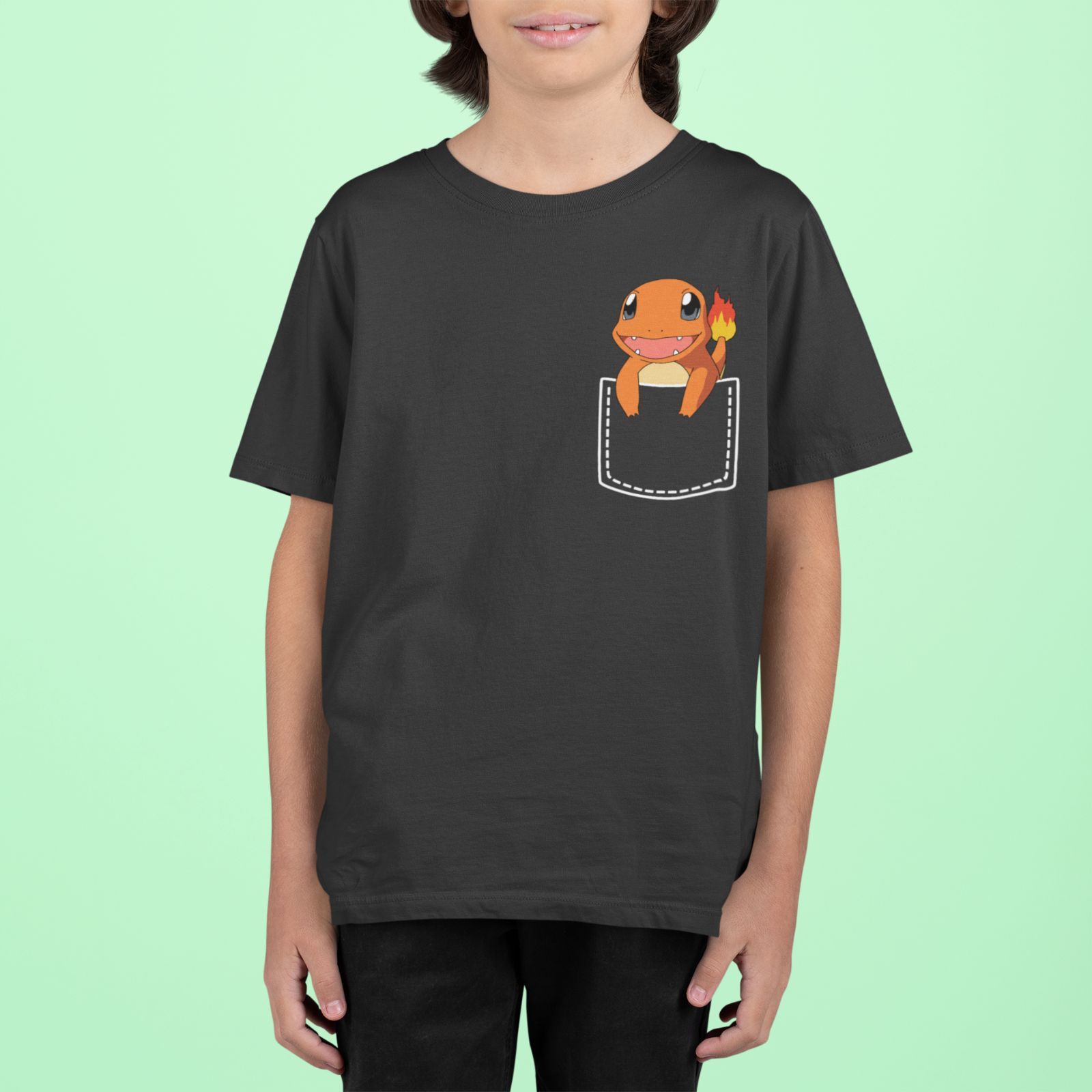 Bio Kinder T-Shirt Pokemon Tasche Glumanda Pikachu Pokeball Comic Kids Charmande